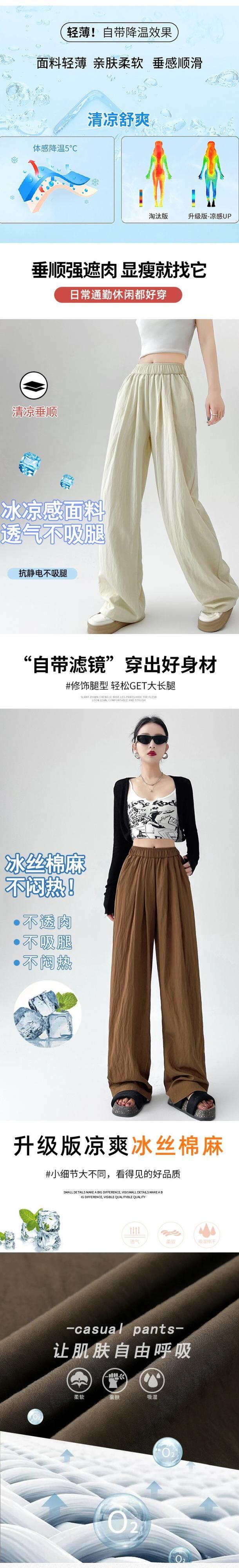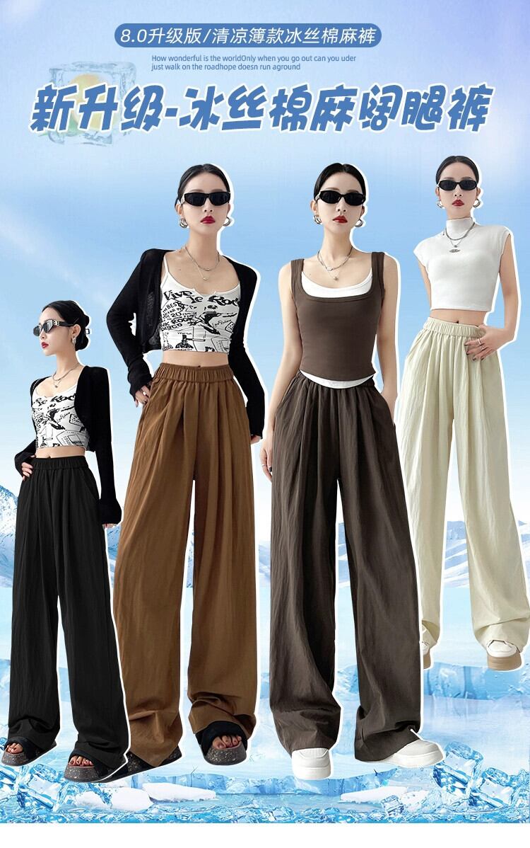ブラックアイスシルクコットンとリネンのワイドレッグパンツ、夏用の薄手のレディースパンツ、ルーズストレートカジュアルカジュアルドレープ、レイジースタイルヤマモトパンツ サマー 夏物 7460033547651125 | framboise21