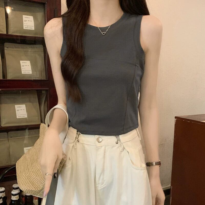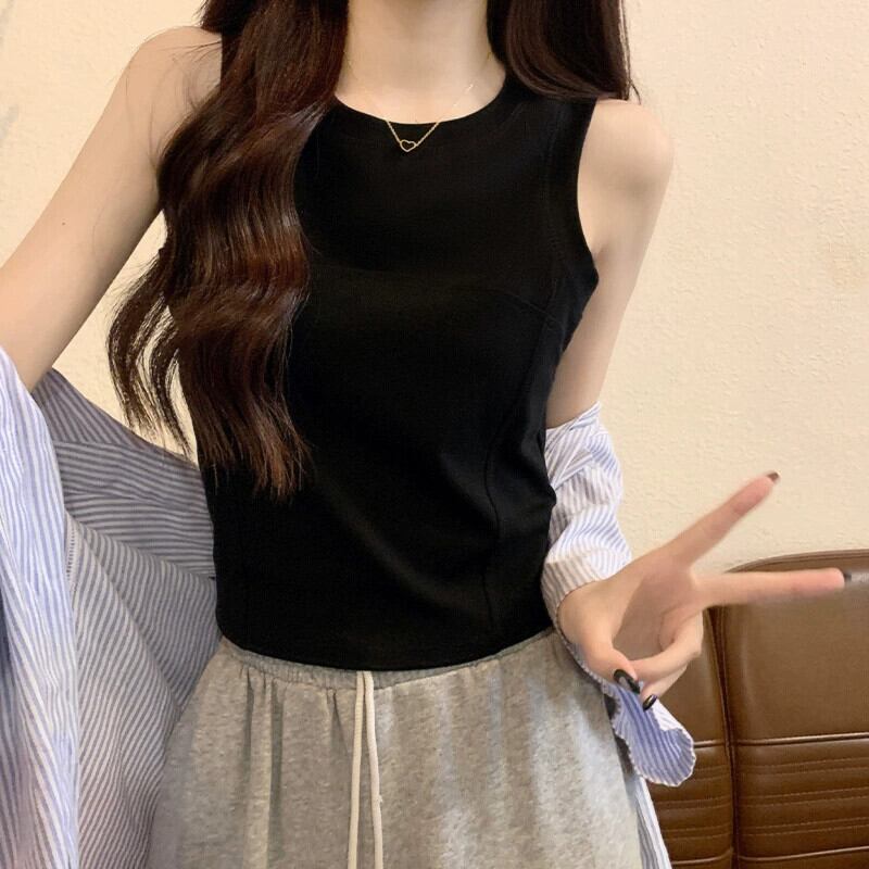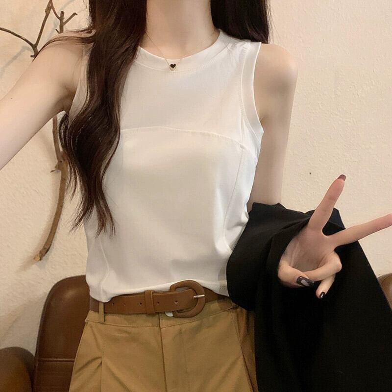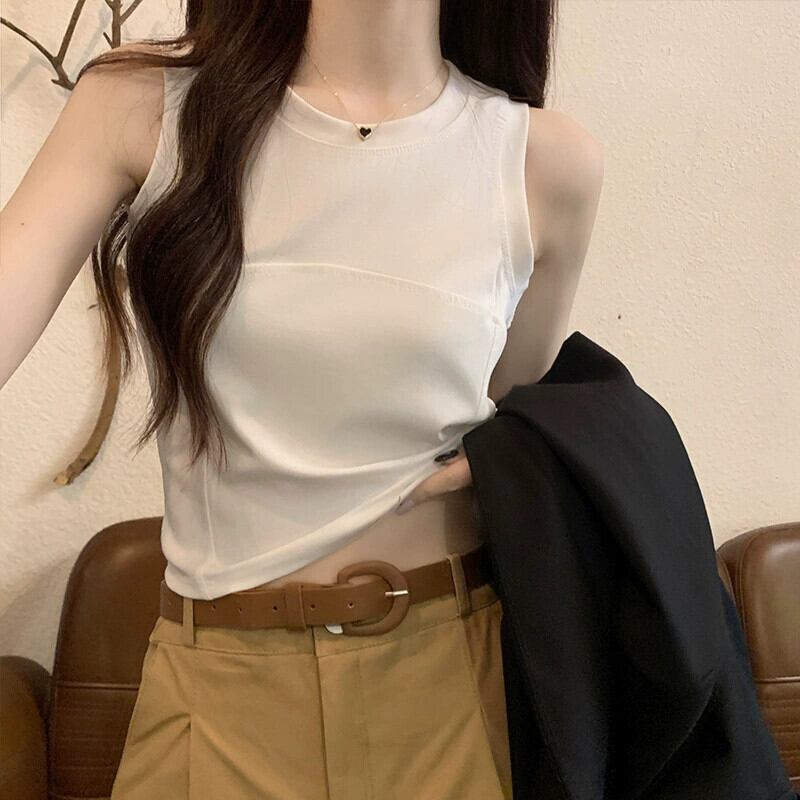 ホワイトコットンスポーツキャミソールレディース夏スリムフィットインナーとアウターウェアワイドバンド胸カバーショートボトムトップ サマー 夏物 7460059787187085 | framboise21