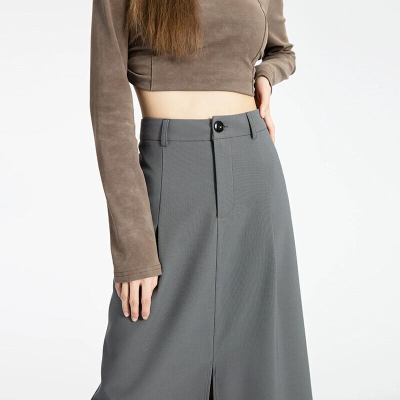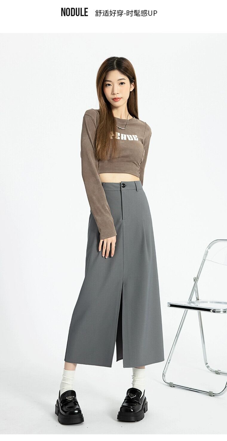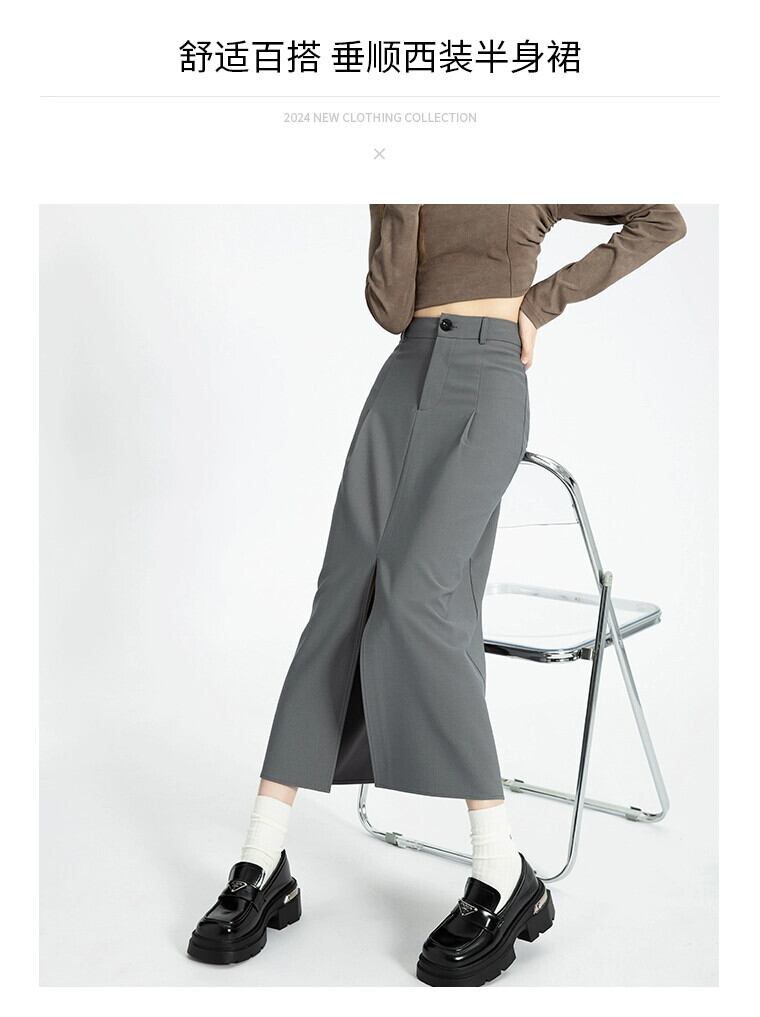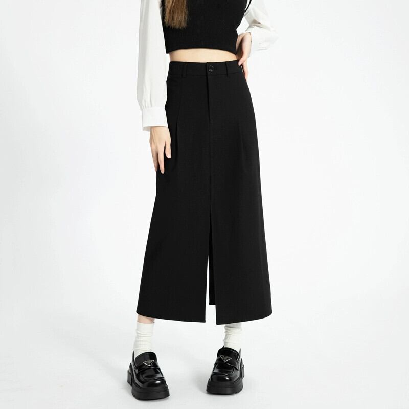 スリットヒップカバースカートレディース、春と秋の気質スーツスカート、小柄な人、ハイウエスト、痩身、Aライン黒ストレートスカート ハイウェスト ブラック スプリング 春物 オータム 秋物 746002075713319 | framboise21