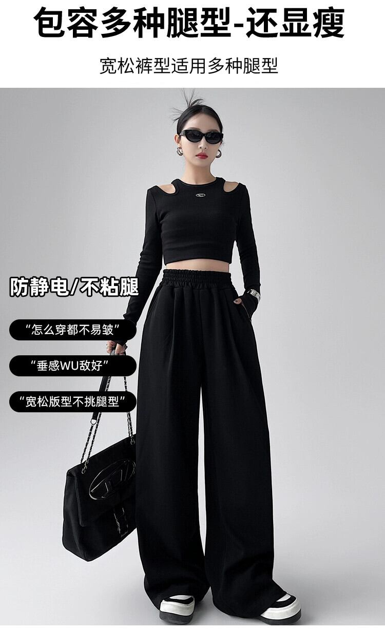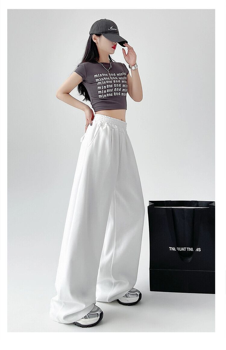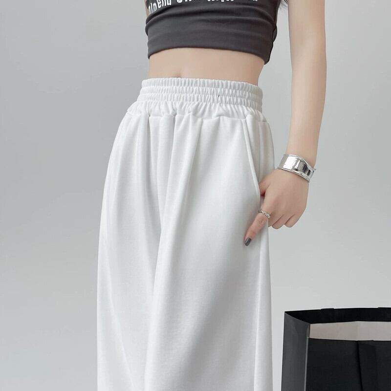 ホワイトスポーツパンツ女性 2024 新しい夏弾性ハイウエストドレープルーズファッショナブルなカジュアルストレートワイドレッグパンツ ハイウェスト エラスティック 伸縮 サマー 夏物 ワイドパンツ 7460010215957662 | framboise21