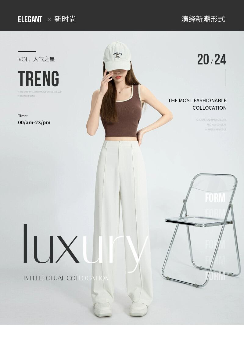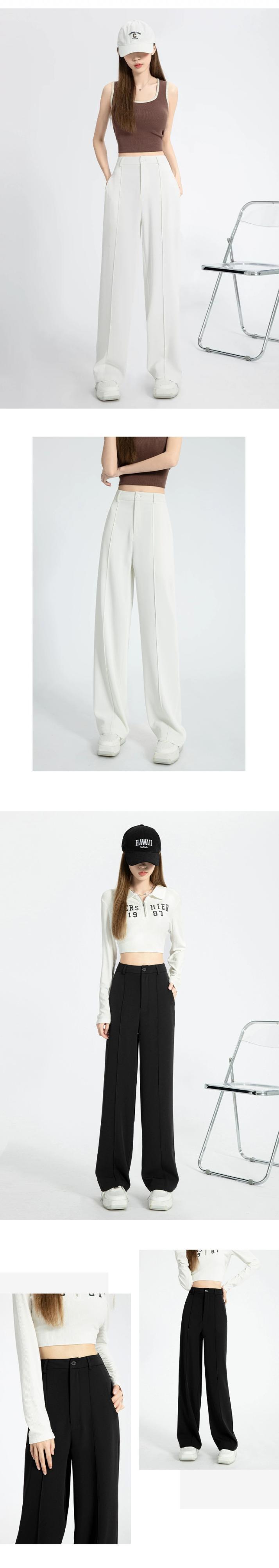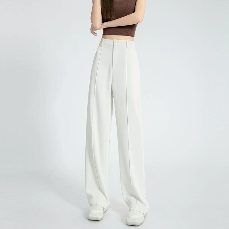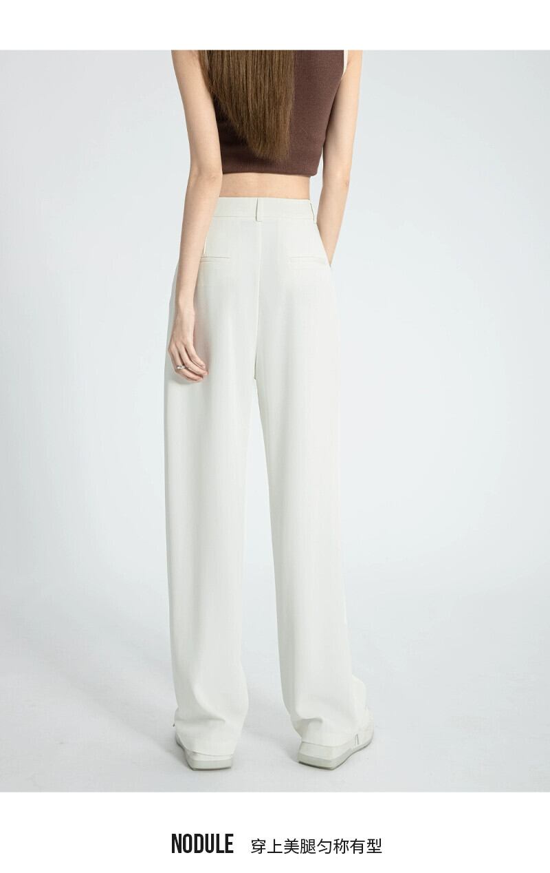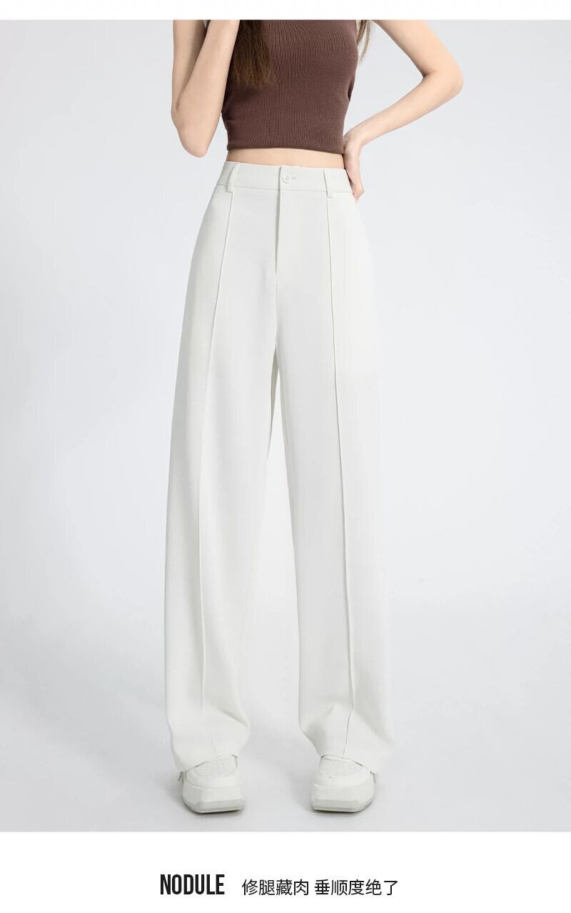 2024 ナローワイドレッグパンツ女性の春と秋のウエストドレープルーズでスリムなフロアレングスストレートスーツパンツ スプリング 春物 オータム 秋物 ワイドパンツ 7460018117631166 | framboise21