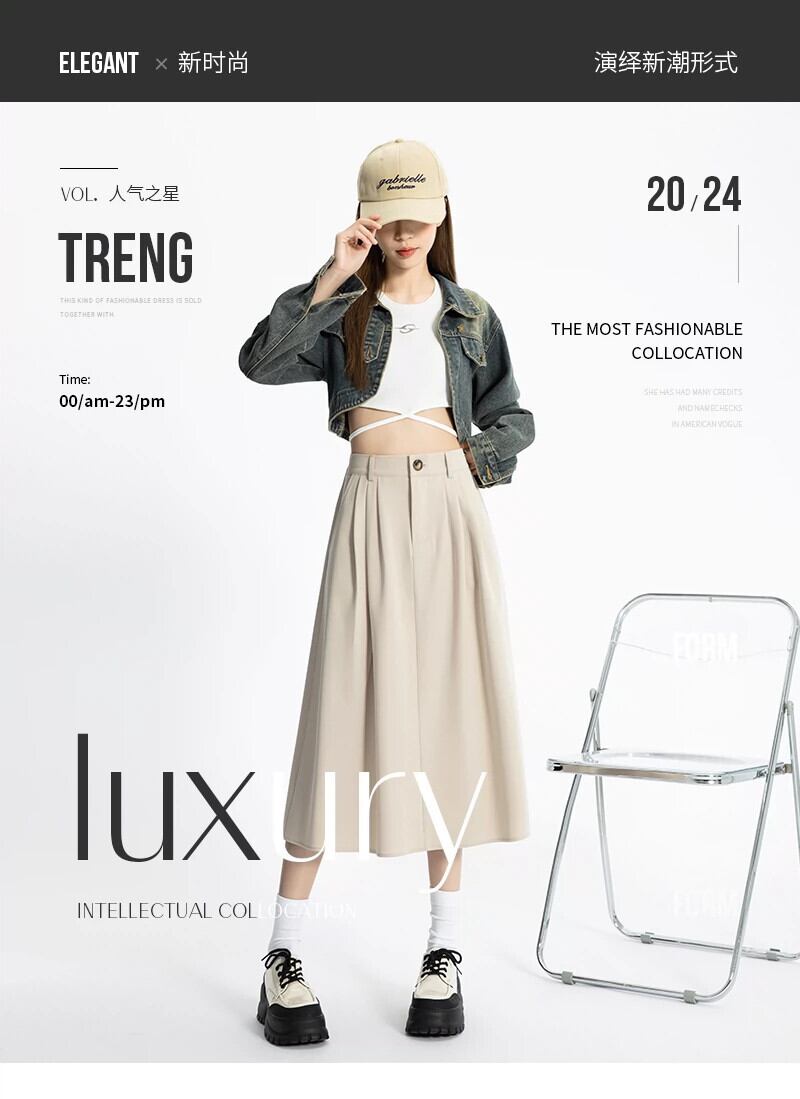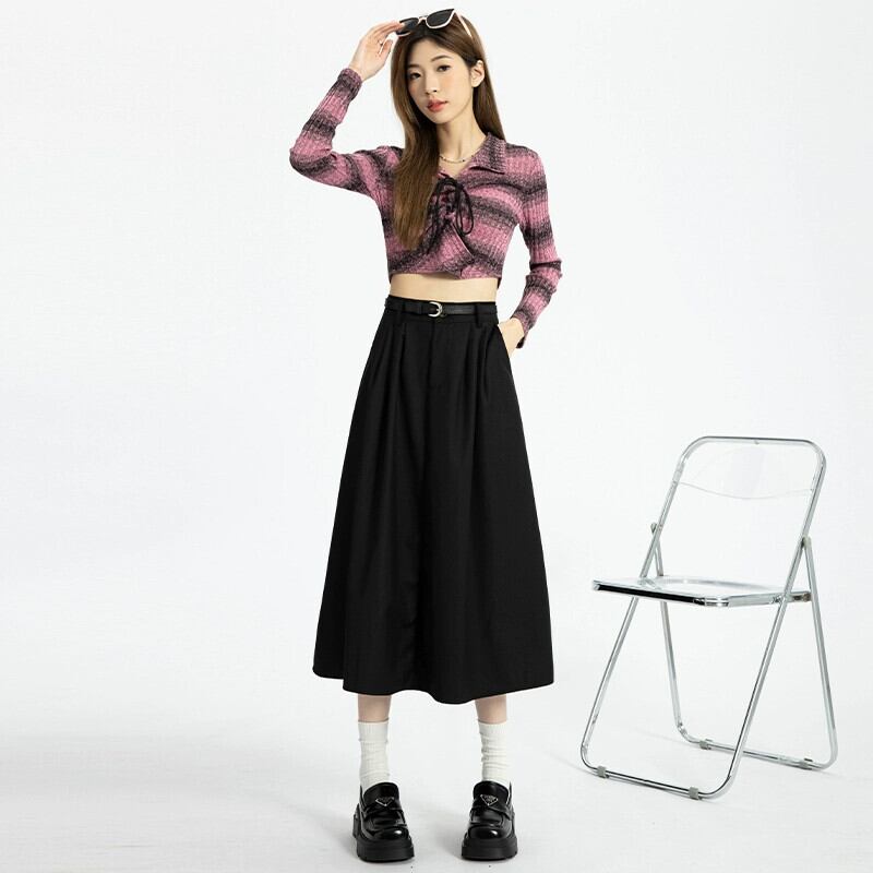 2024 スリムブラックスカート女性の春と秋の気質ドレープ多用途ミッドレングスウエスト A ラインスーツスカート スプリング 春物 オータム 秋物 Aライン 7460052045332798 | framboise21