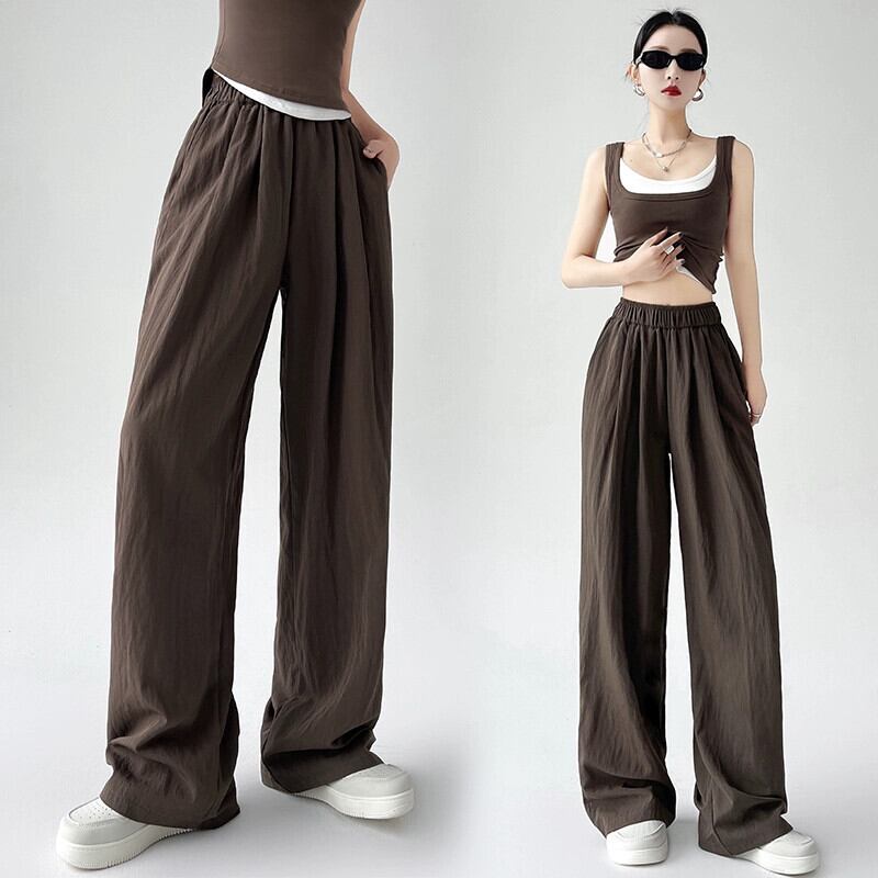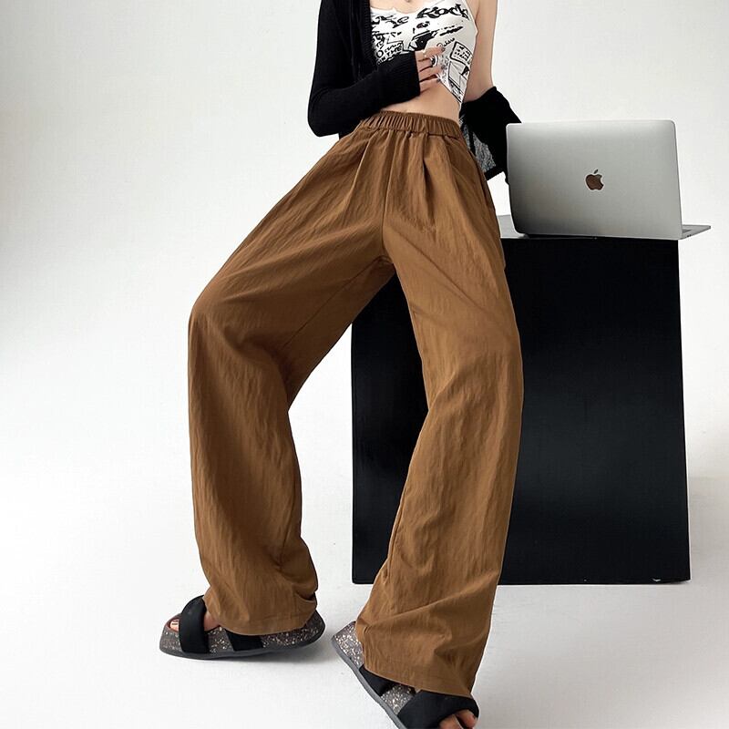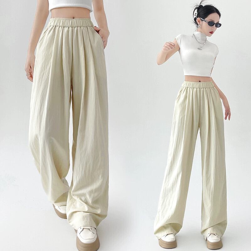 薄いアイスシルクコットンとリネンのワイドレッグパンツの女性の夏のエセスタイル怠惰なドレープ山本パンツハイウエストストレートプリーツカジュアルパンツ サマー 夏物 7460057906740059 | framboise21