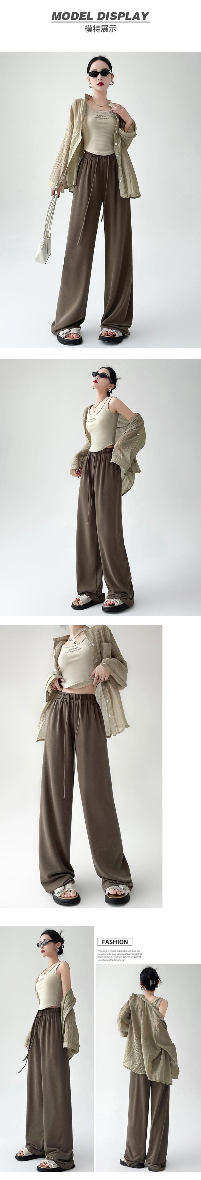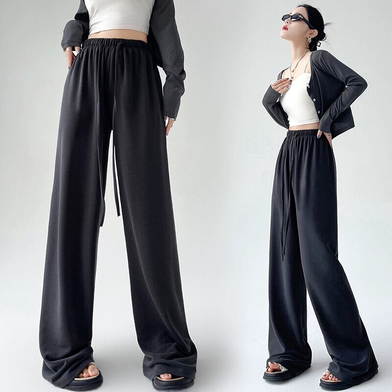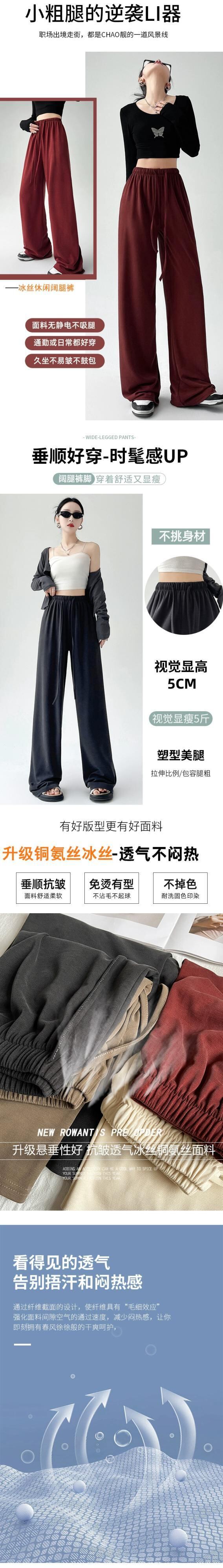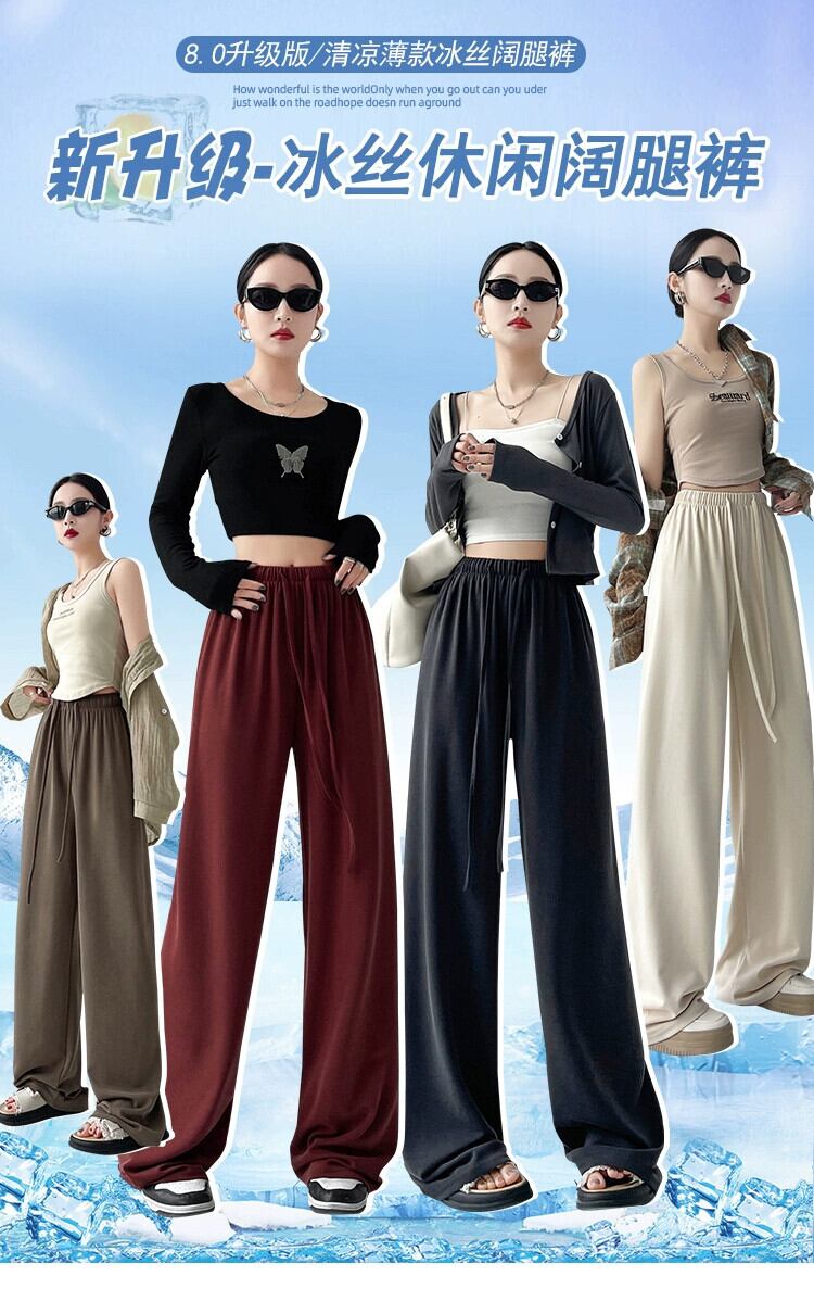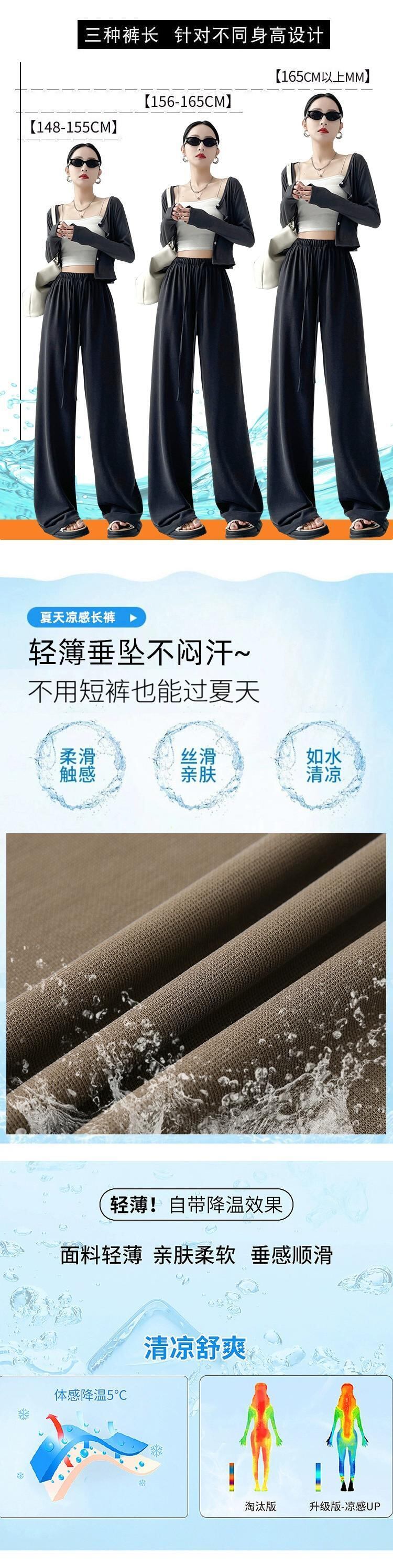 夏の細いキュプラシルクワイドレッグパンツレディース、薄いアイスシルク日焼け止めパンツ、ハイウエストドレープ、スリムストレートレッグカジュアルパンツレディース サマー 夏物 7460012242316932 | framboise21
