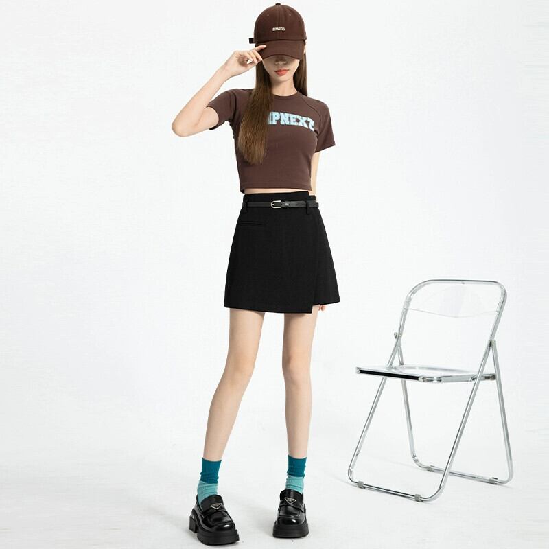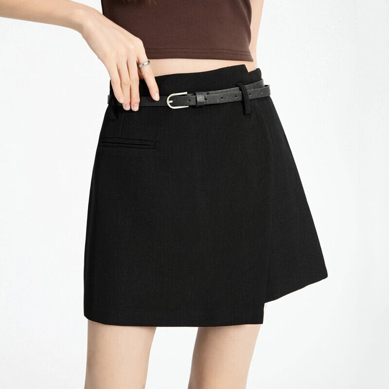 黒のハイウエストパンツスカート女性の夏の 2024 新しい人気のワンピース偽ツーピース a ラインスカート抗露出ショートスカート ブラック サマー 夏物 Aライン 7460038787146428 | framboise21