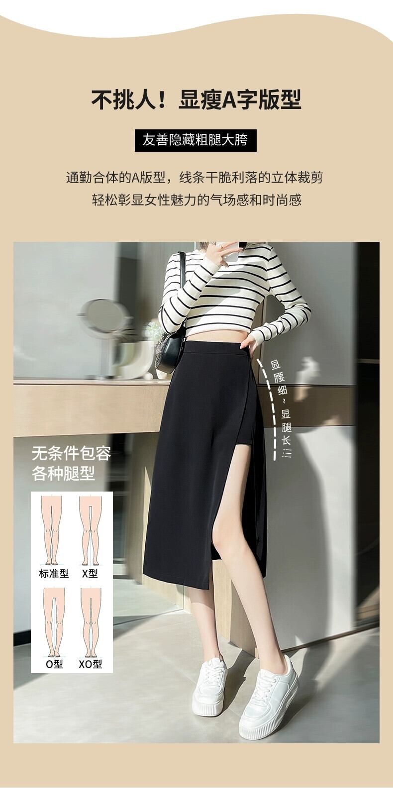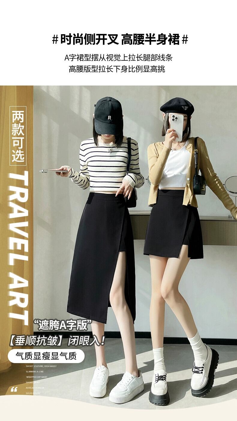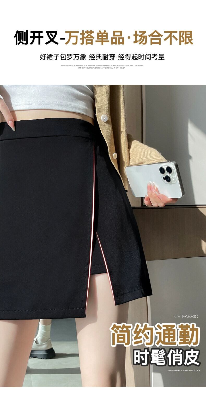 春と秋の黒のハイウエストスーツスカートの女性、スリムで多用途の露出防止スリットAラインヒップスカート ブラック スプリング 春物 オータム 秋物 7460041066555983 | framboise21
