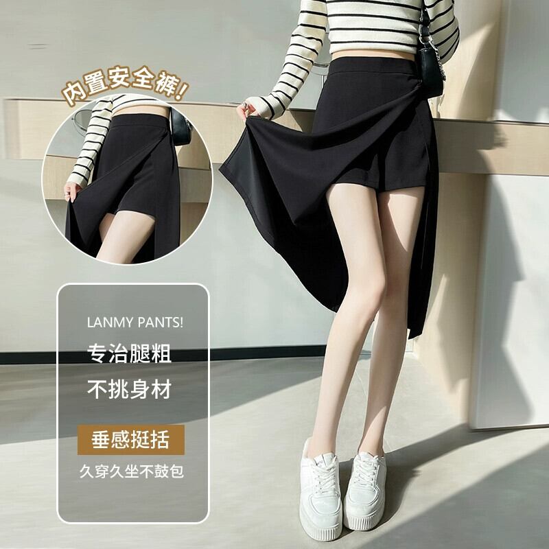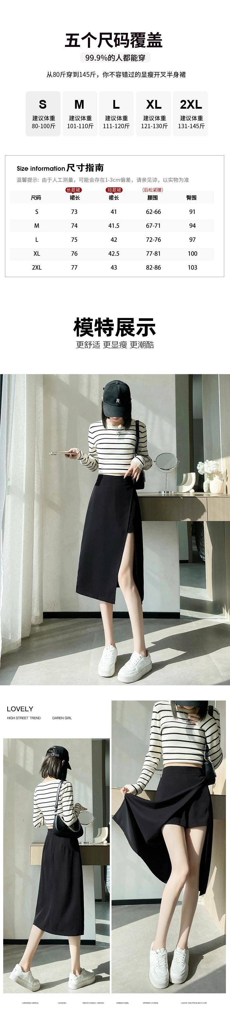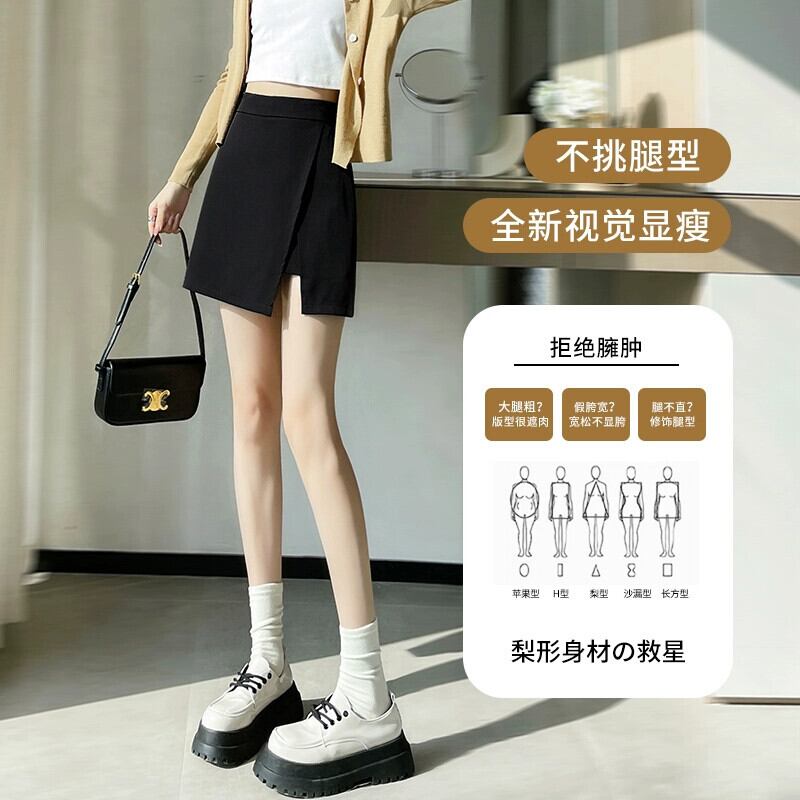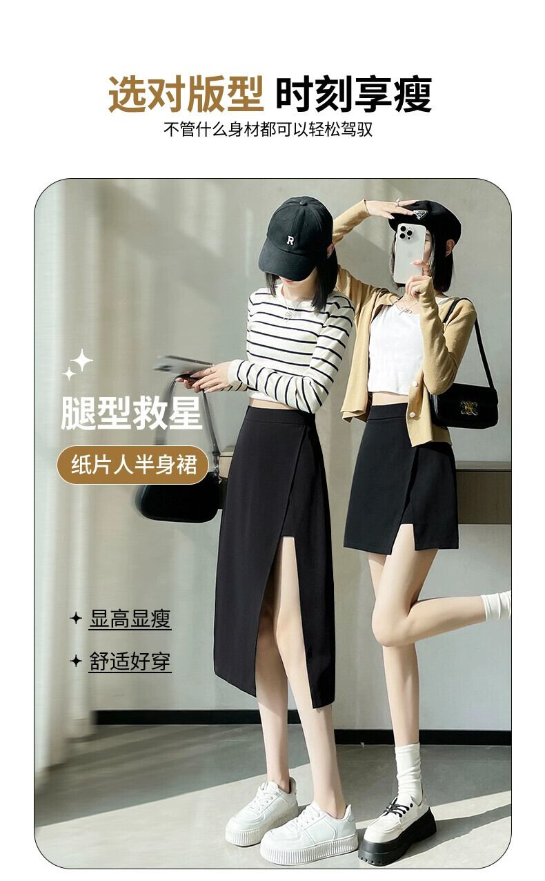 春と秋の黒のハイウエストスーツスカートの女性、スリムで多用途の露出防止スリットAラインヒップスカート ブラック スプリング 春物 オータム 秋物 7460041066555983 | framboise21