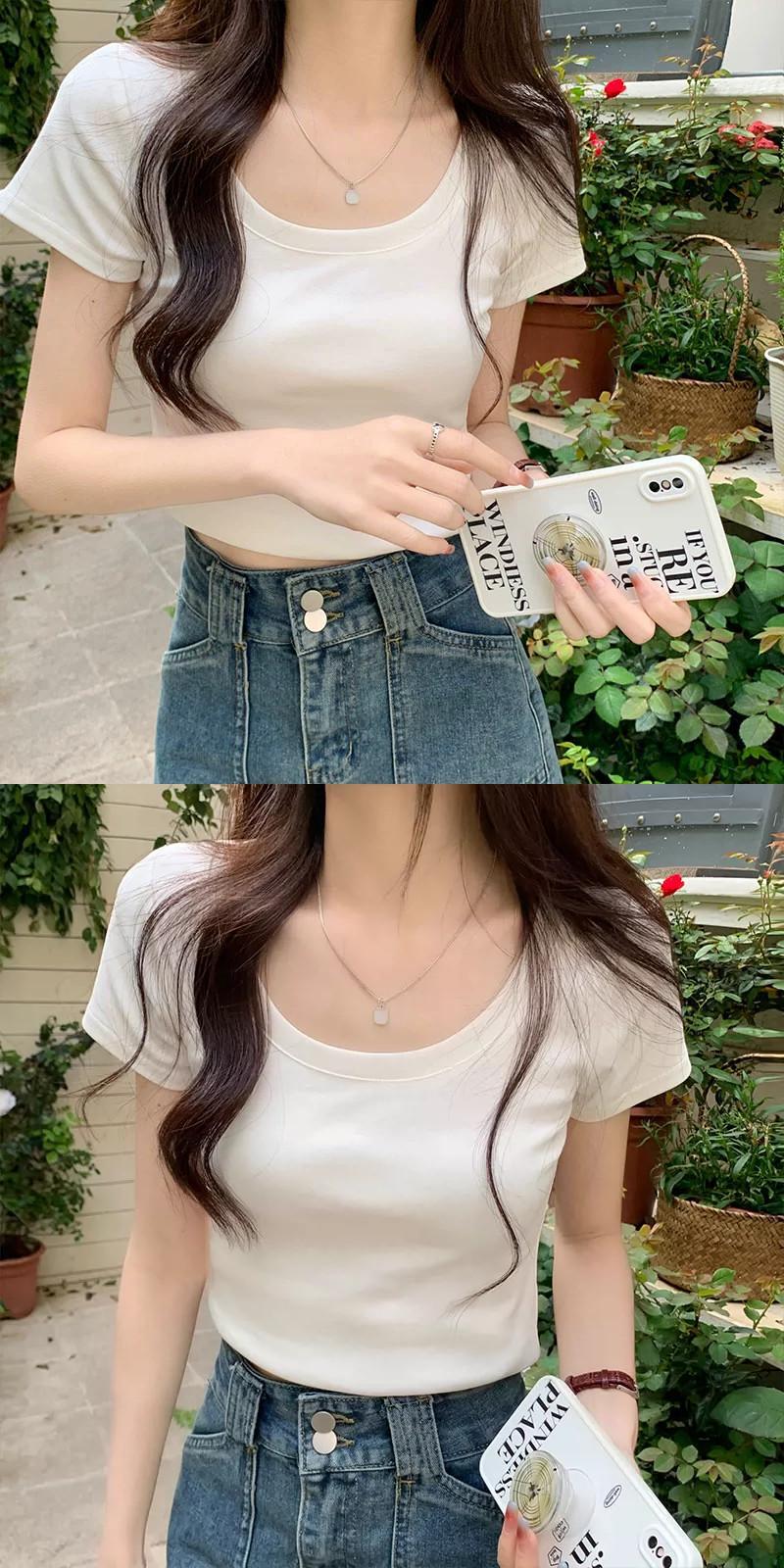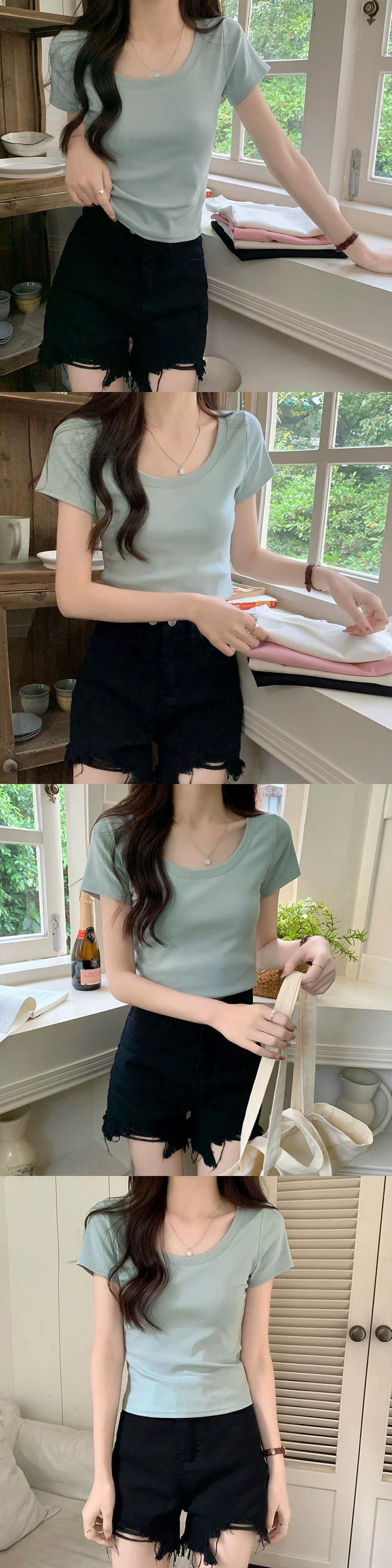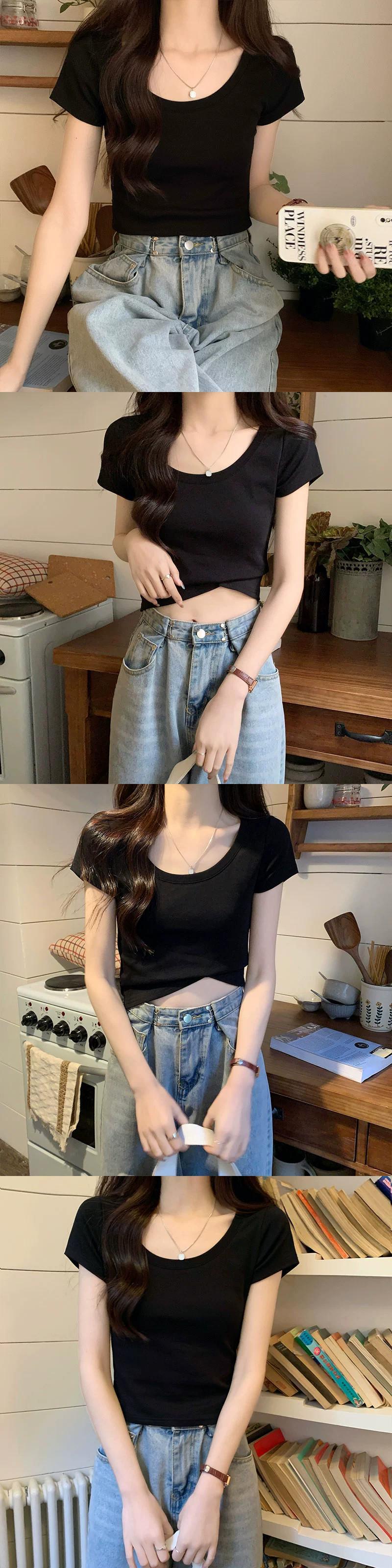 ピンクショルダー純粋な綿半袖 tシャツ女性の夏のファッションスリムフィット小さなハイウエストショートラウンドネックトップ ハイウェスト コットン サマー 夏物 Oネック ピュア 7460016046058797 | framboise21