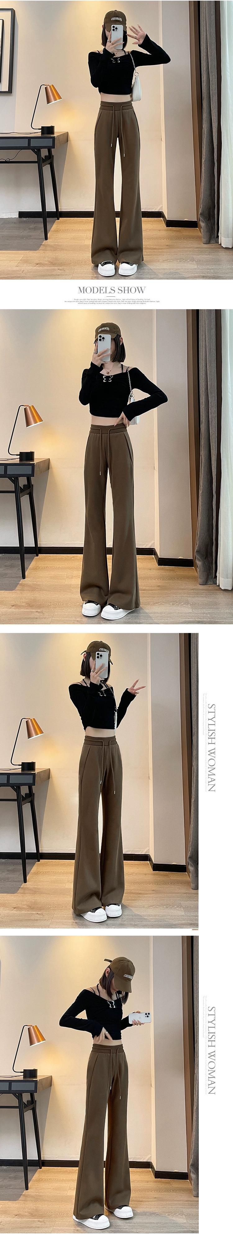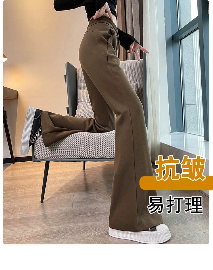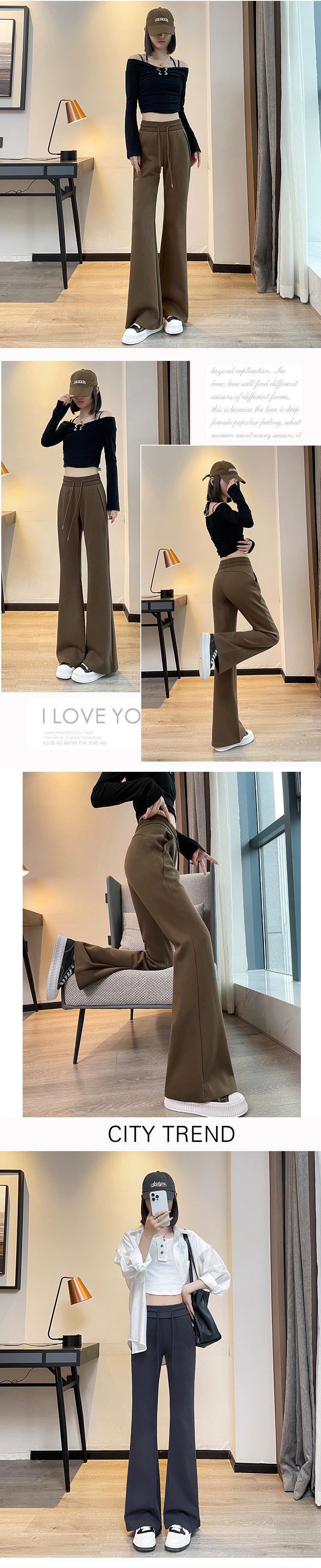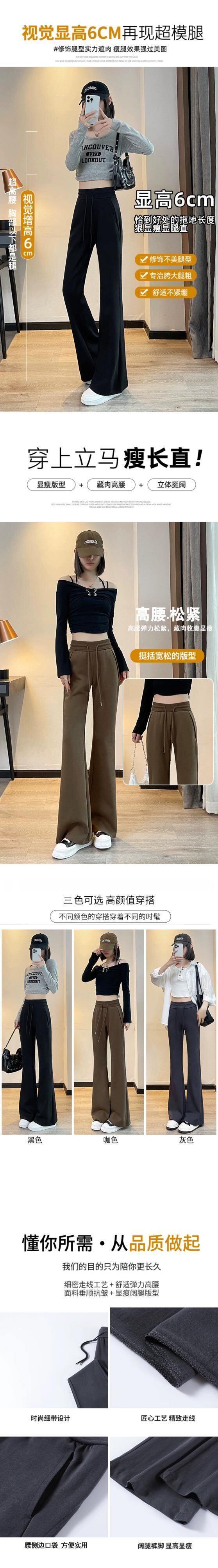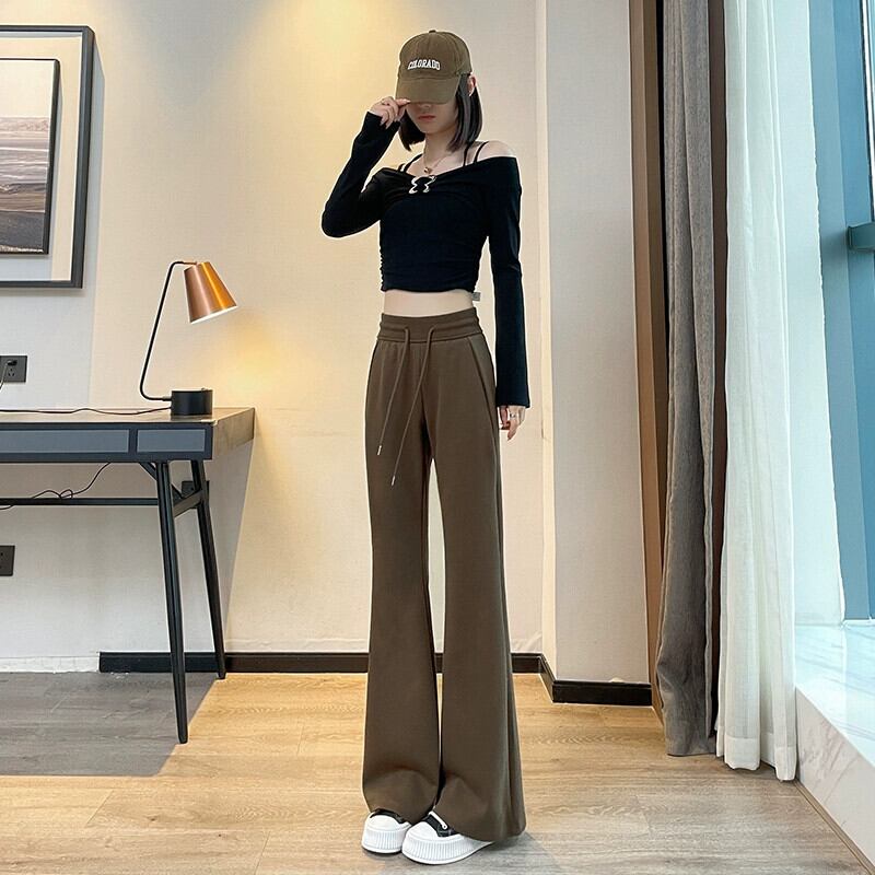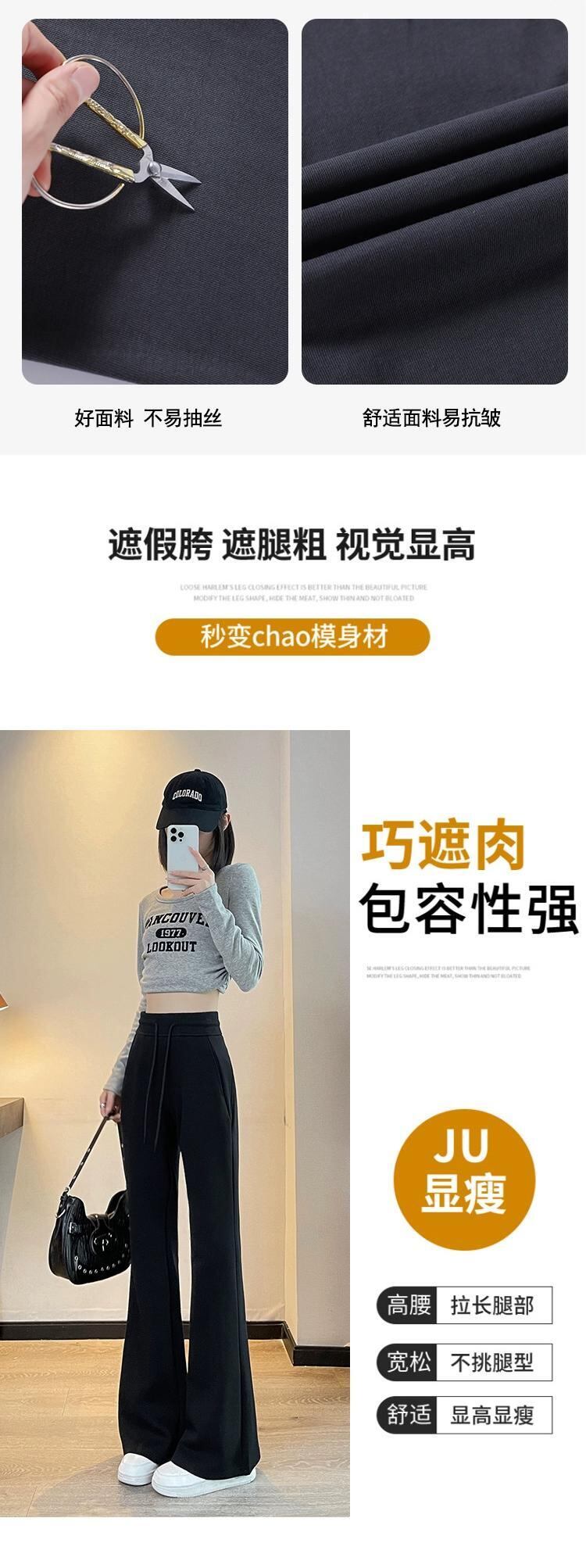 黒のストレートレッグマイクロフレアパンツレディース、春と秋のカジュアルスポーツパンツ、ハイウエスト、スリム、汎用性の高いフロアレングスのナローワイドレッグパンツ ブラック スプリング 春物 オータム 秋物 7460026299770923 | framboise21