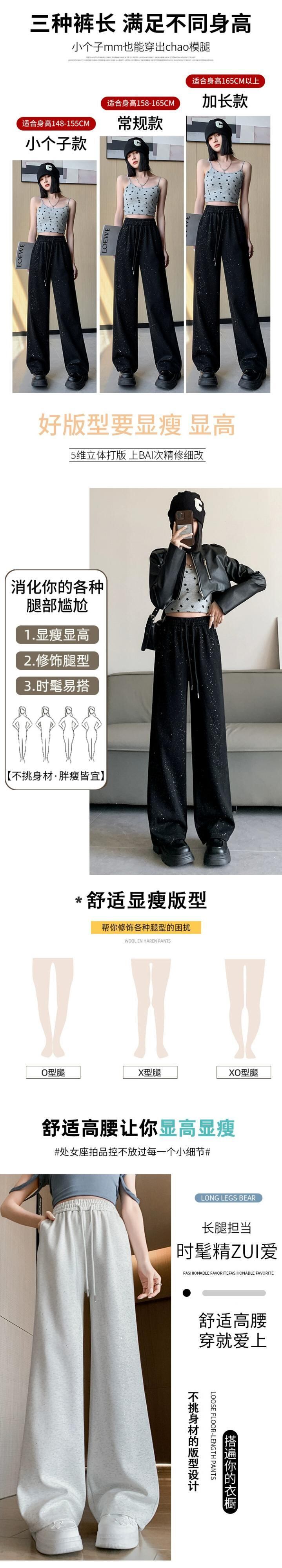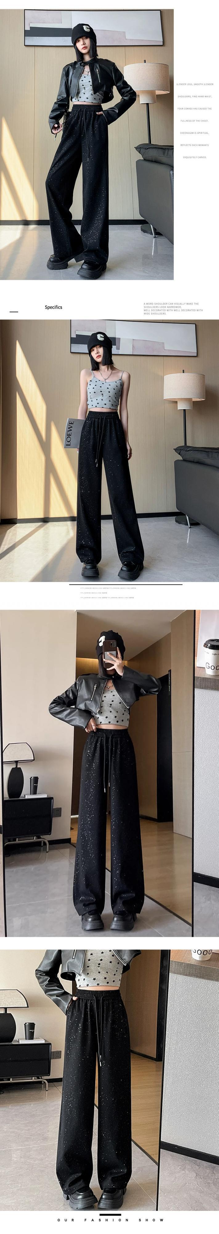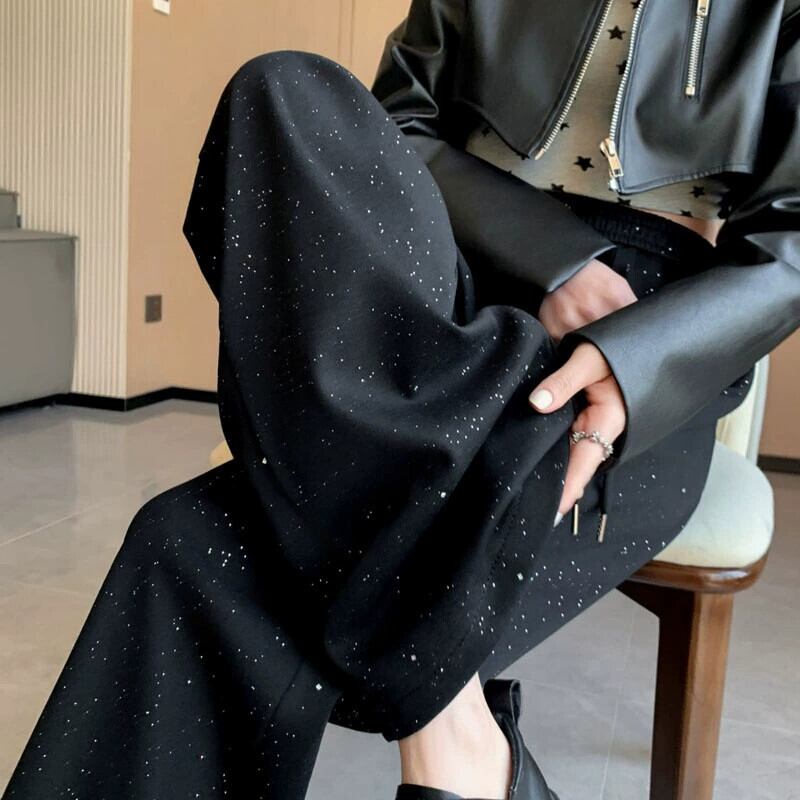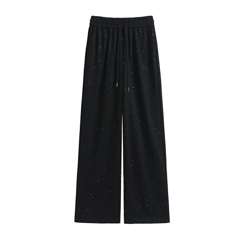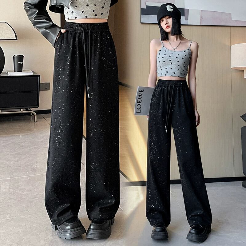 黒の狭いストレートレッグスポーツパンツの女性 2024 春と秋の新作ルーズカジュアルハイウエストドレープフロアレングスワイドレッグパンツ ブラック スプリング 春物 オータム 秋物 7460038771602837 | framboise21