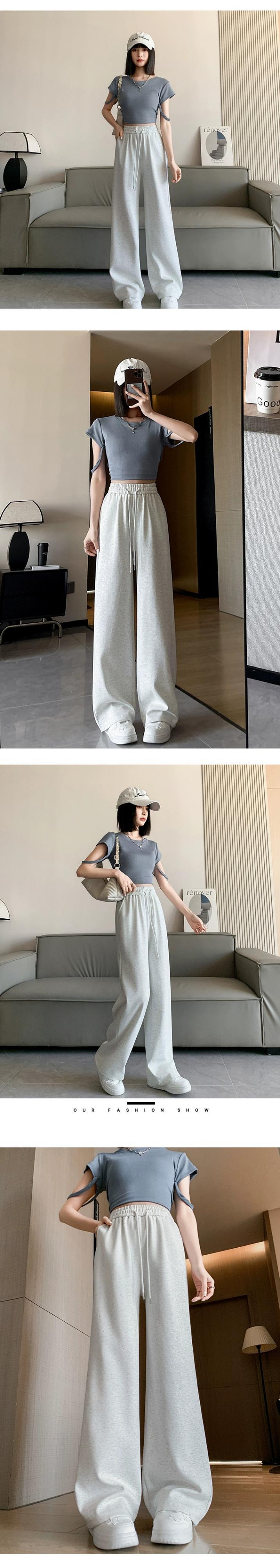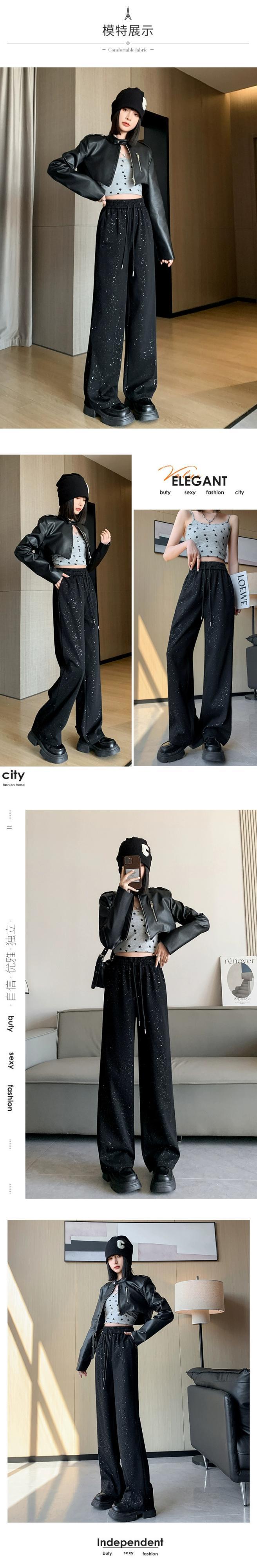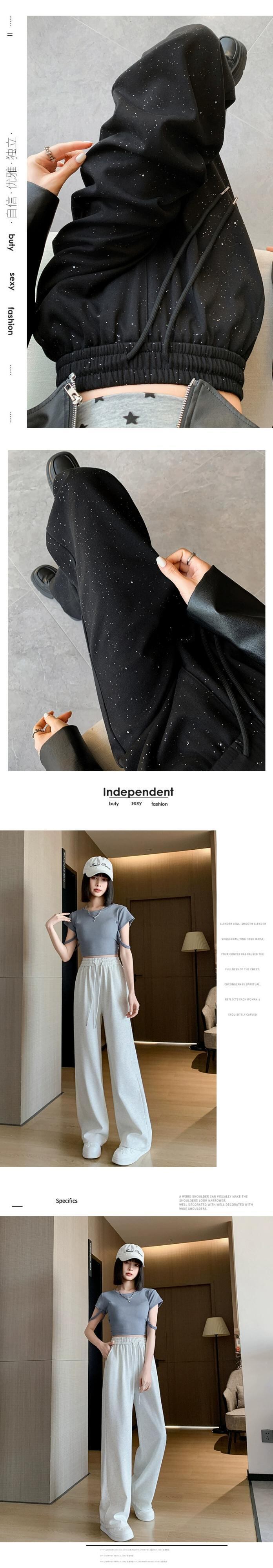 黒の狭いストレートレッグスポーツパンツの女性 2024 春と秋の新作ルーズカジュアルハイウエストドレープフロアレングスワイドレッグパンツ ブラック スプリング 春物 オータム 秋物 7460038771602837 | framboise21