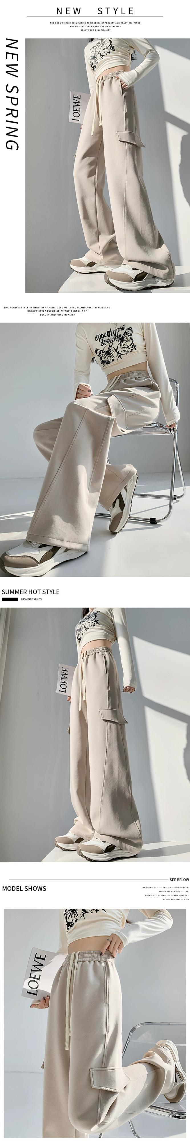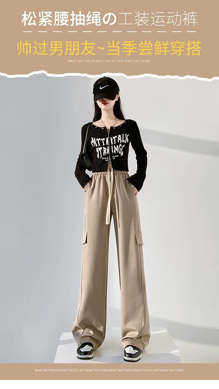 ストレートスポーツパンツ女性 2024 春と秋の新スタイルアメリカンオーバーオールハイウエストドレープナローワイドレッグパンツ ハイウェスト スプリング 春物 オータム 秋物 ワイドパンツ 7460027405669313 | framboise21