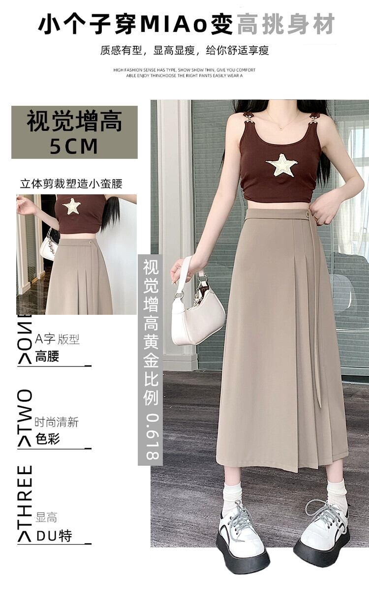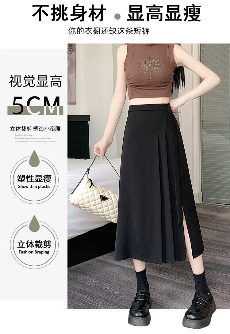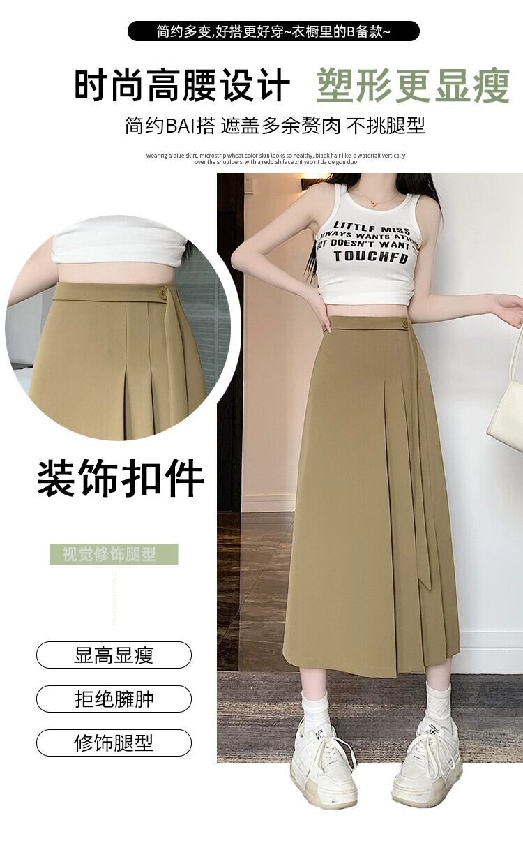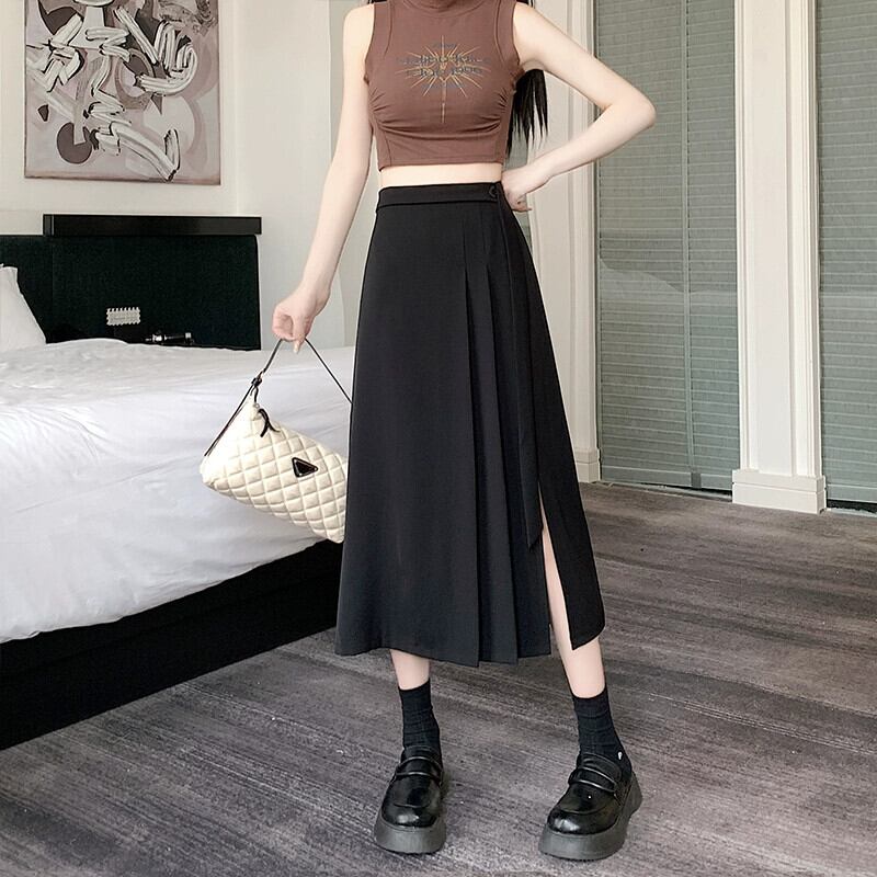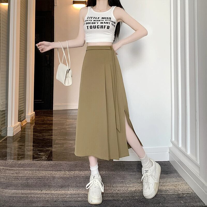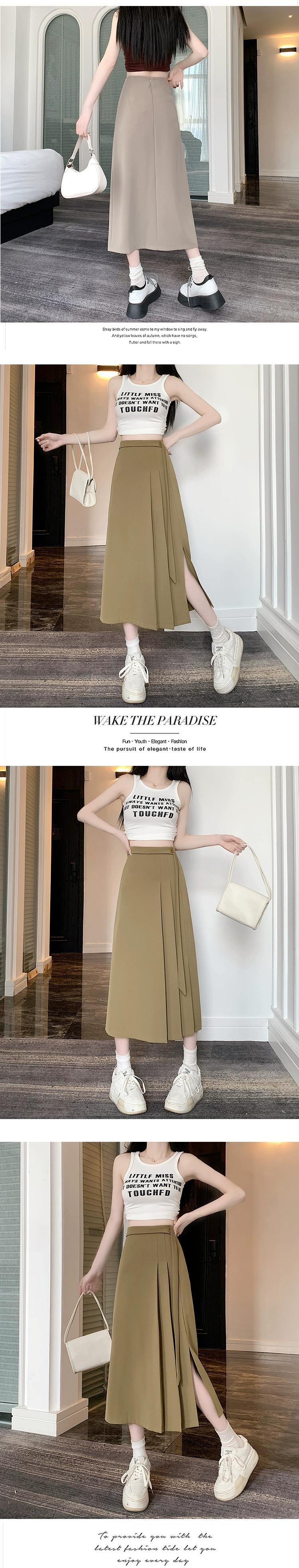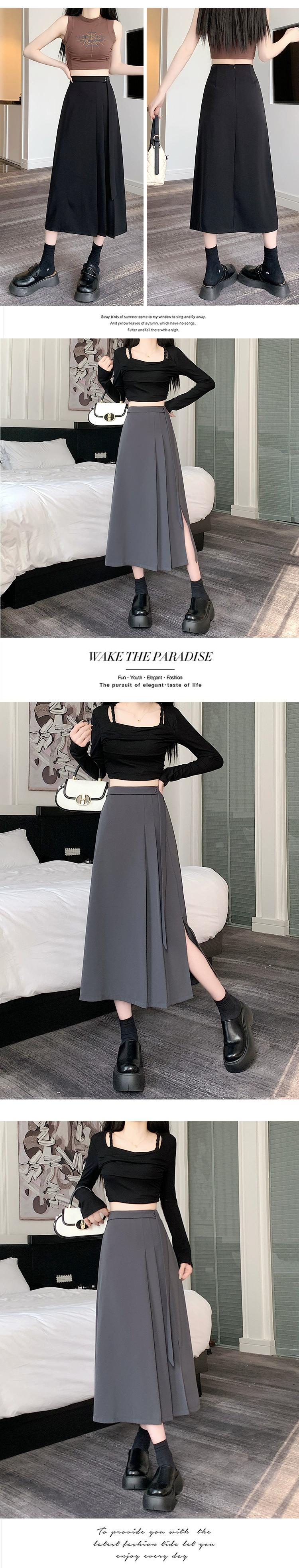 -エンドグレープリーツスカートレディース、春夏ハイウエストスーツスカート股間をカバーしてスリムに見せてくれるミモレ丈のスリットAラインスカート スプリング 春物 サマー 夏物 74600757706452 | framboise21