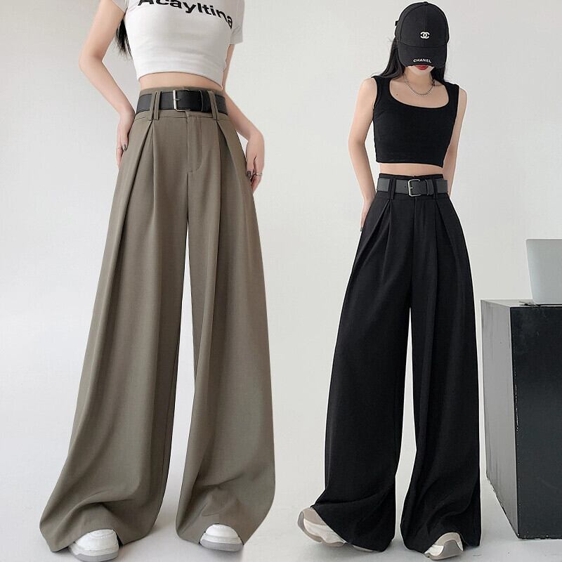グレーストレートスーツパンツ女性 2024 春夏の新作ハイエンドドレープファッションルーズカジュアルフロアレングスワイドレッグパンツ スプリング 春物 サマー 夏物 7460021563188505 | framboise21