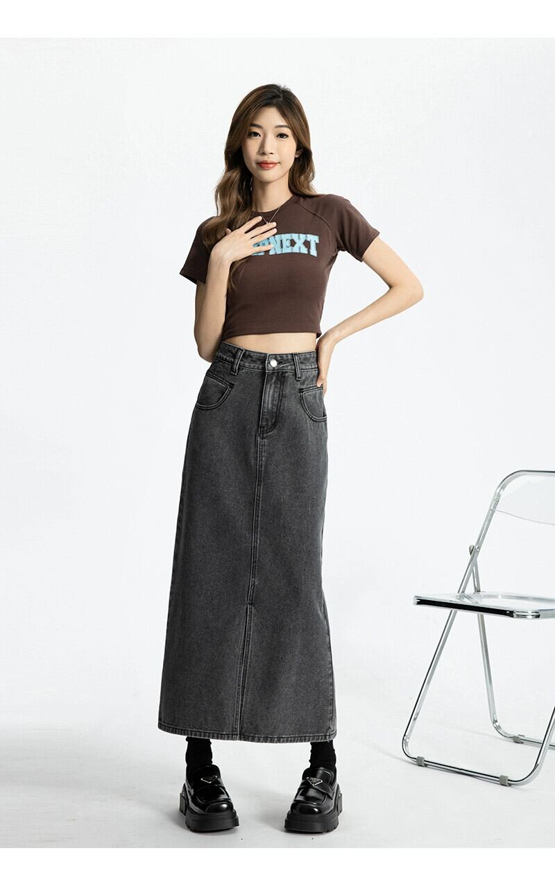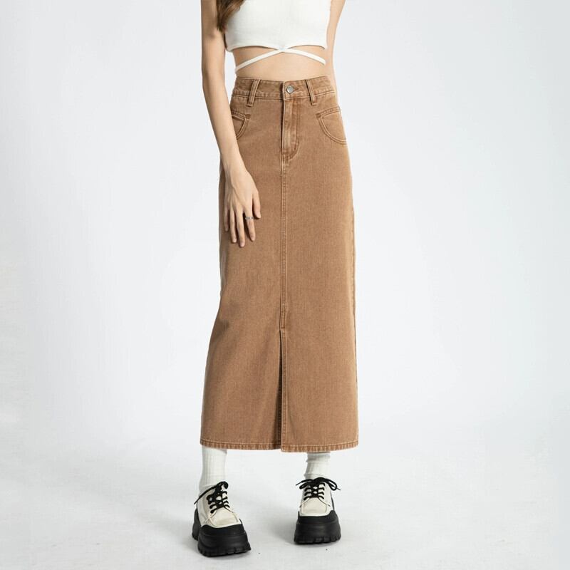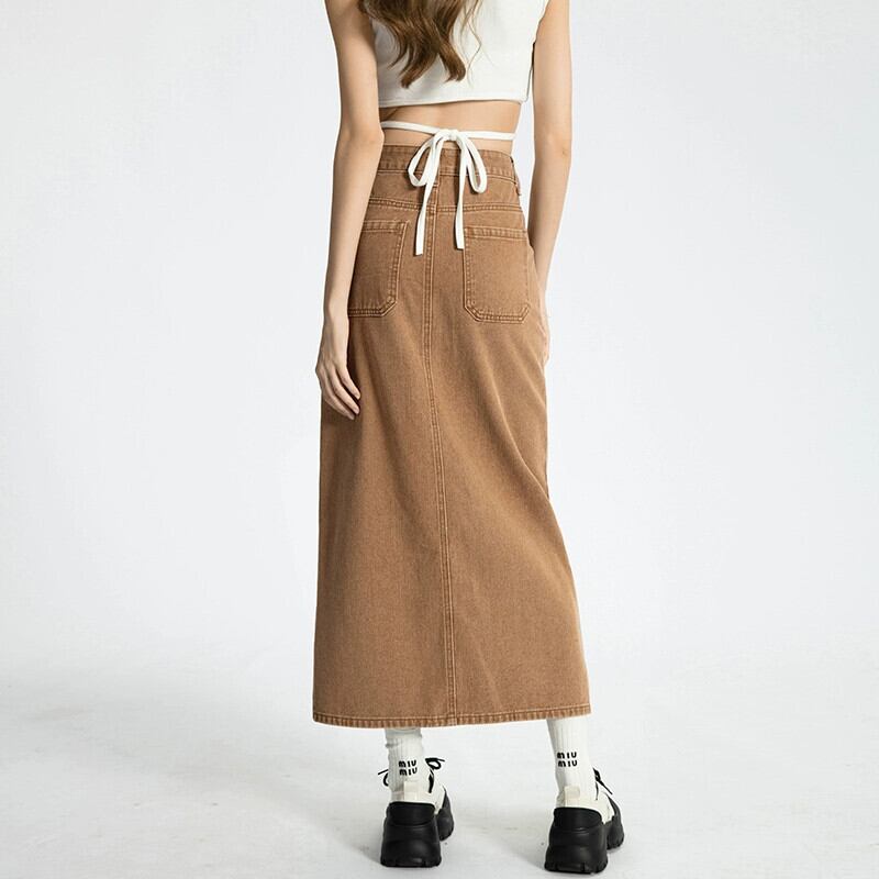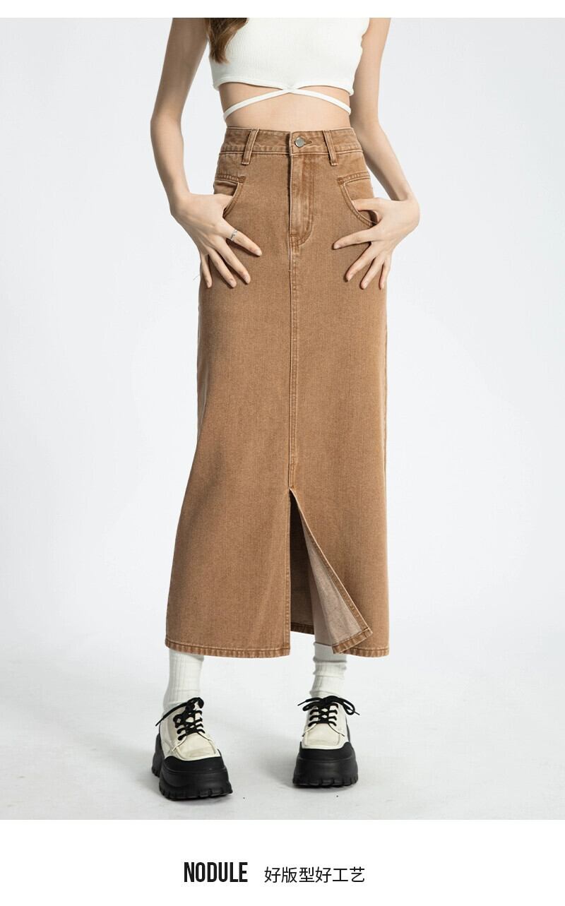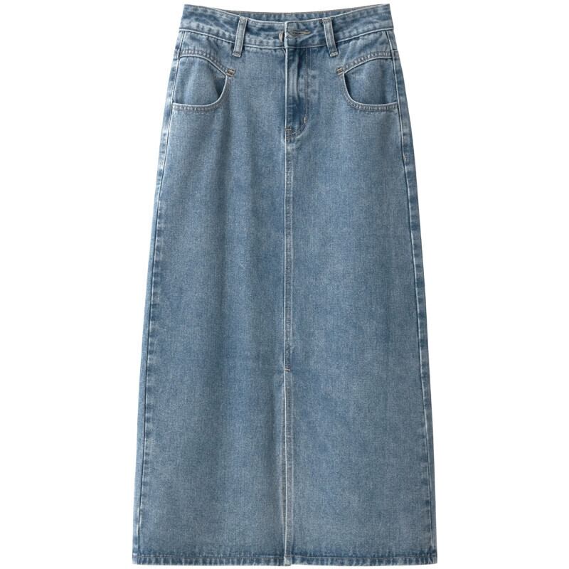 A ラインデニムスカートの女性の夏 2024 新しいアメリカンレトロハイウエストスリムストレートスリットヒップカバーロングスカート サマー 夏物 Aライン 7460090935739120 | framboise21