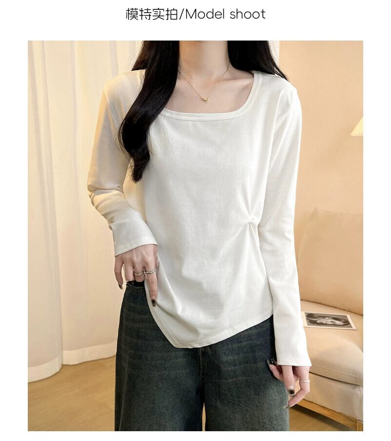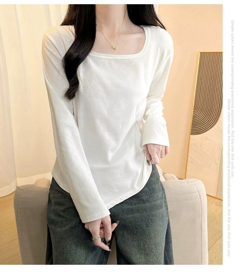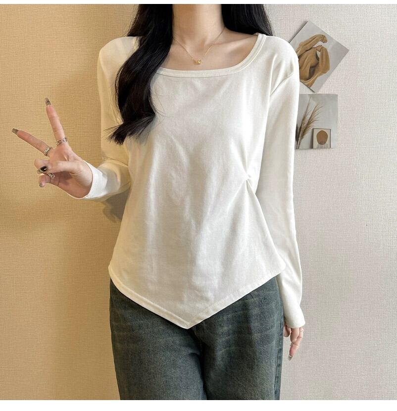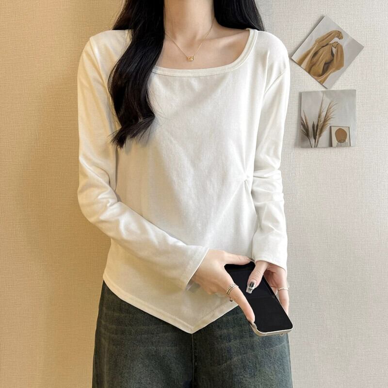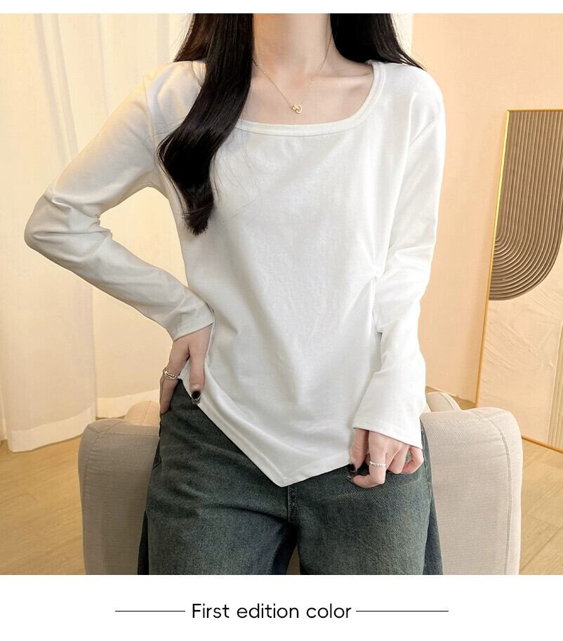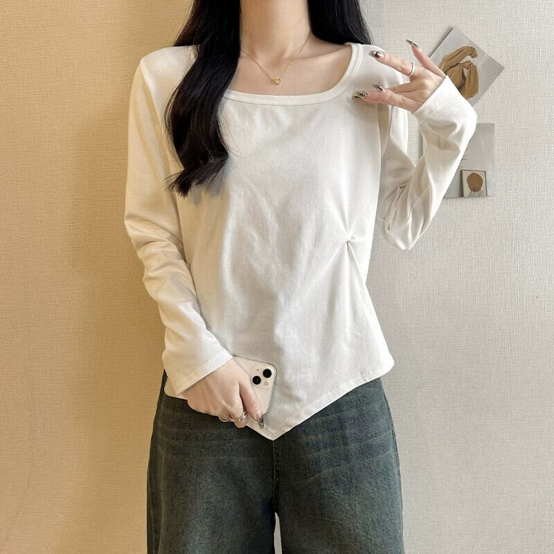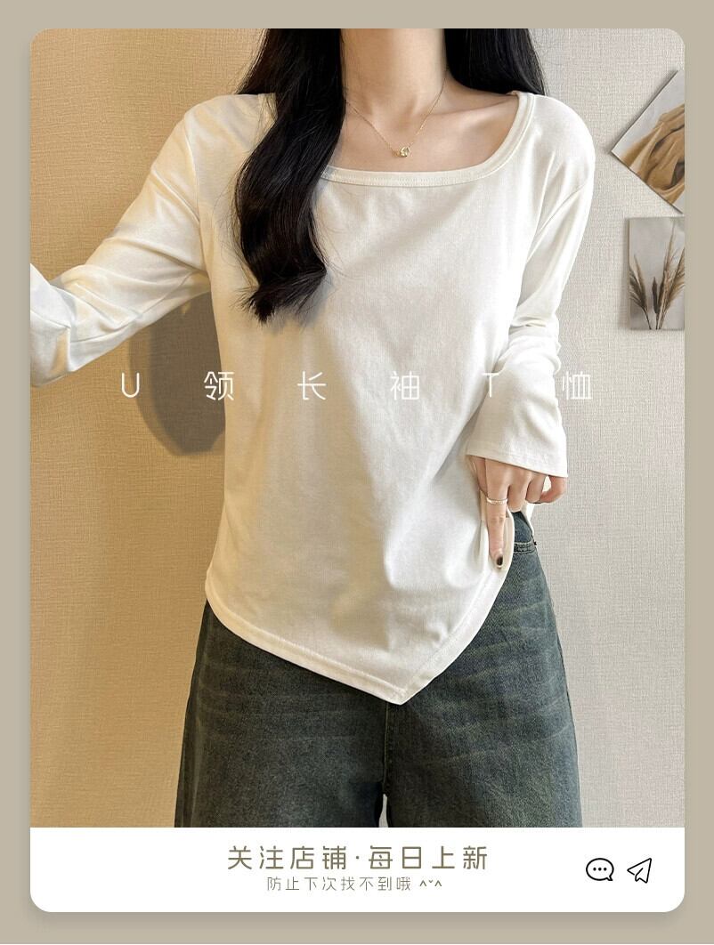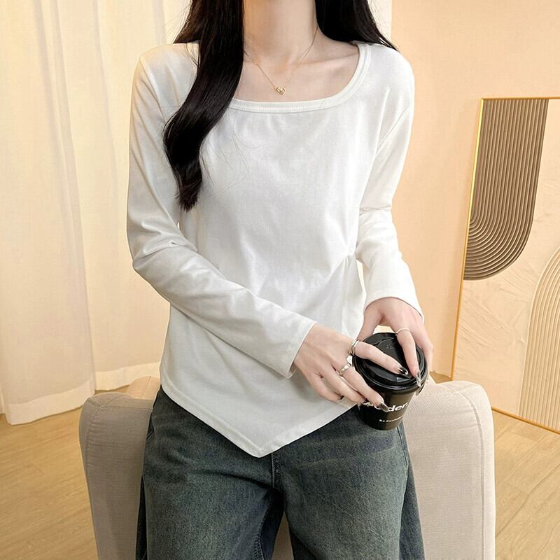 純粋な綿の長袖 tシャツの女性の 2024 年春の新しい白い底シャツのデザインと不規則な正方形の襟のトップ ロング ホワイト コットン スプリング 春物 スクウェア 7460038092225157 | framboise21