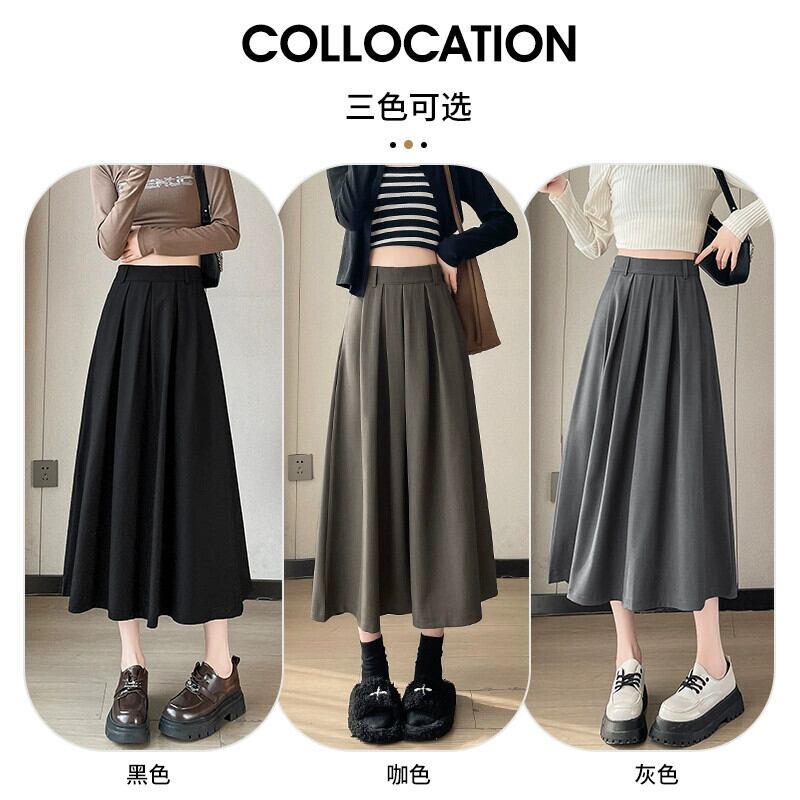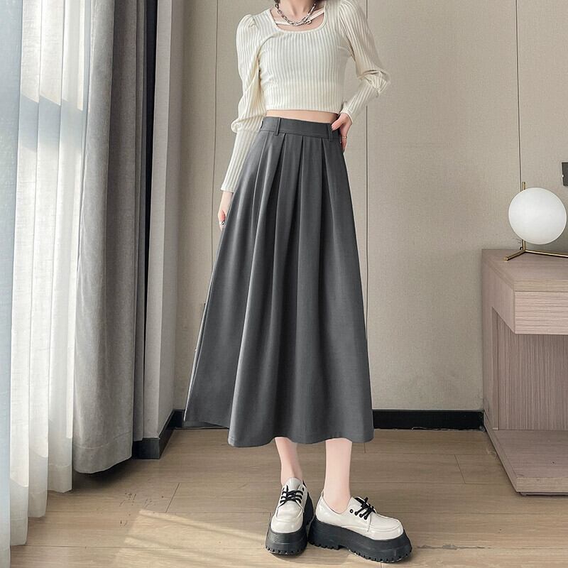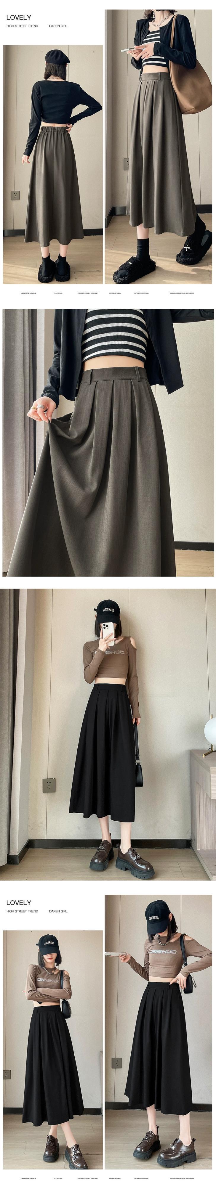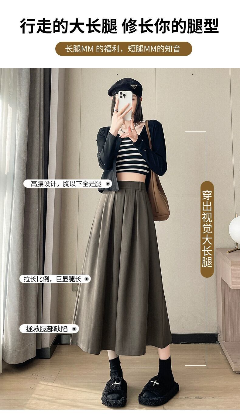 レトロコーヒー色のスーツスカートレディース春秋ハイウエストAラインプリーツスカートで股間をカバーしてスリムに見せてくれるミモレ丈大振りアンブレラスカート レッド スプリング 春物 オータム 秋物 7460031951336535 | framboise21
