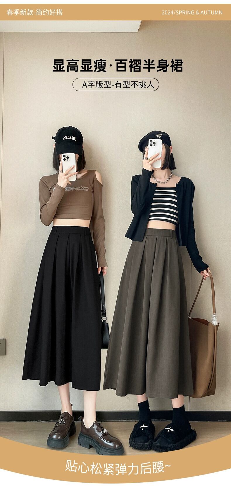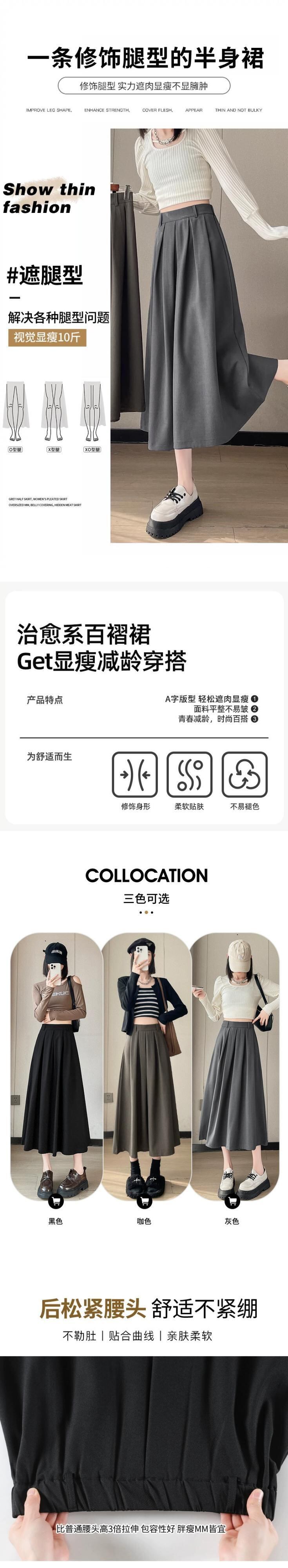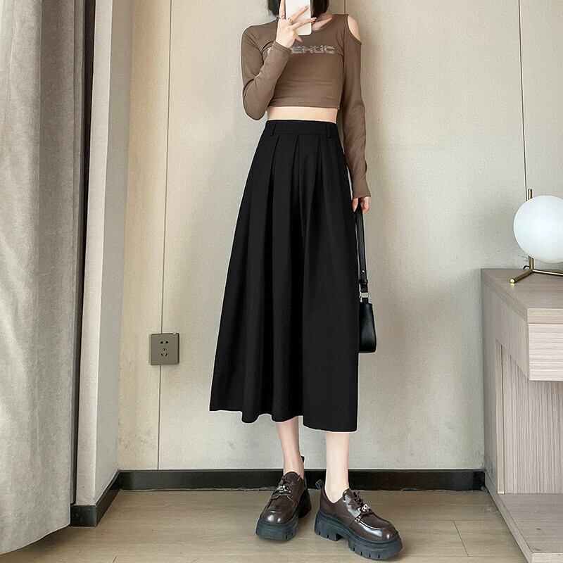 レトロコーヒー色のスーツスカートレディース春秋ハイウエストAラインプリーツスカートで股間をカバーしてスリムに見せてくれるミモレ丈大振りアンブレラスカート レッド スプリング 春物 オータム 秋物 7460031951336535 | framboise21