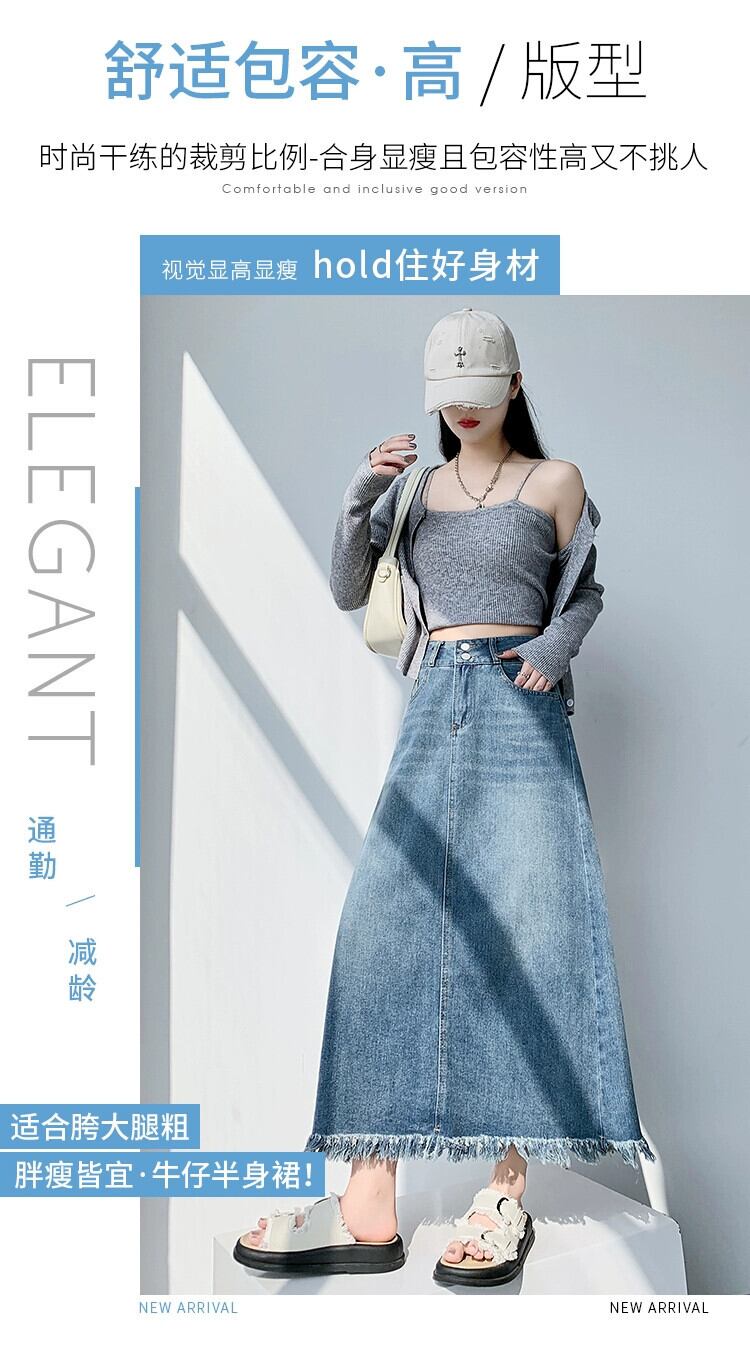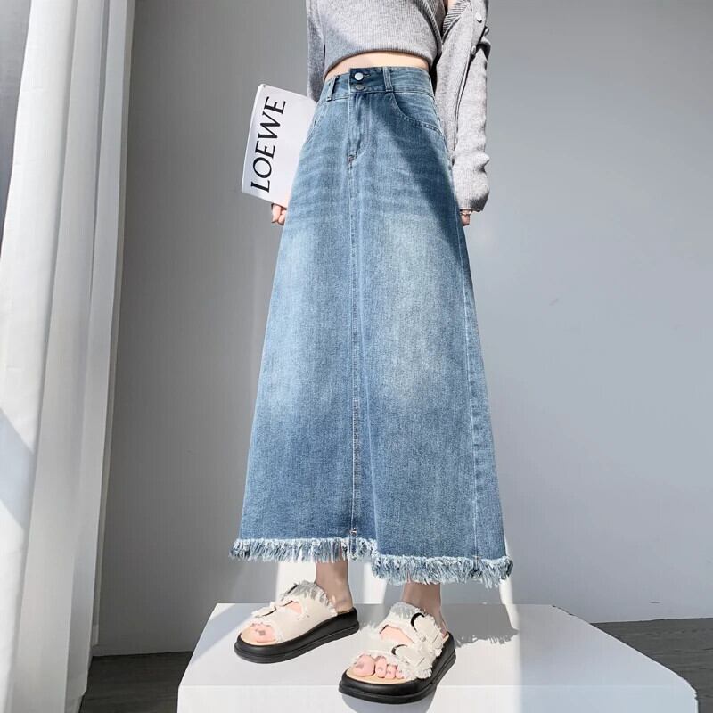 Tel デニムスカート レディース 2024 春秋 スリム ロング スリット A ライン ウエスト アンブレラ スカート スプリング 春物 オータム 秋物 Aライン 7460024213446584 | framboise21
