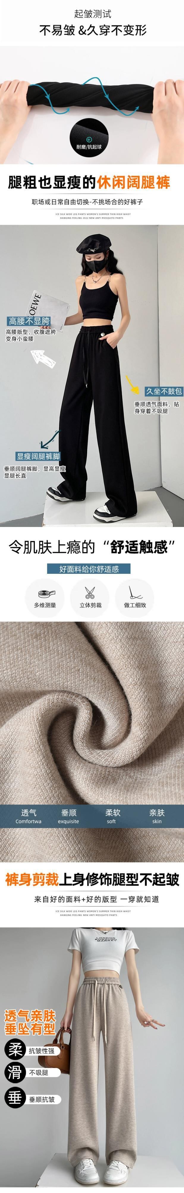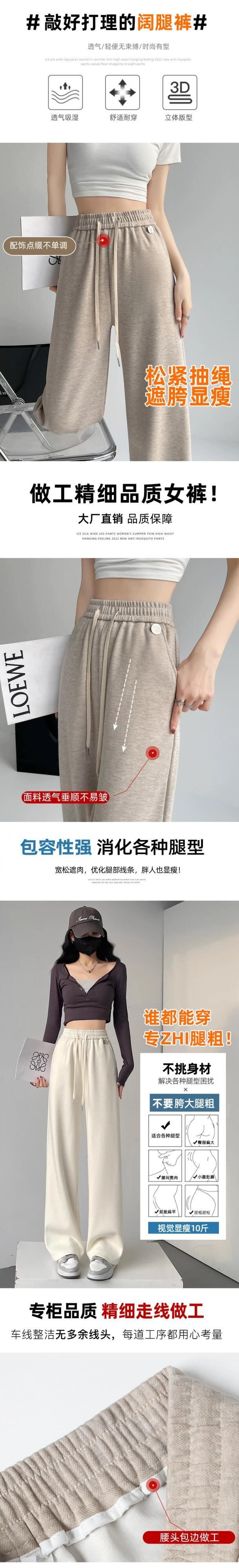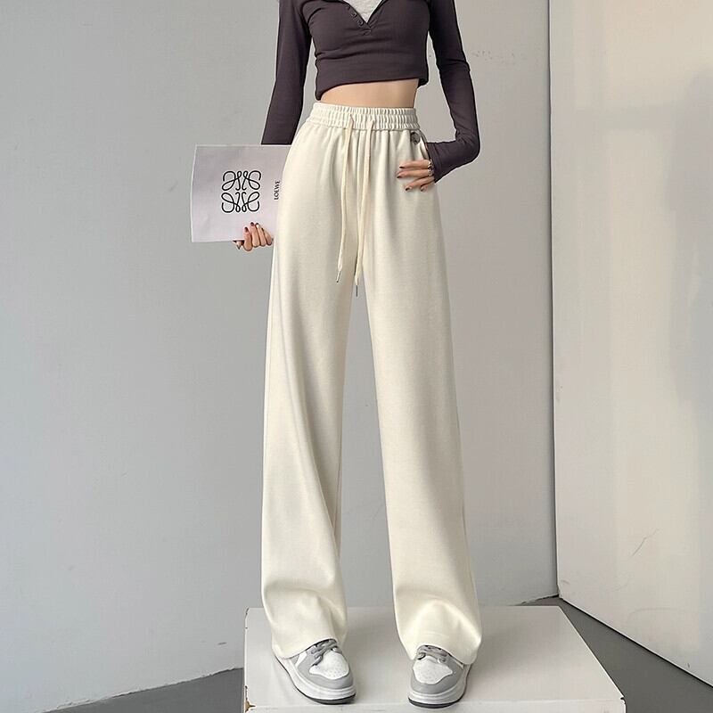 巾着ハイウエストナローワイドレッグパンツ女性 2024 春夏新作ルーズ痩身ドレープフロアレングスストレートカジュアルパンツ スプリング 春物 サマー 夏物 746006146683304 | framboise21