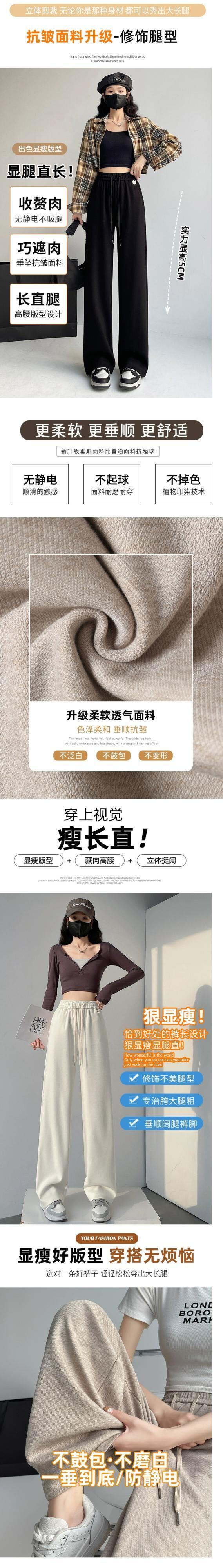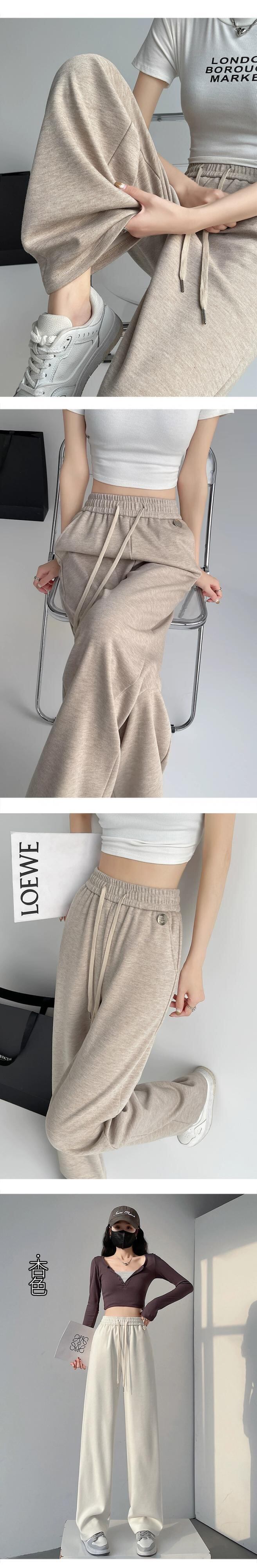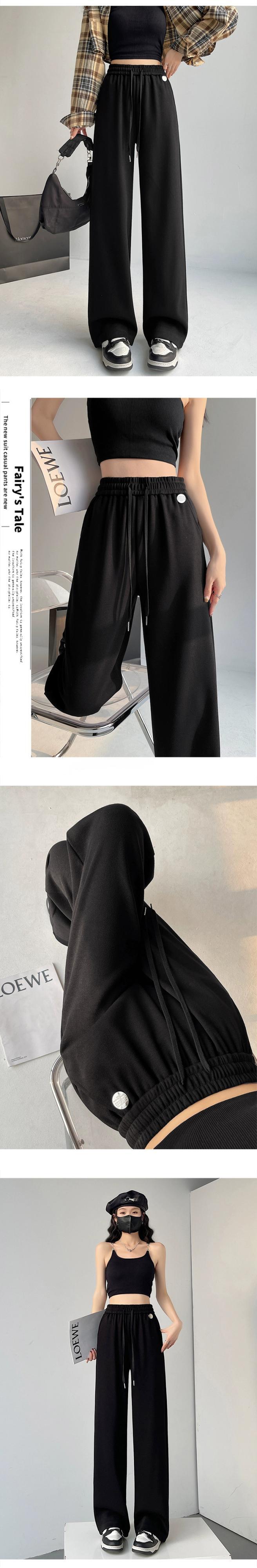 巾着ハイウエストナローワイドレッグパンツ女性 2024 春夏新作ルーズ痩身ドレープフロアレングスストレートカジュアルパンツ スプリング 春物 サマー 夏物 746006146683304 | framboise21
