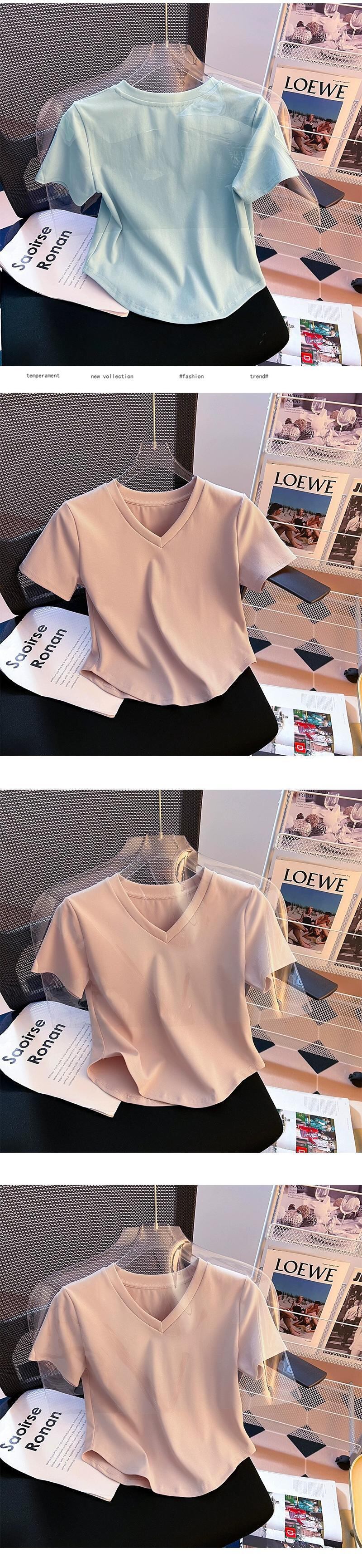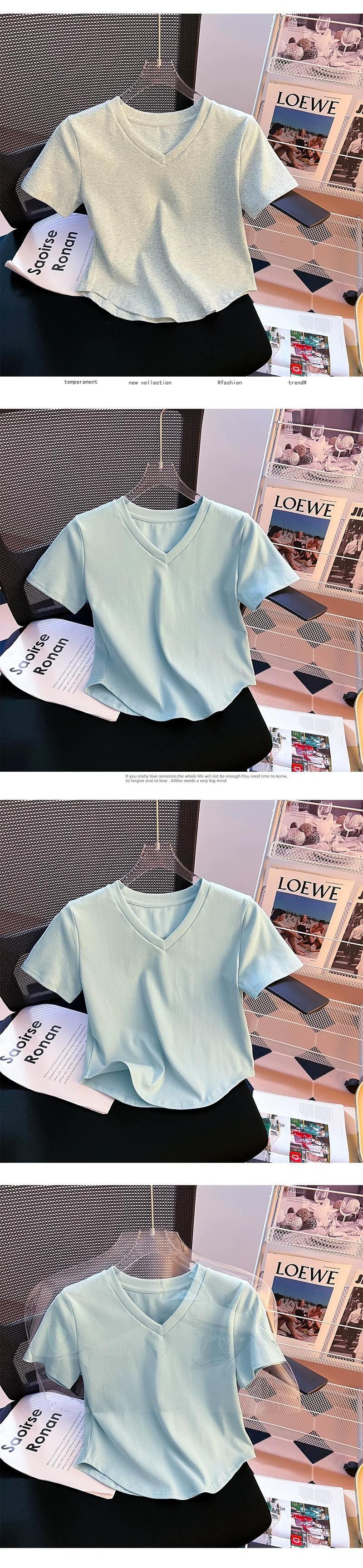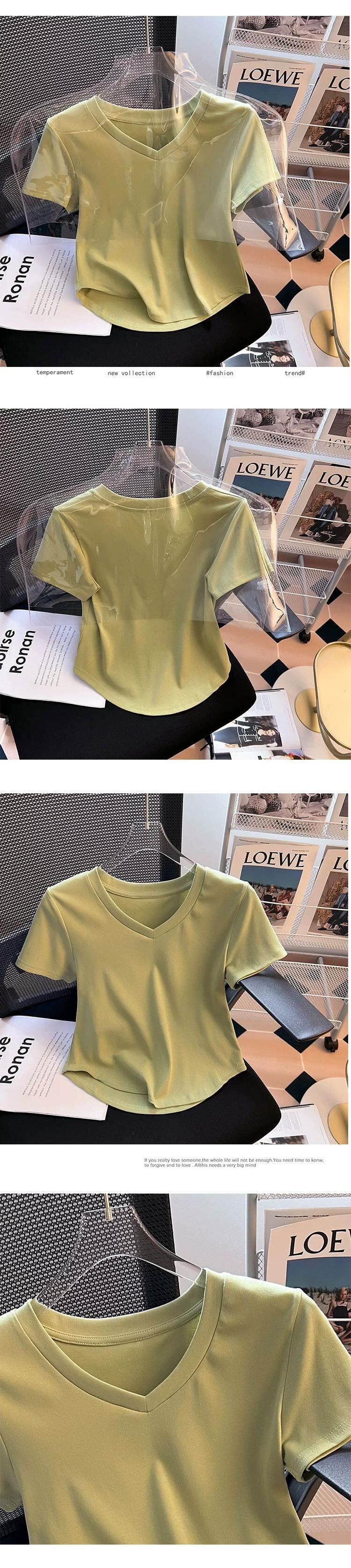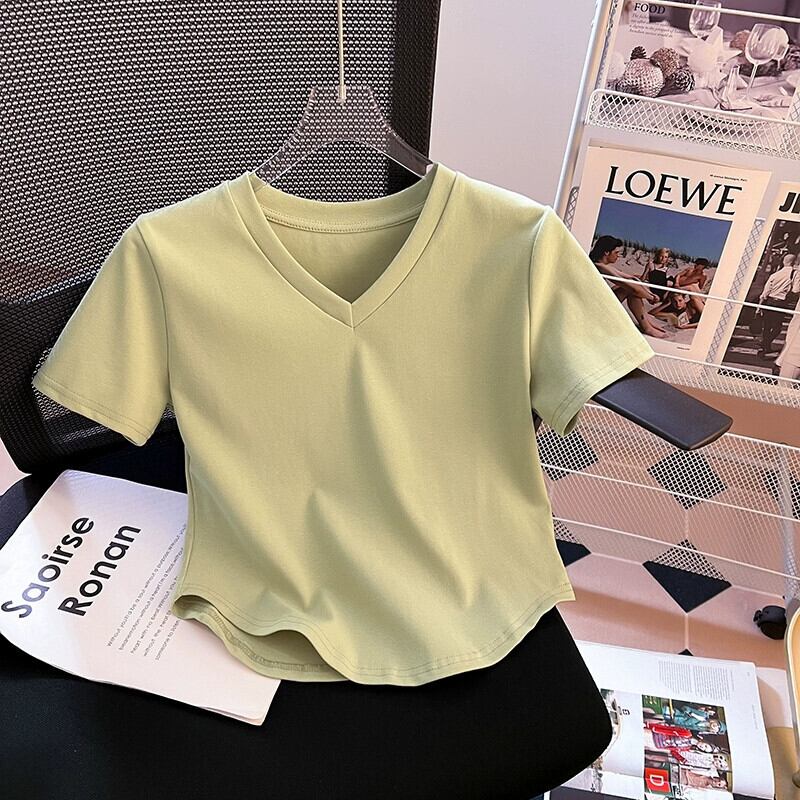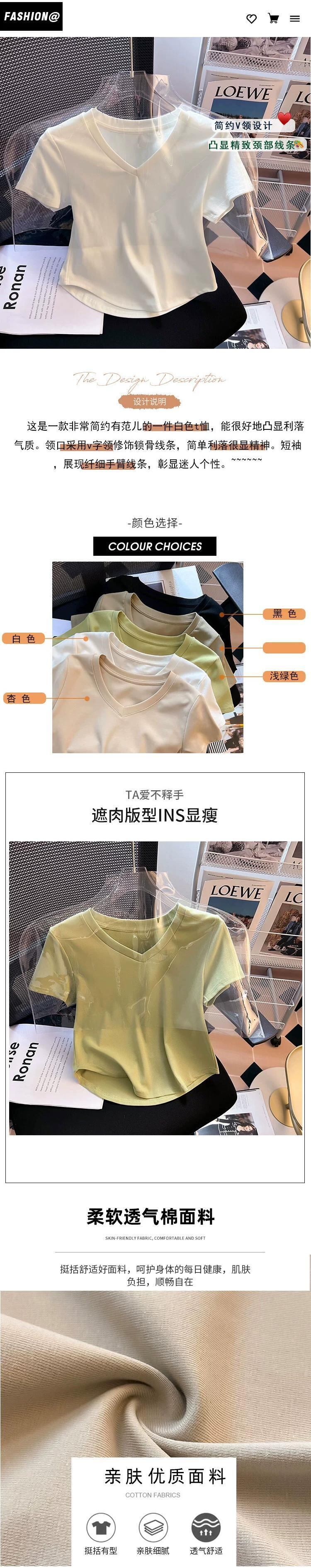 夏の白い綿の右肩半袖Tシャツの女性、スリムでファッショナブル、不規則な短いVネックトップ、トレンディな ショート ホワイト コットン サマー 夏物 7460019966115871 | framboise21