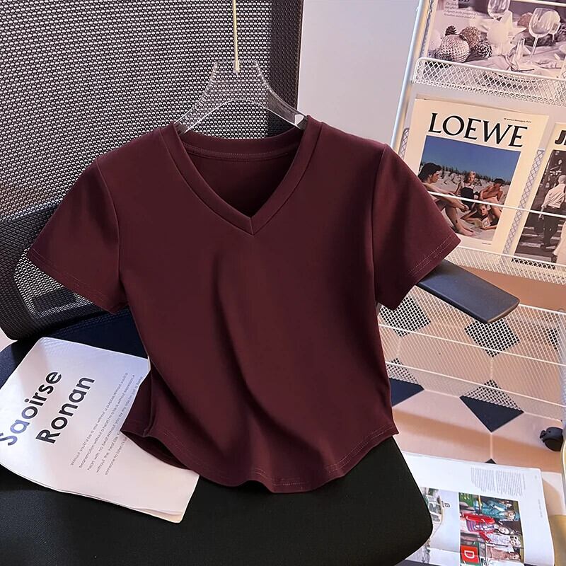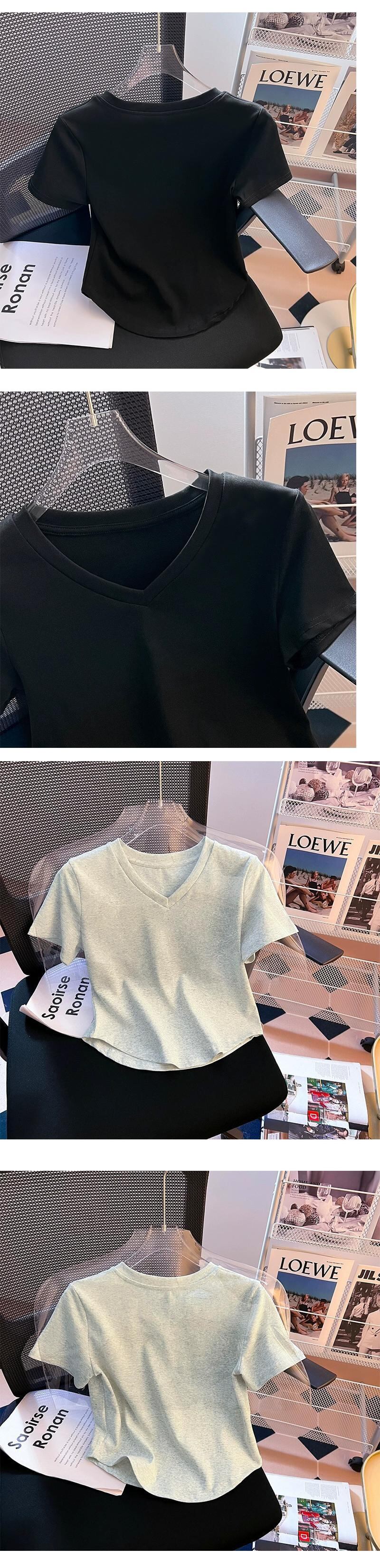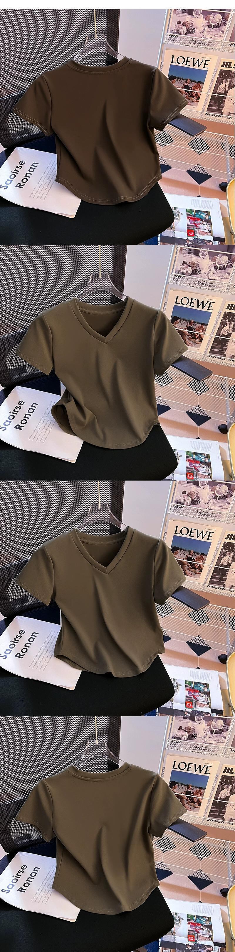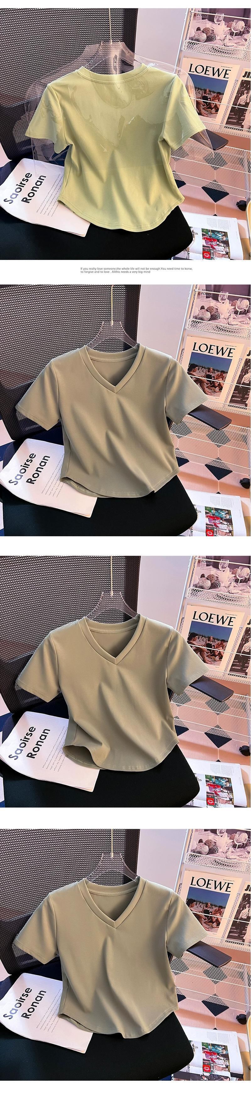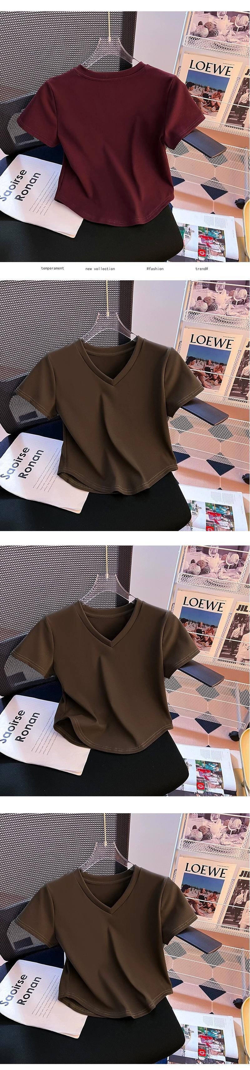 夏の白い綿の右肩半袖Tシャツの女性、スリムでファッショナブル、不規則な短いVネックトップ、トレンディな ショート ホワイト コットン サマー 夏物 7460019966115871 | framboise21