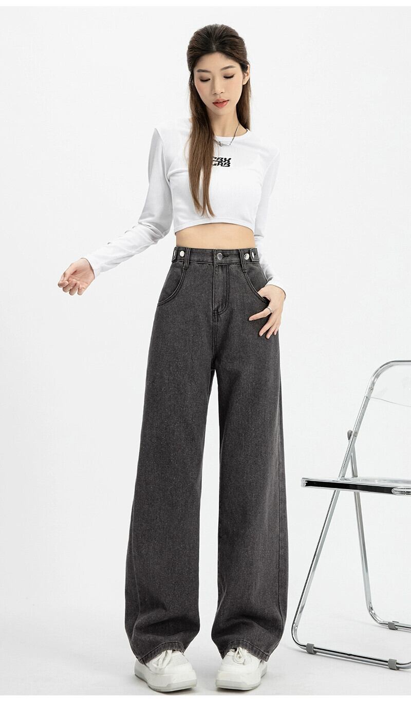 ナローストレートレッグジーンズレディース、春と秋、アメリカのハイストリートファッション、ルーズ、スリム、万能なハイウエストワイドレッグパンツ スプリング 春物 オータム 秋物 746008813897010 | framboise21
