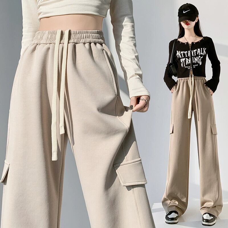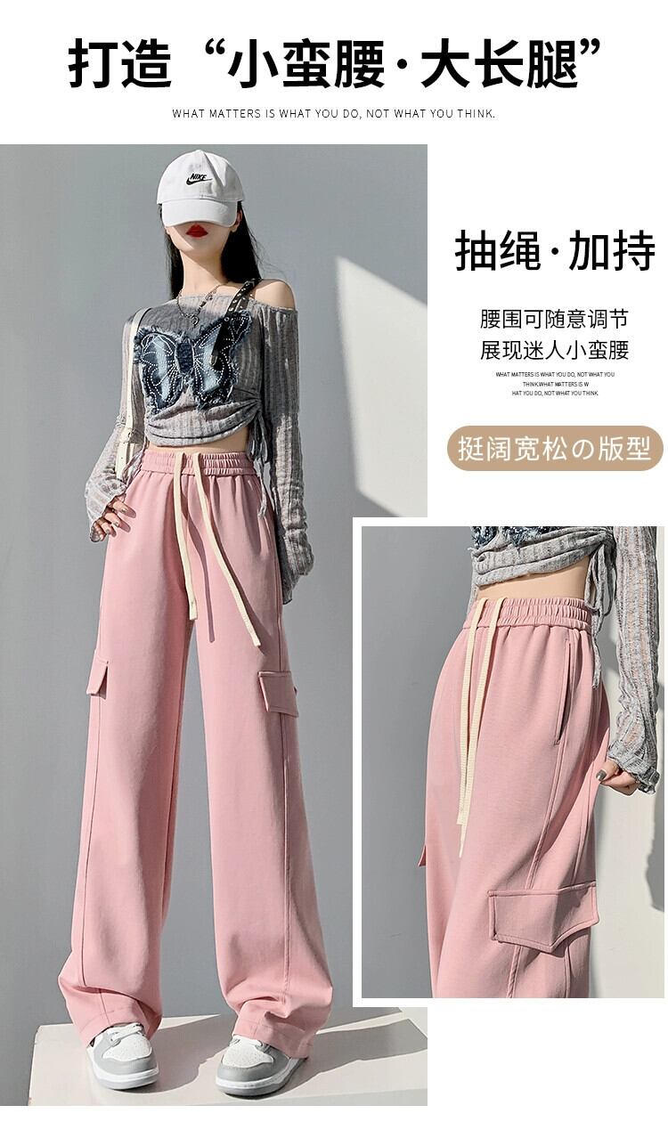 小さなナローバージョンワイドレッグパンツの女性 2024 春と秋の新作ハイウエストドレープストレートレッグフロアレングスカジュアルスポーツオーバーオール スプリング 春物 オータム 秋物 7460070685484178 | framboise21