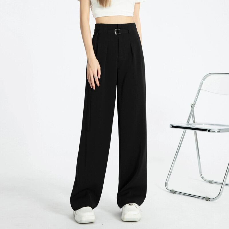 夏の黒のビジネススーツワイドレッグパンツレディース、ハイエンド、ルーズ、スリム、フロアレングス、ハイウエスト、ストレートカジュアルパンツ ブラック サマー 夏物 7460097796535142 | framboise21