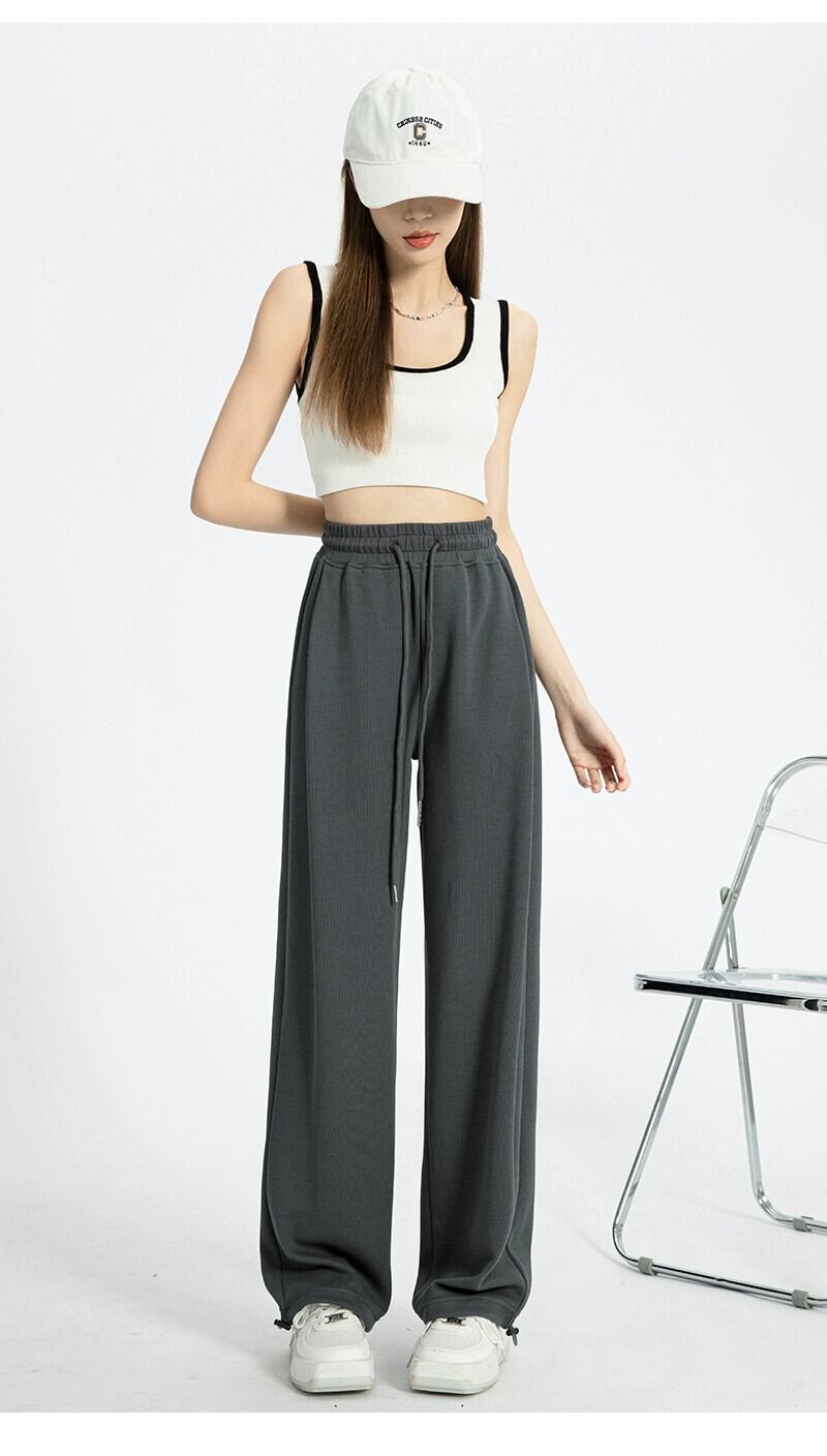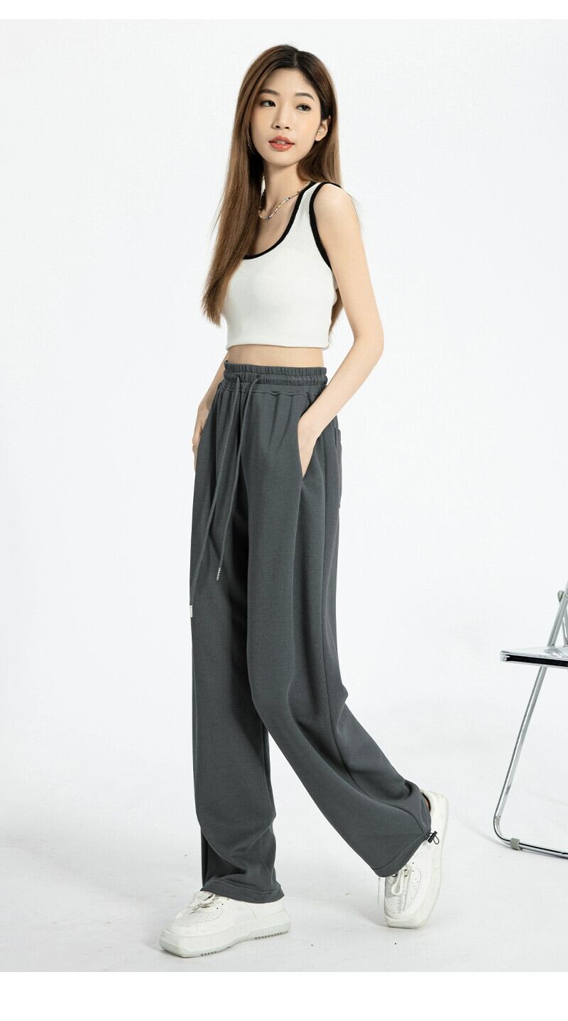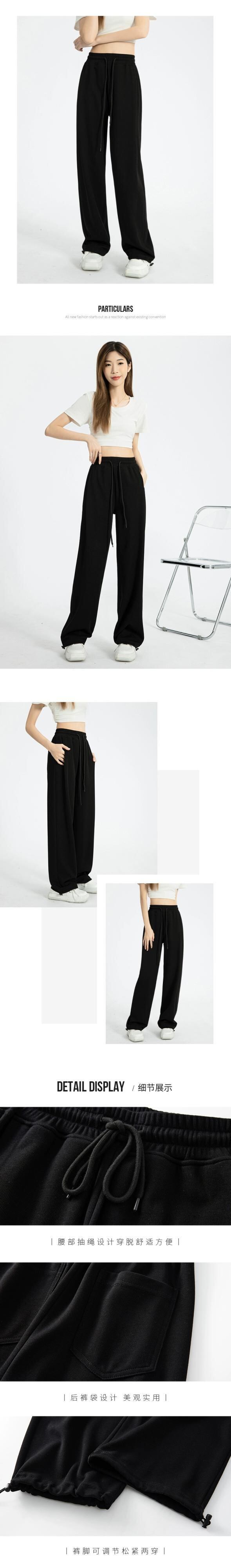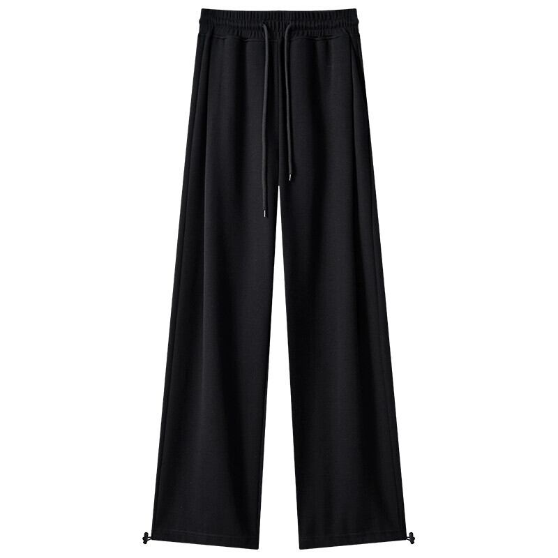 黒のストレートレッグスウェットパンツの女性 2024 新しい夏のハイウエスト、スリムでドレープのあるカジュアルナローバージョンワイドレッグパンツ ブラック サマー 夏物 7460045666437178 | framboise21