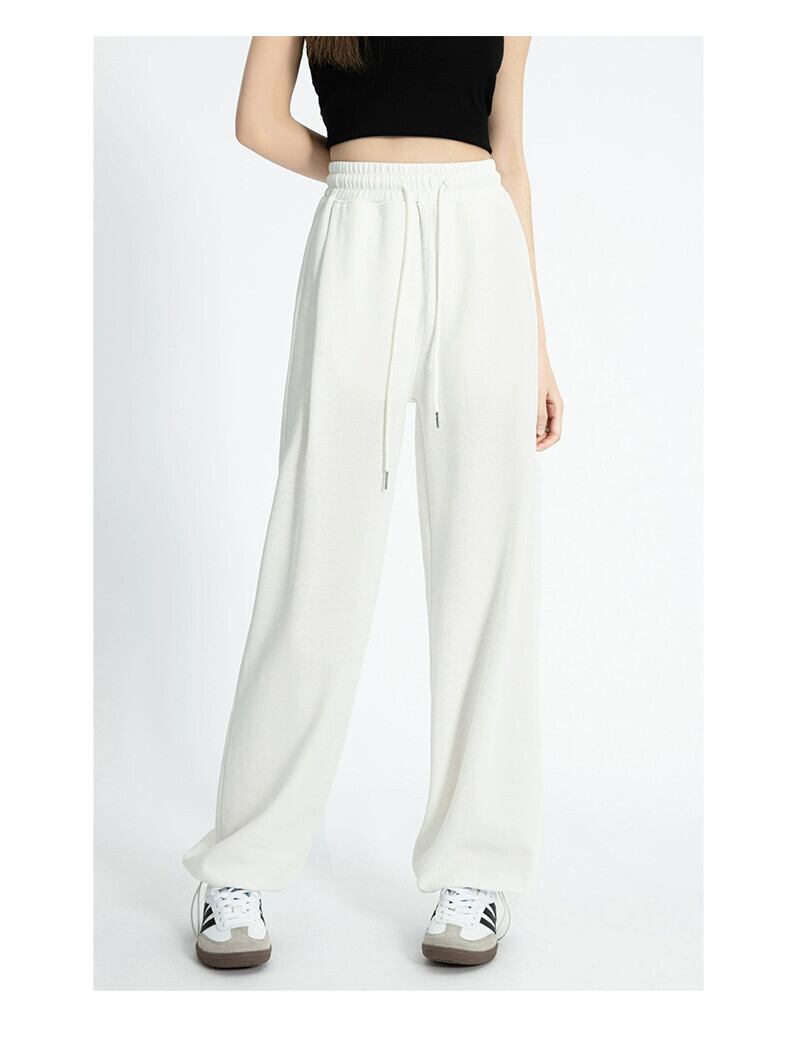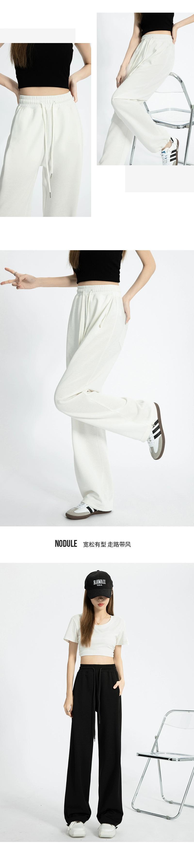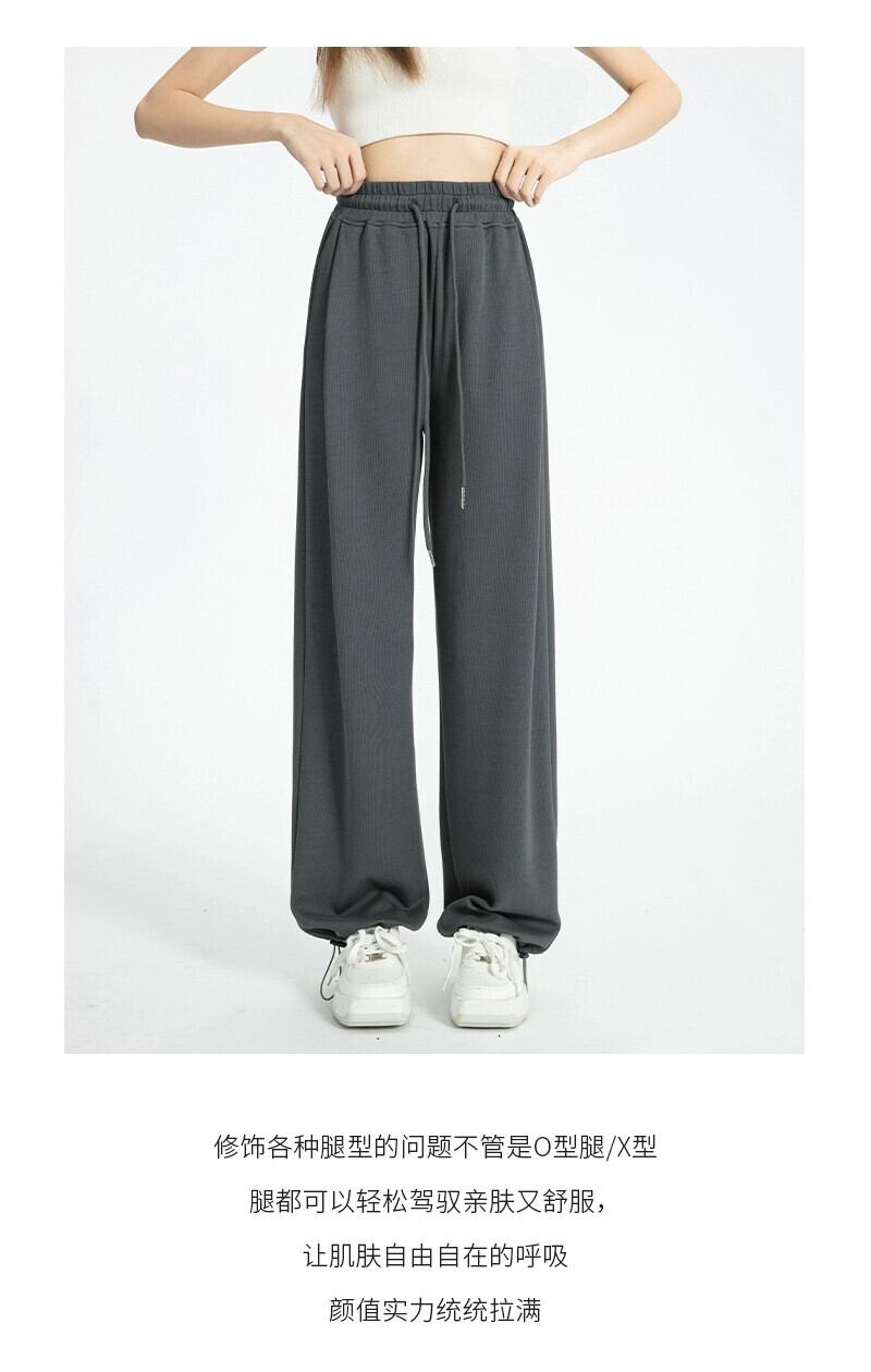 黒のストレートレッグスウェットパンツの女性 2024 新しい夏のハイウエスト、スリムでドレープのあるカジュアルナローバージョンワイドレッグパンツ ブラック サマー 夏物 7460045666437178 | framboise21