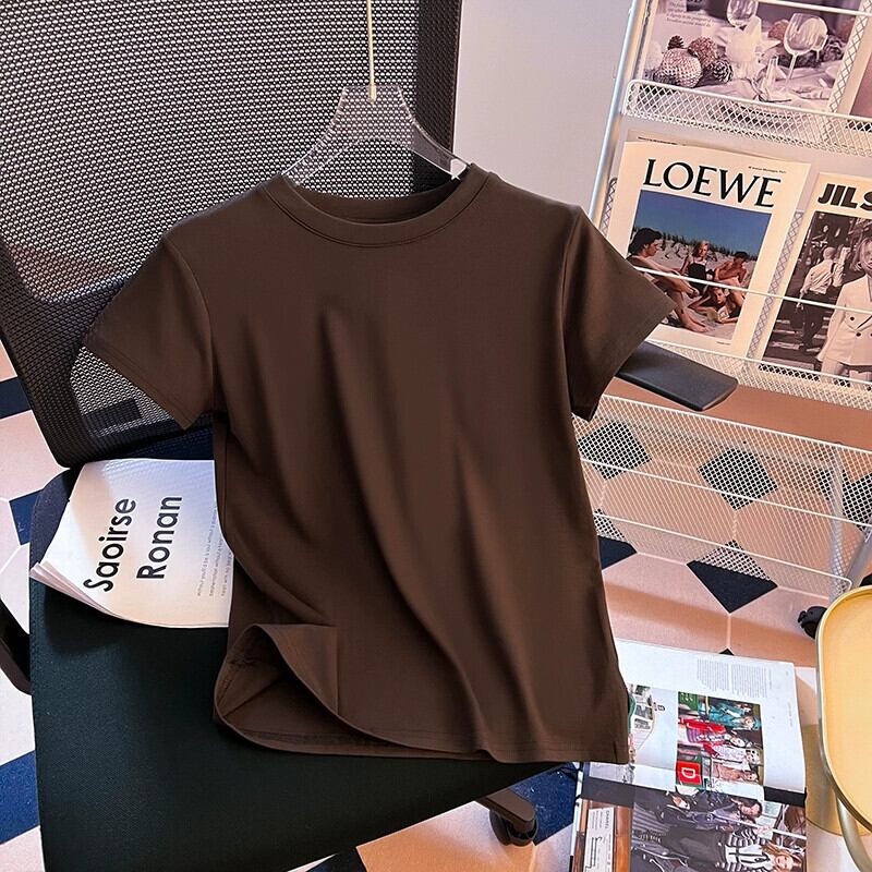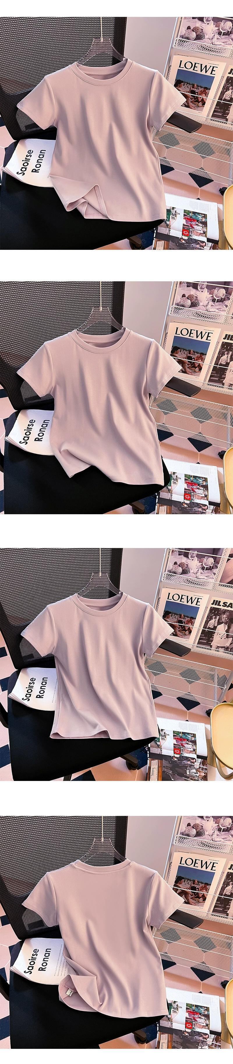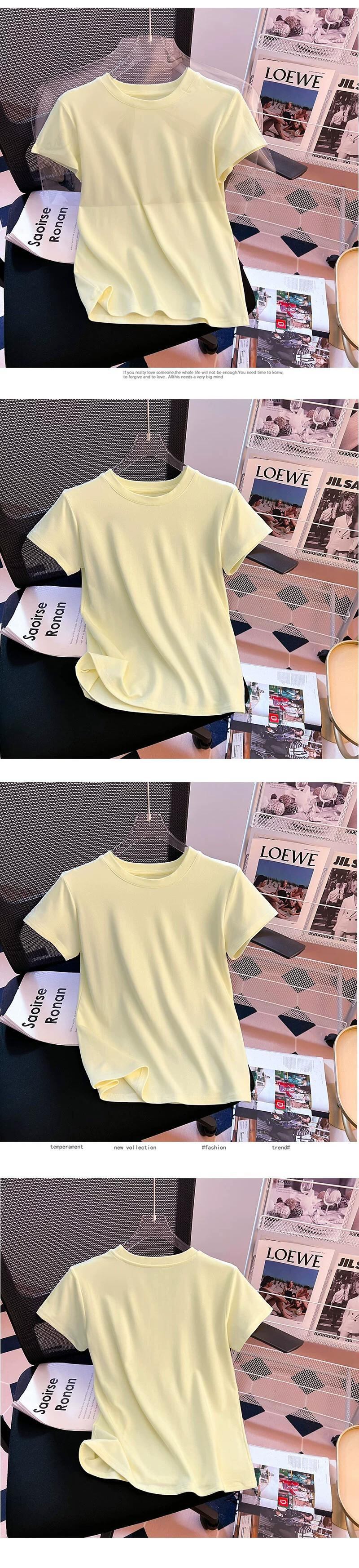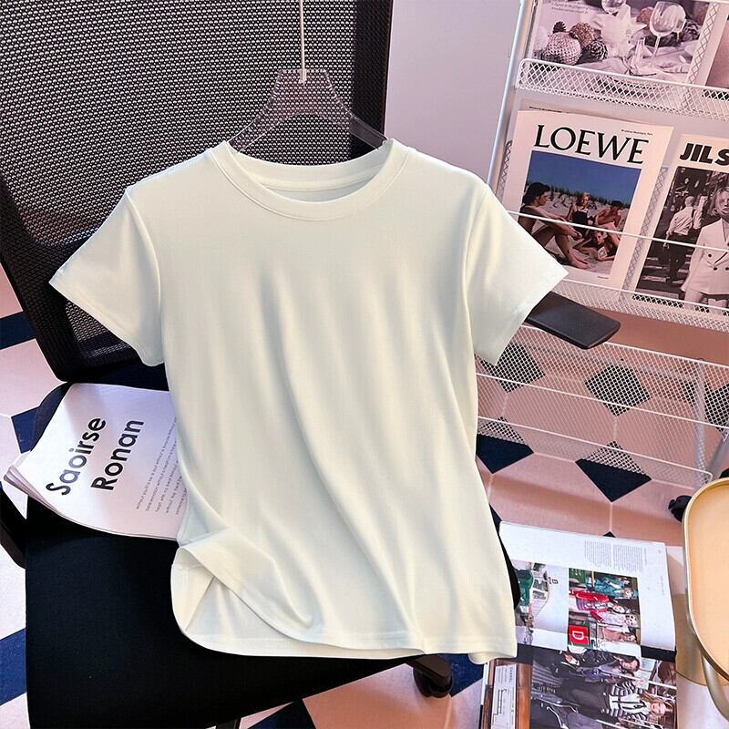 ホワイトコットン右肩半袖 tシャツ女性 2024 新しい夏スリムフィットファッショナブルなラウンドネックトップトレンディ サマー 夏物 Oネック 7460039809888190 | framboise21