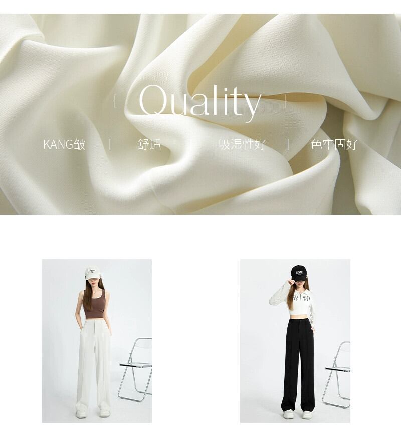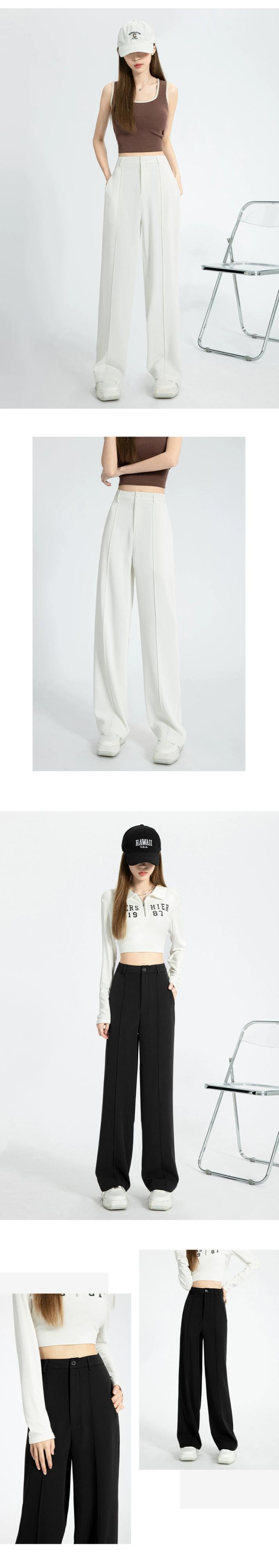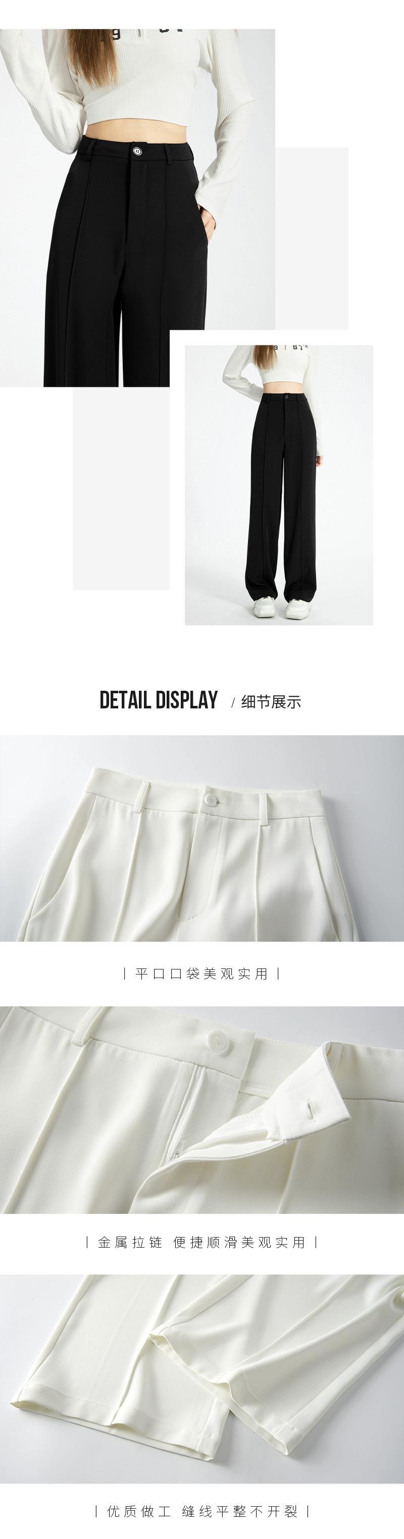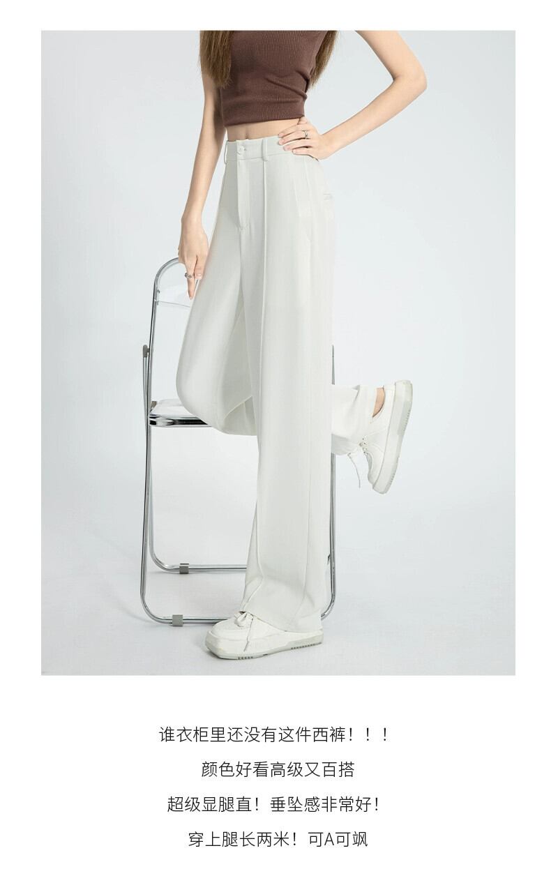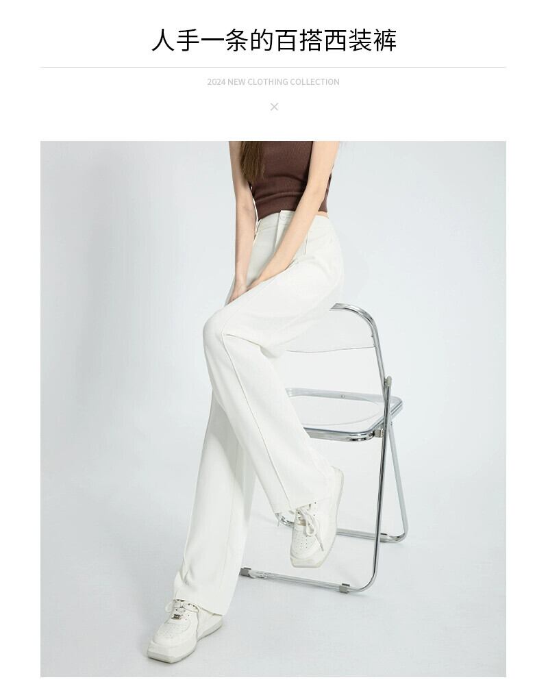 夏用の白いストレートレッグスーツパンツ、ハイエンドのドレープワイドレッグパンツ、ハイウエスト、スリム、汎用性の高いフロアレングスのカジュアルパンツ ホワイト サマー 夏物 7460075412052026 | framboise21