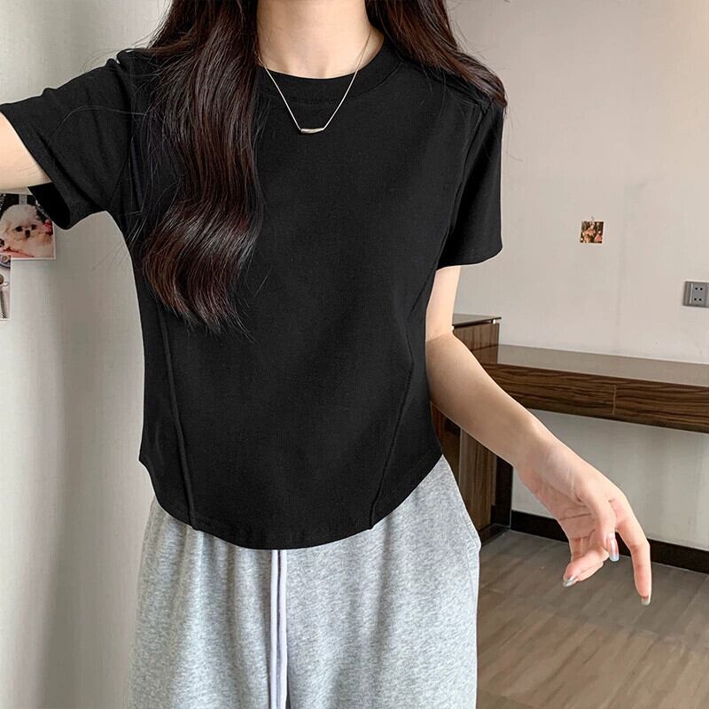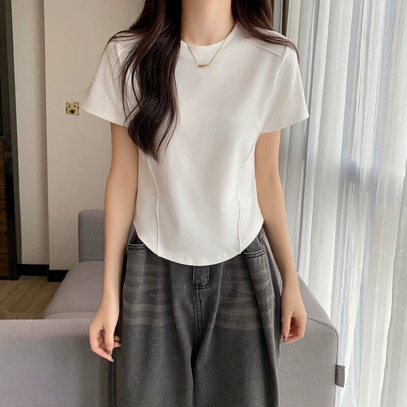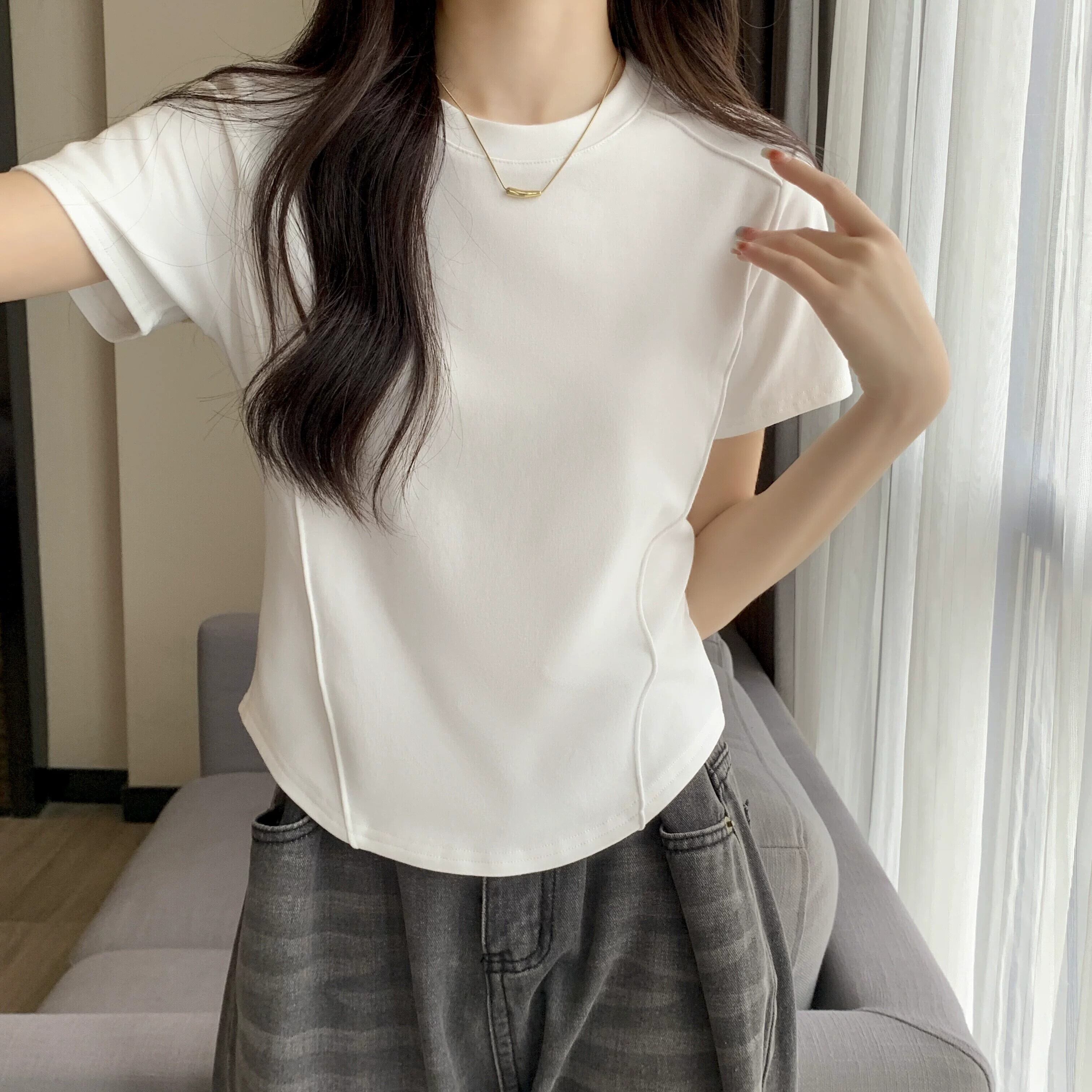 夏の不規則な綿半袖 t シャツの女性、ファッショナブルでスリム、右肩ショート フィッシュボーン トップ白 ホワイト コットン サマー 夏物 Tシャツ 7460073936509788 | framboise21