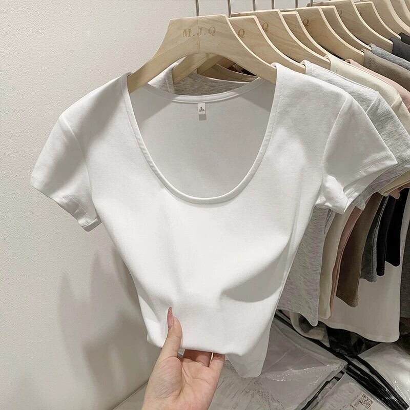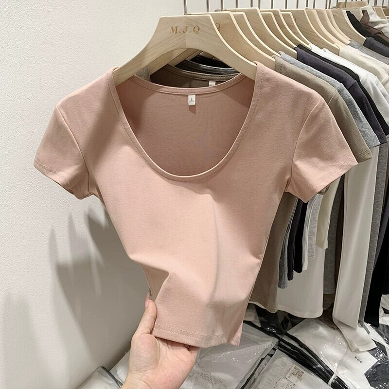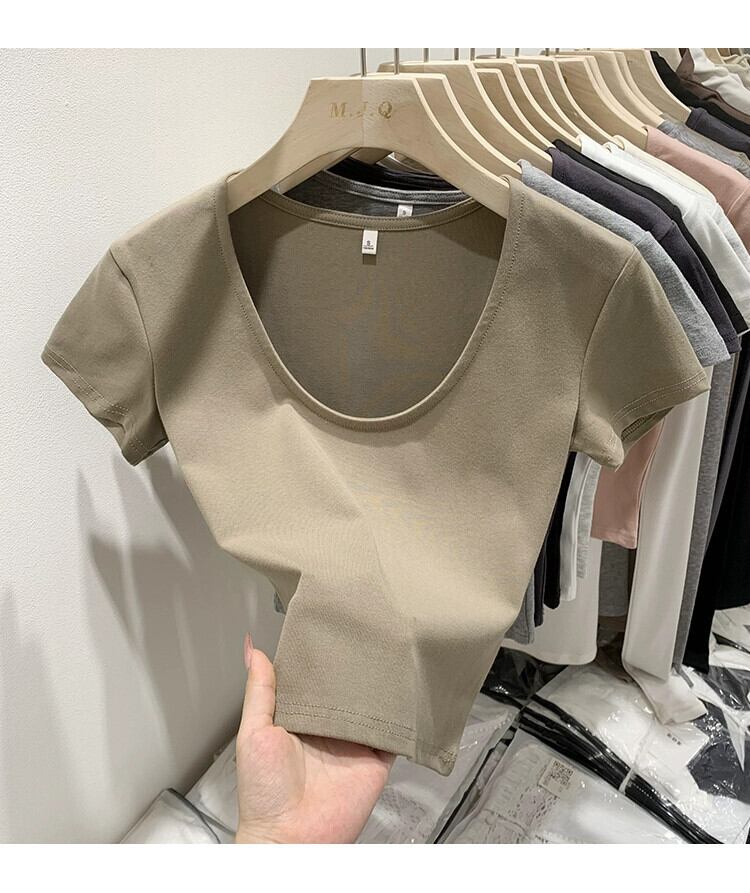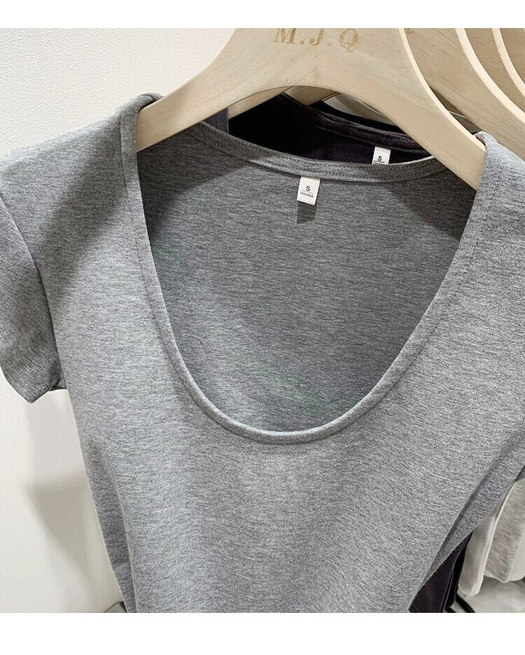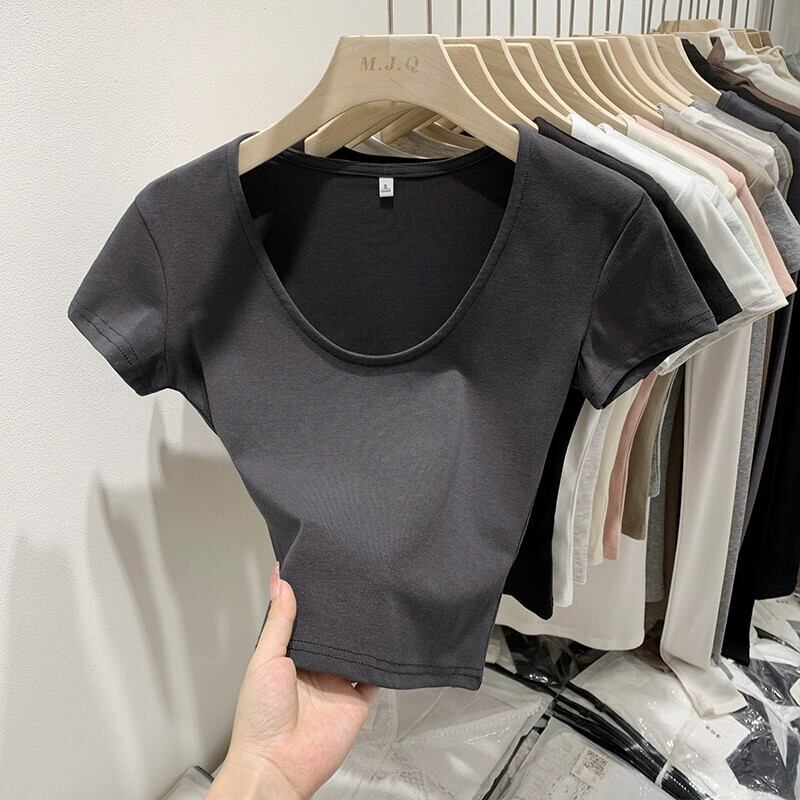グレーの右肩半袖 T シャツの女性の夏、ハイエンド、スリム、ファッショナブルでセクシーなネクタイへそ出しショート トップ サマー 夏物 Tシャツ 7460077579151740 | framboise21