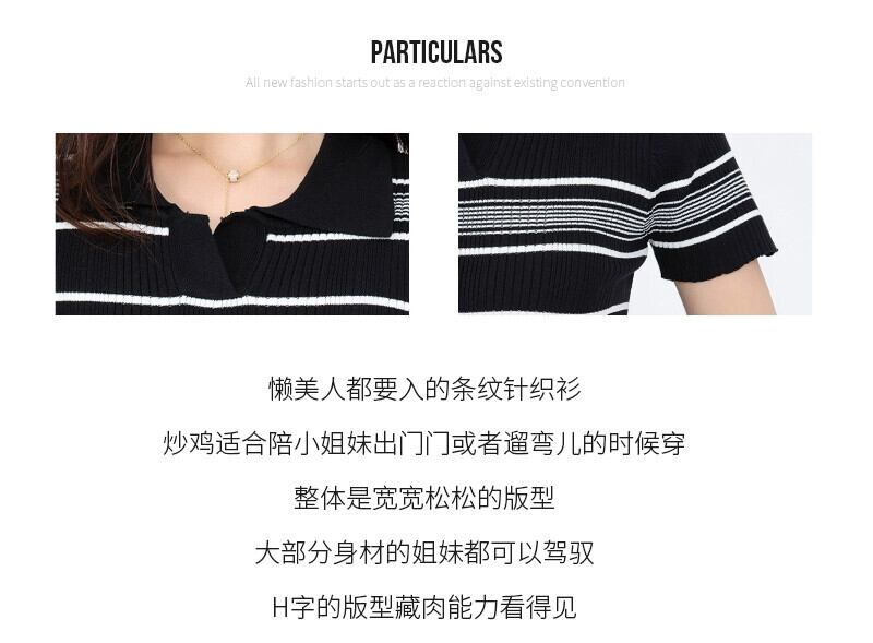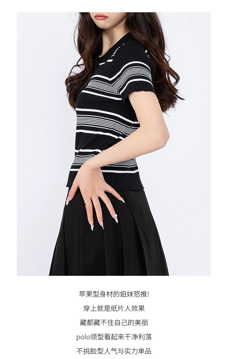 アイスシルクニット半袖Tシャツレディース、夏、高級、ファッショナブル、スリムフィット、ショート、右肩ストライプポロカラートップ サマー 夏物 7460099741720204 | framboise21