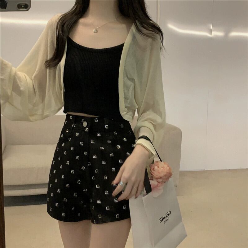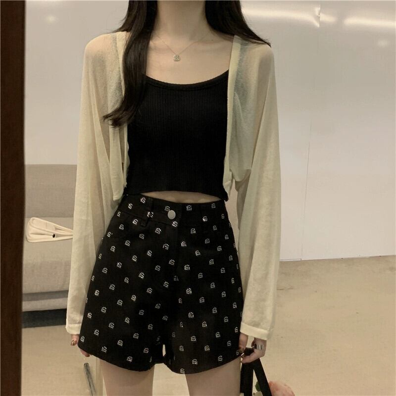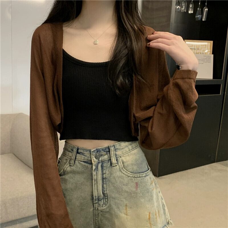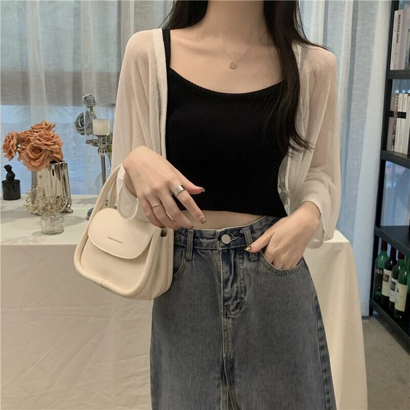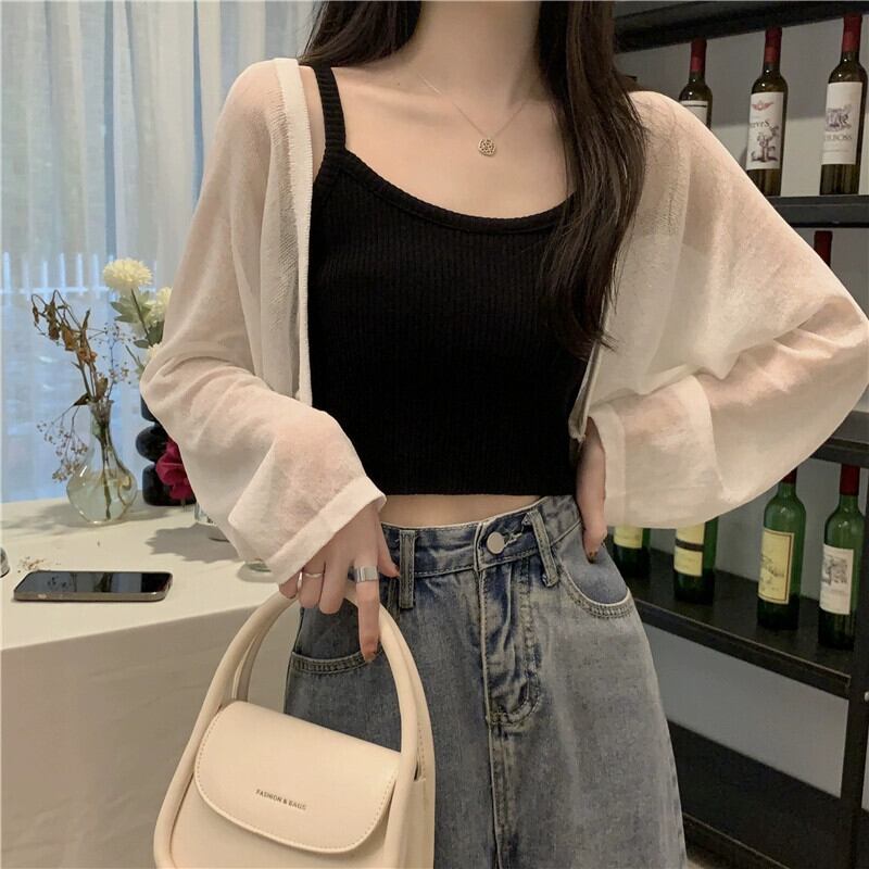 ホワイトアイスシルクニット日焼け止めカーディガン女性の夏薄い緩いファッションわずかにシースルーハーフショールブラウス小さなコート サマー 夏物 7460023118944007 | framboise21