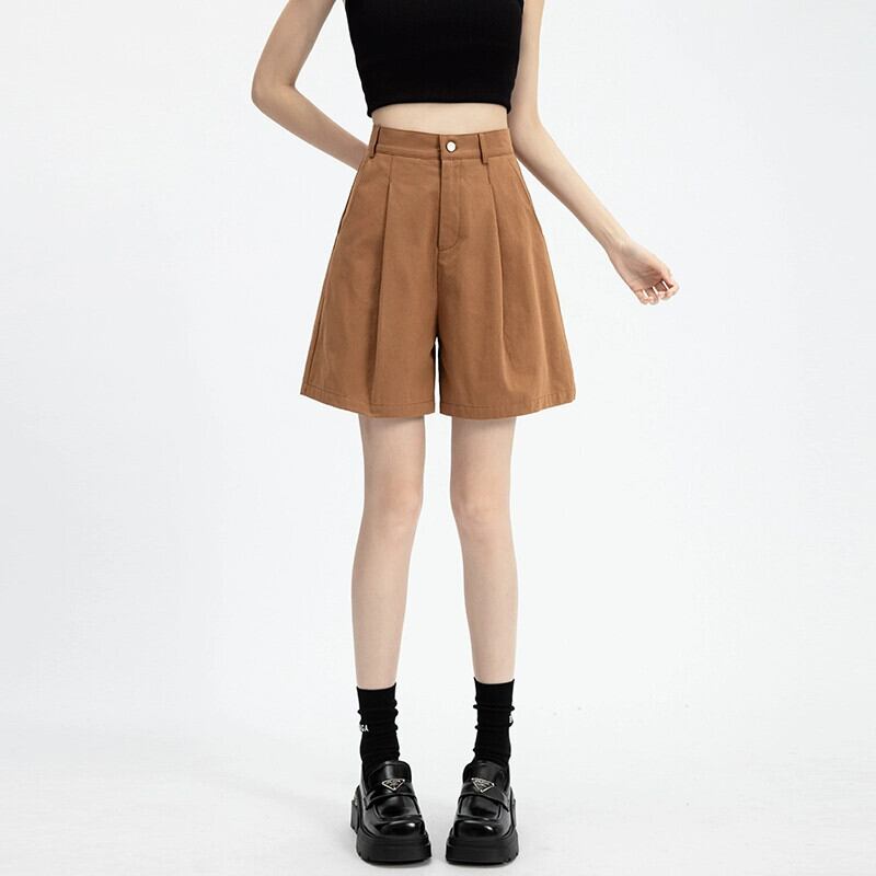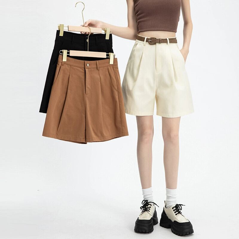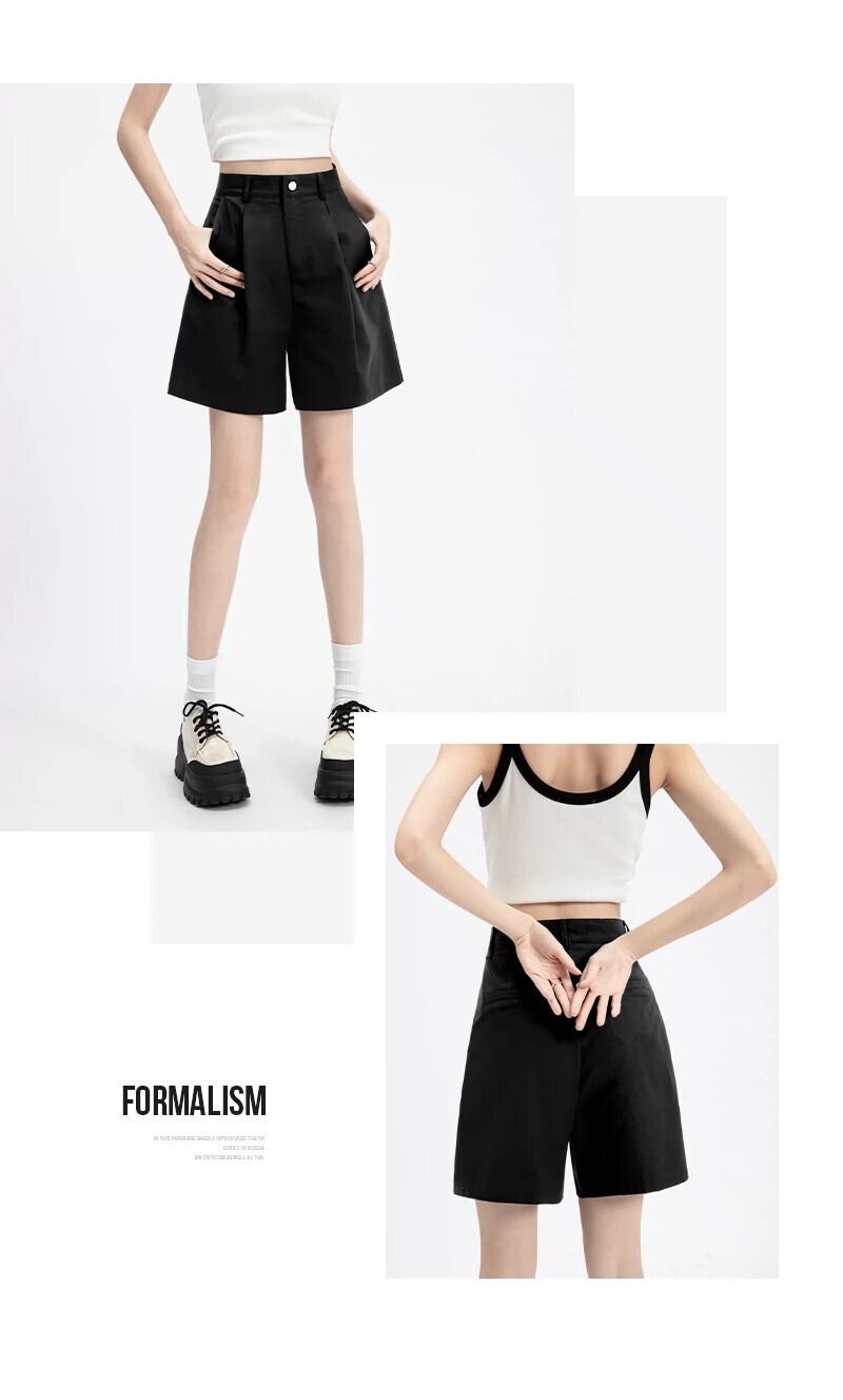 黒ハイウエストショートパンツ女性の夏の 2024 新しいスタイルミディアムパンツ小人ルーズカジュアルアウターウェアストレートレッグ 5 点パンツ ブラック サマー 夏物 ショーツ ブルマー 746005648207718 | framboise21
