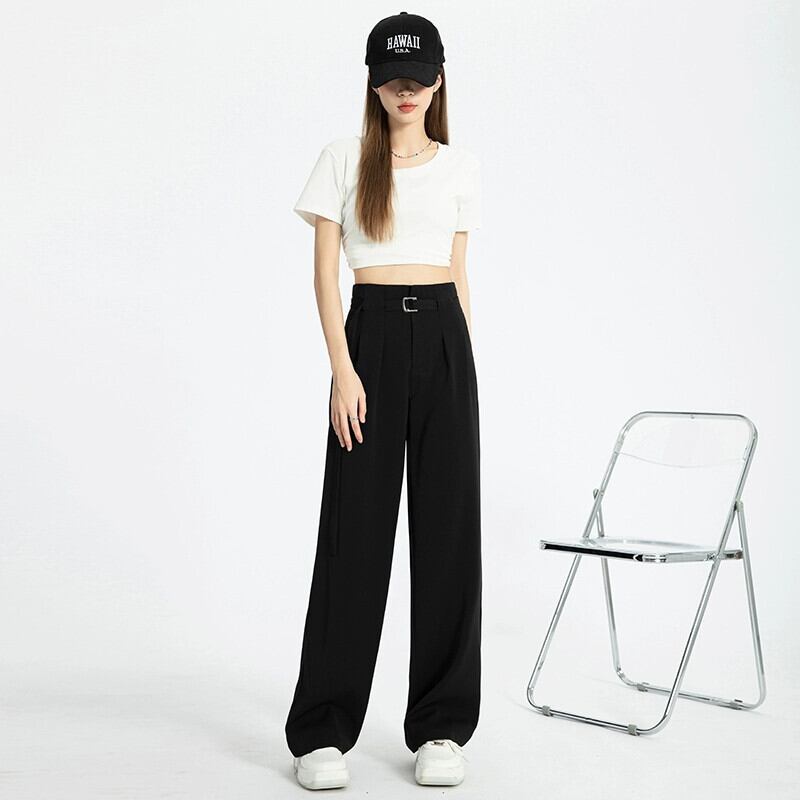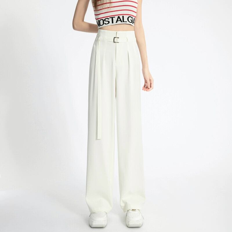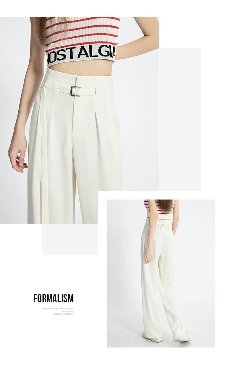 -ウエストストレートスーツパンツレディース2024年夏新作ホワイトパンツ、ドレープ感のあるハイエンドカジュアルナローバージョンワイドレッグパンツ サマー 夏物 7460017111577812 | framboise21
