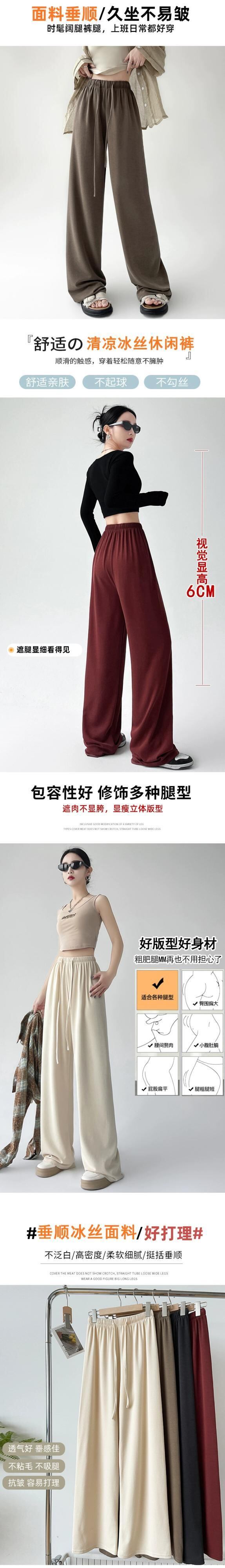 薄氷シルク日焼け止めパンツ女性の夏ルーズストレートキュプラアンモニアシルクワイドレッグパンツウエストスリムドレープパンツ サマー 夏物 ワイドパンツ 746001323215679 | framboise21