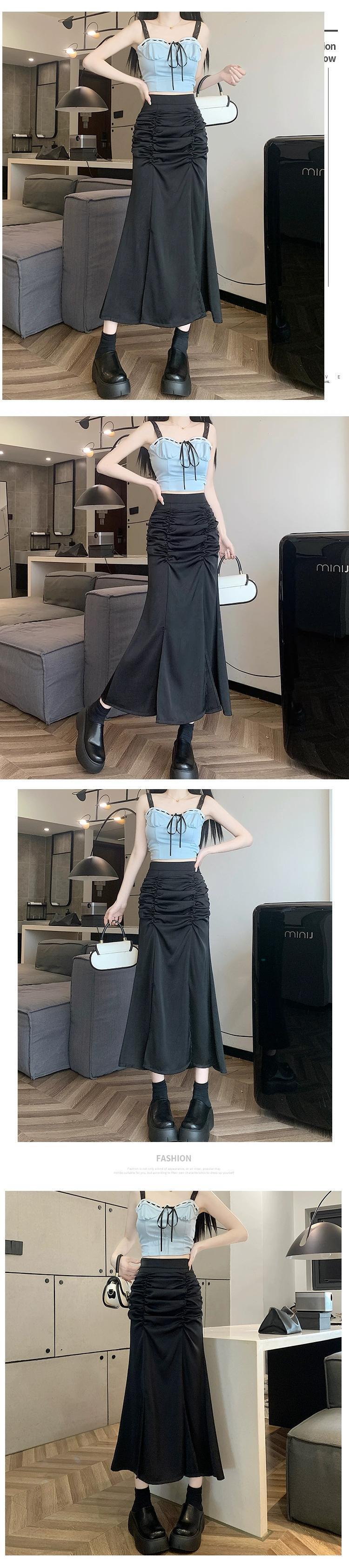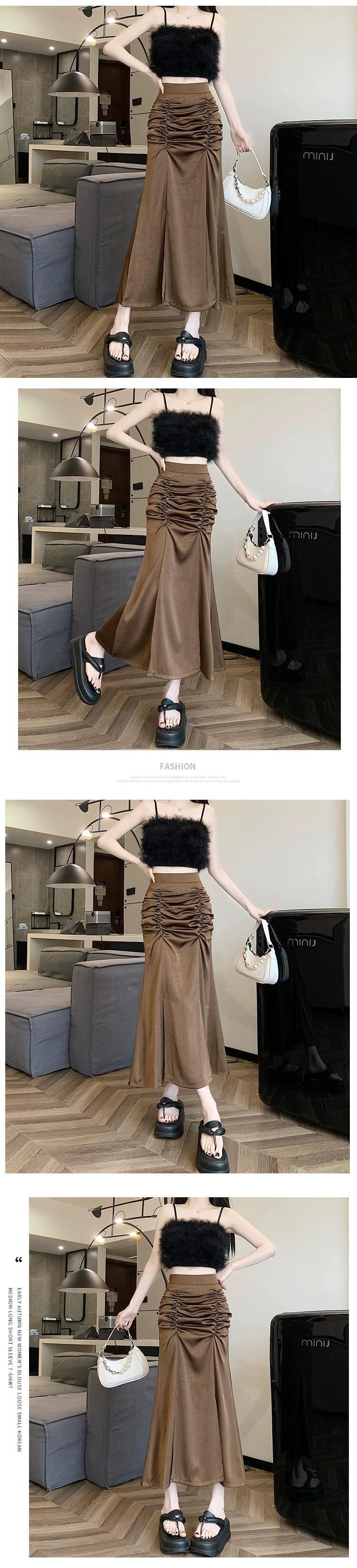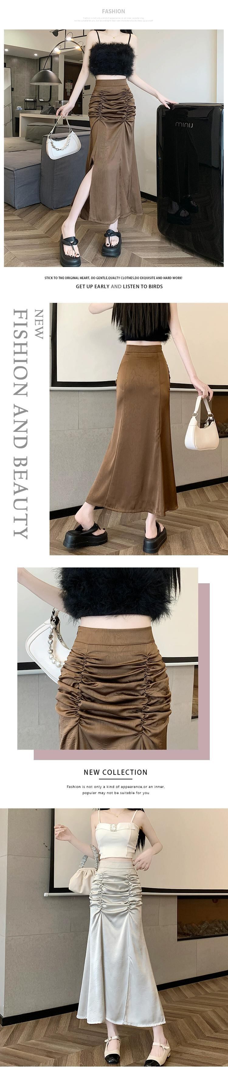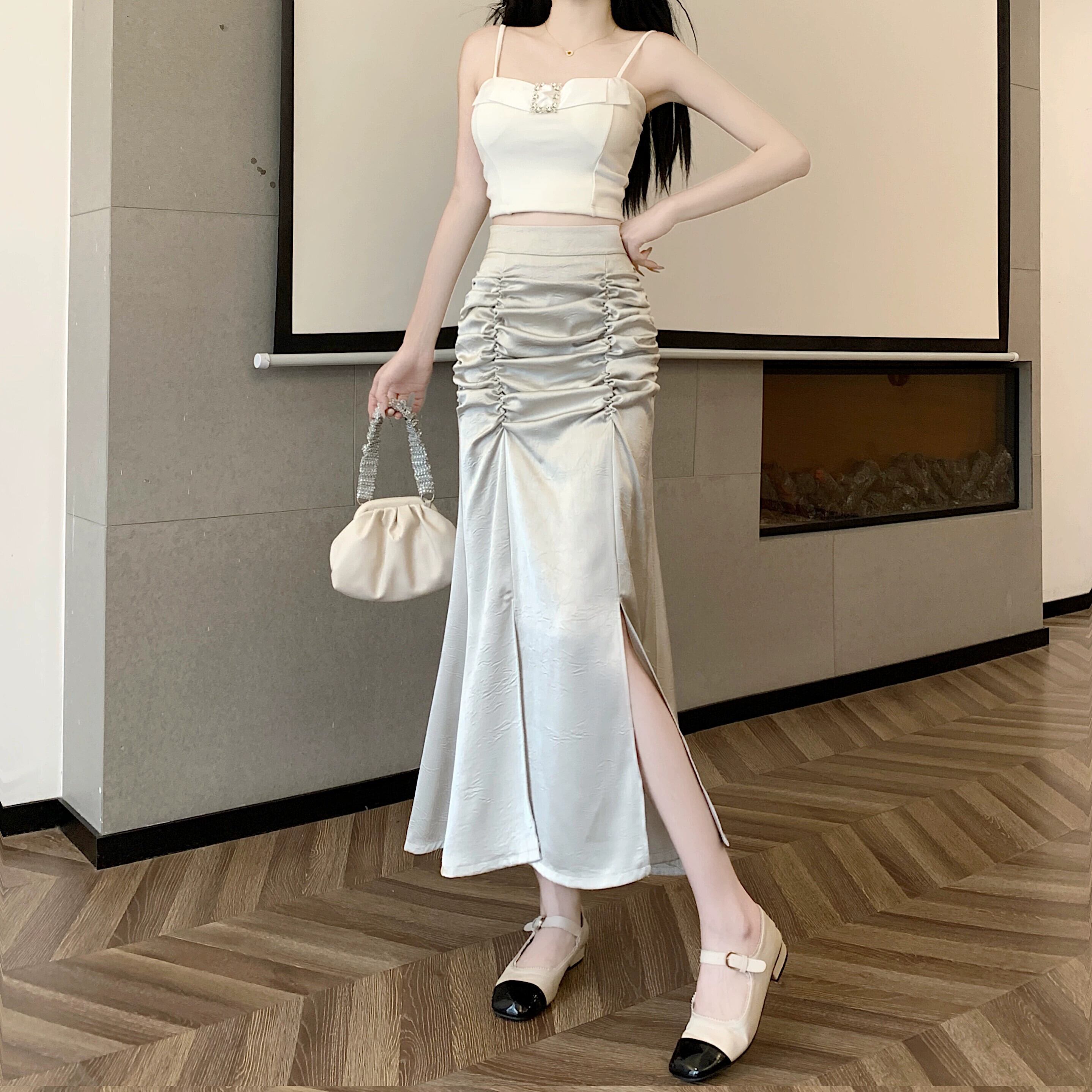 中国風のシルクフィッシュテールスカート女性の夏のハイウエスト痩身デザイン A ラインプリーツスリットヒップカバーロングスカート ハイウェスト サマー 夏物 Aライン 7460087872885917 | framboise21