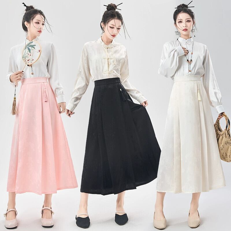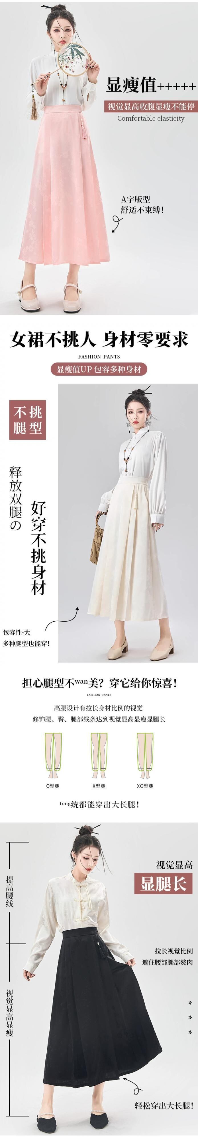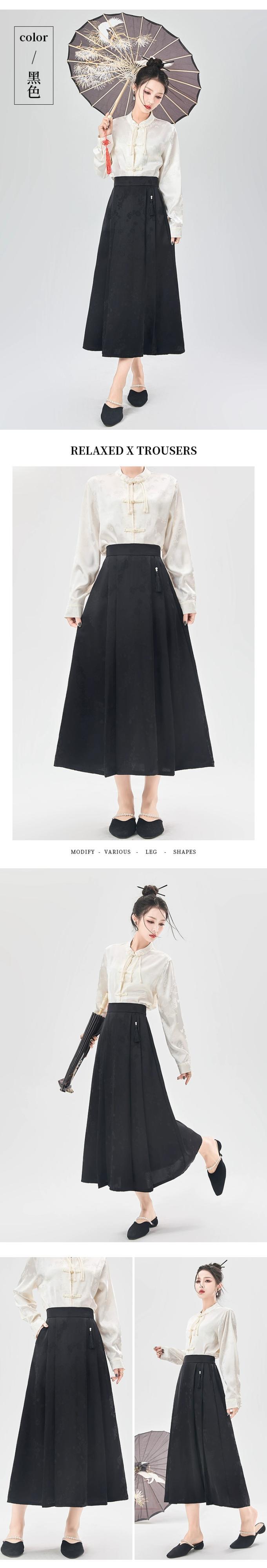 - ウエスト A ライン プリーツ スカート レディース、春と秋のスタイル、新しい中国スタイル、ミッドレングスの黒のジャカード馬面スカート ブラック スプリング 春物 オータム 秋物 Aライン 7460087020515108 | framboise21