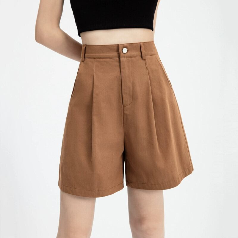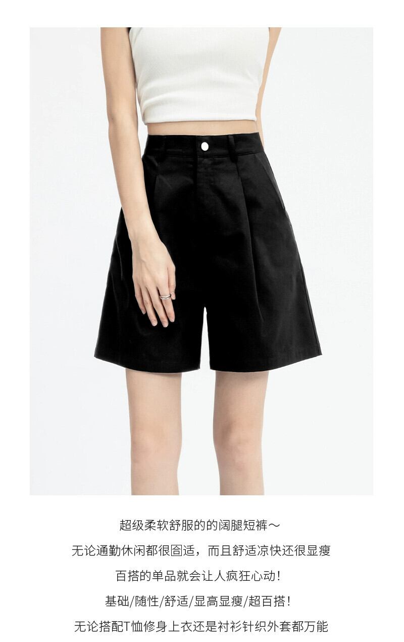 2024年夏のアメカジショートパンツレディース新作アウター、ゆったり万能ハイウエストストレートワイドレッグミドルパンツ カジュアル サマー 夏物 ショーツ ブルマー 746005489957294 | framboise21