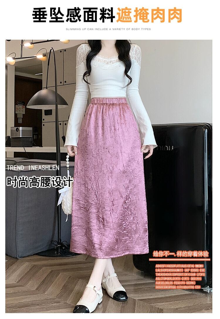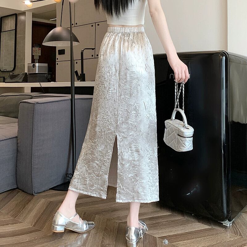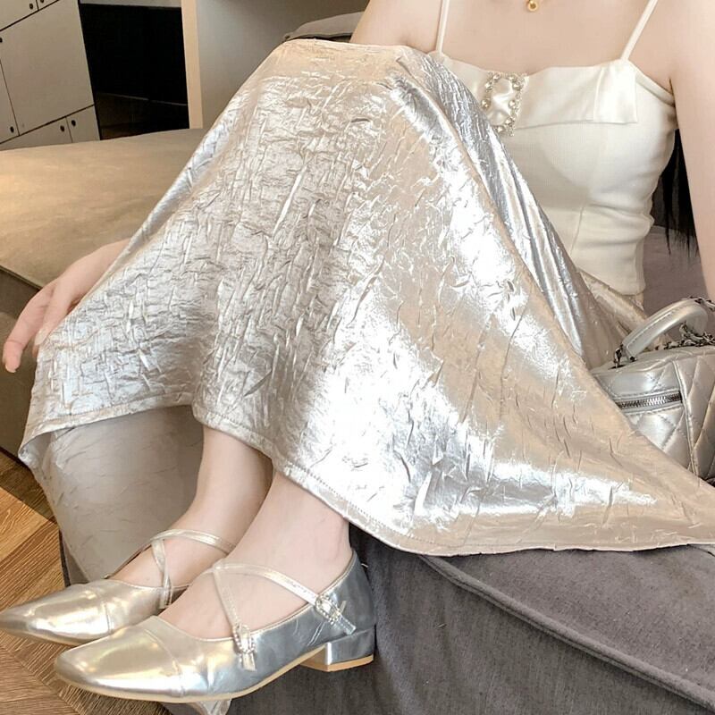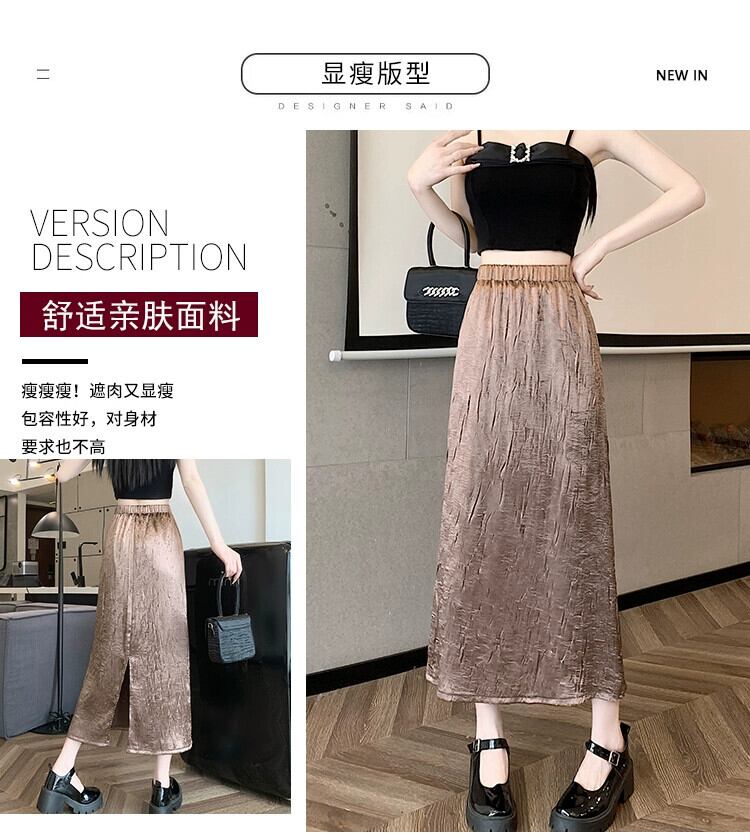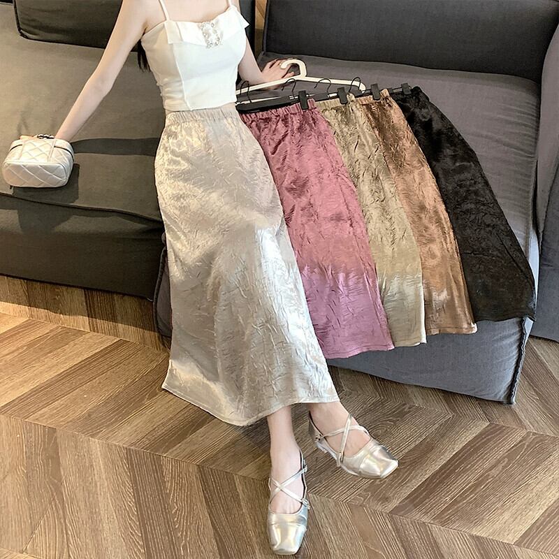アセテートサテンプリーツスカート レディース 夏デザイン ハイウエスト スリム ミドル丈 ストレート バックスリット Aラインスカート サマー 夏物 7460023822393438 | framboise21