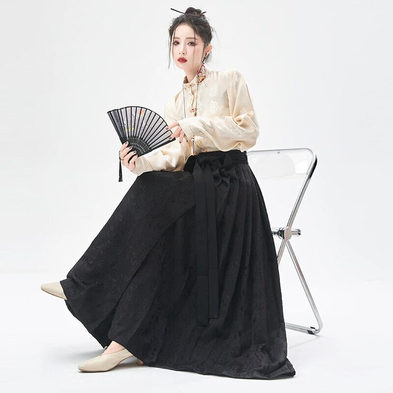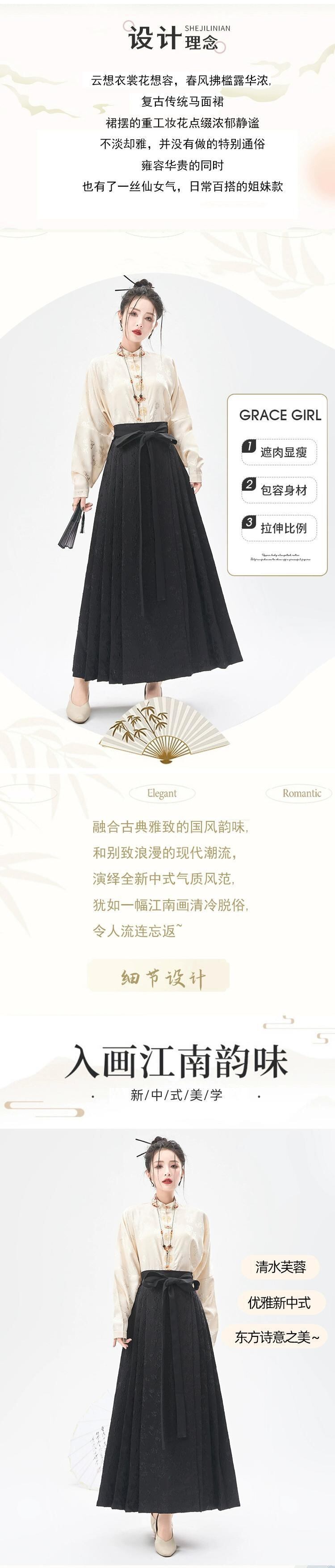 中国風の馬の顔のスカートの女性の春と秋のハイウエストスリム A ラインロングプリーツスカートの女性 スプリング 春物 オータム 秋物 Aライン 7460046898165619 | framboise21