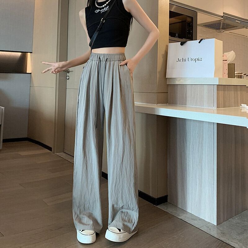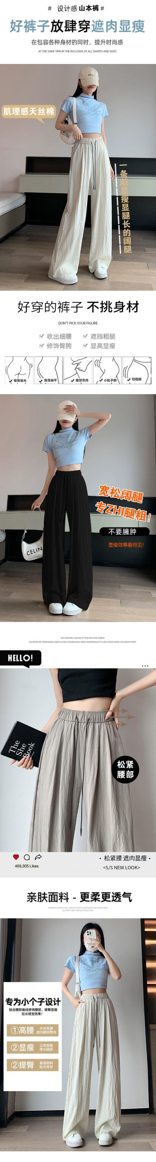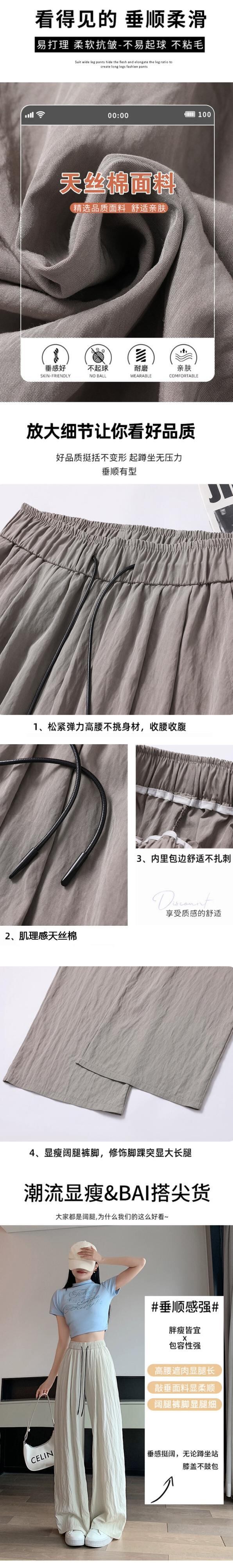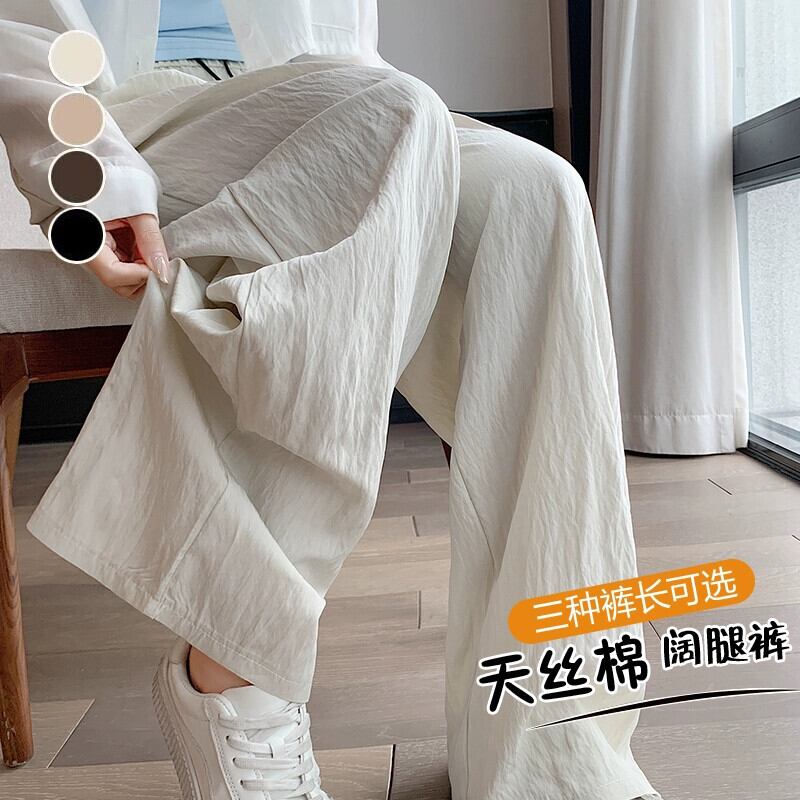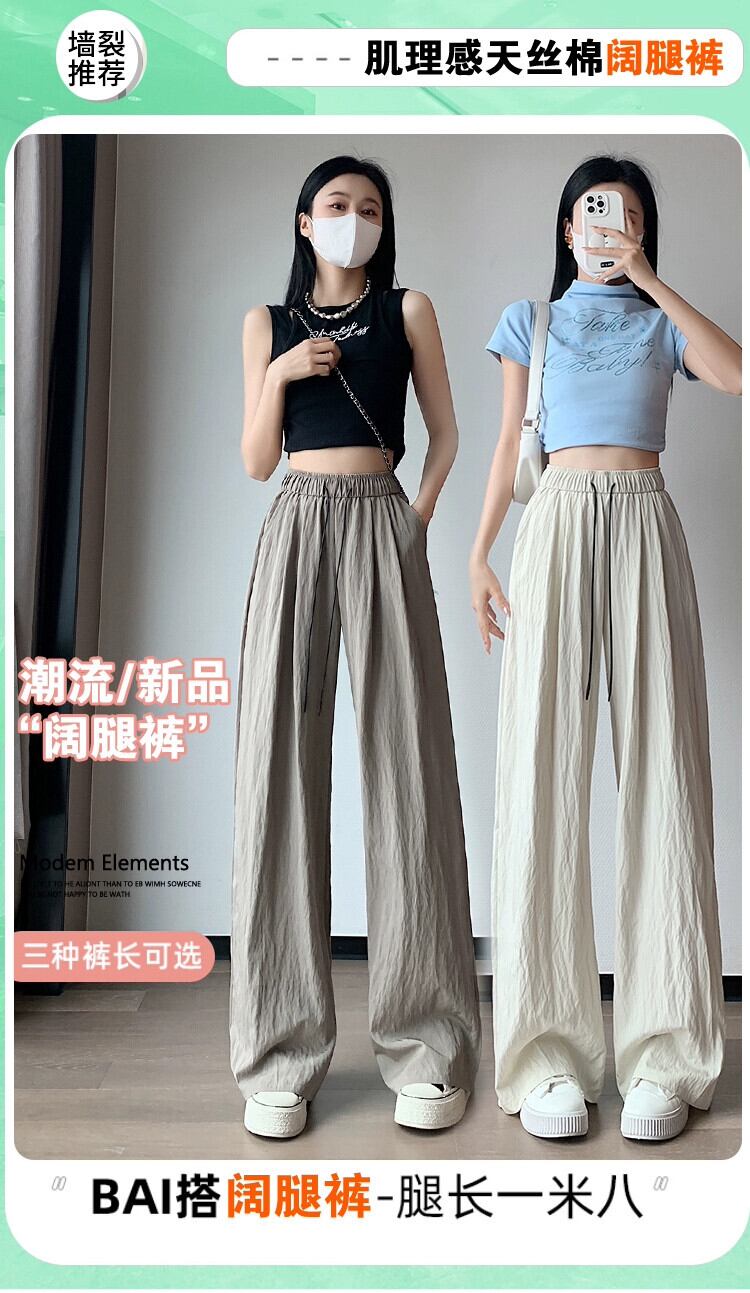 プリーツテンセルワイドレッグパンツレディース、夏用薄手、ゆったり、レイジーヤマモトパンツ、ハイウエスト、ストレートレッグフロアレングスカジュアルパンツ サマー 夏物 7460031116656081 | framboise21