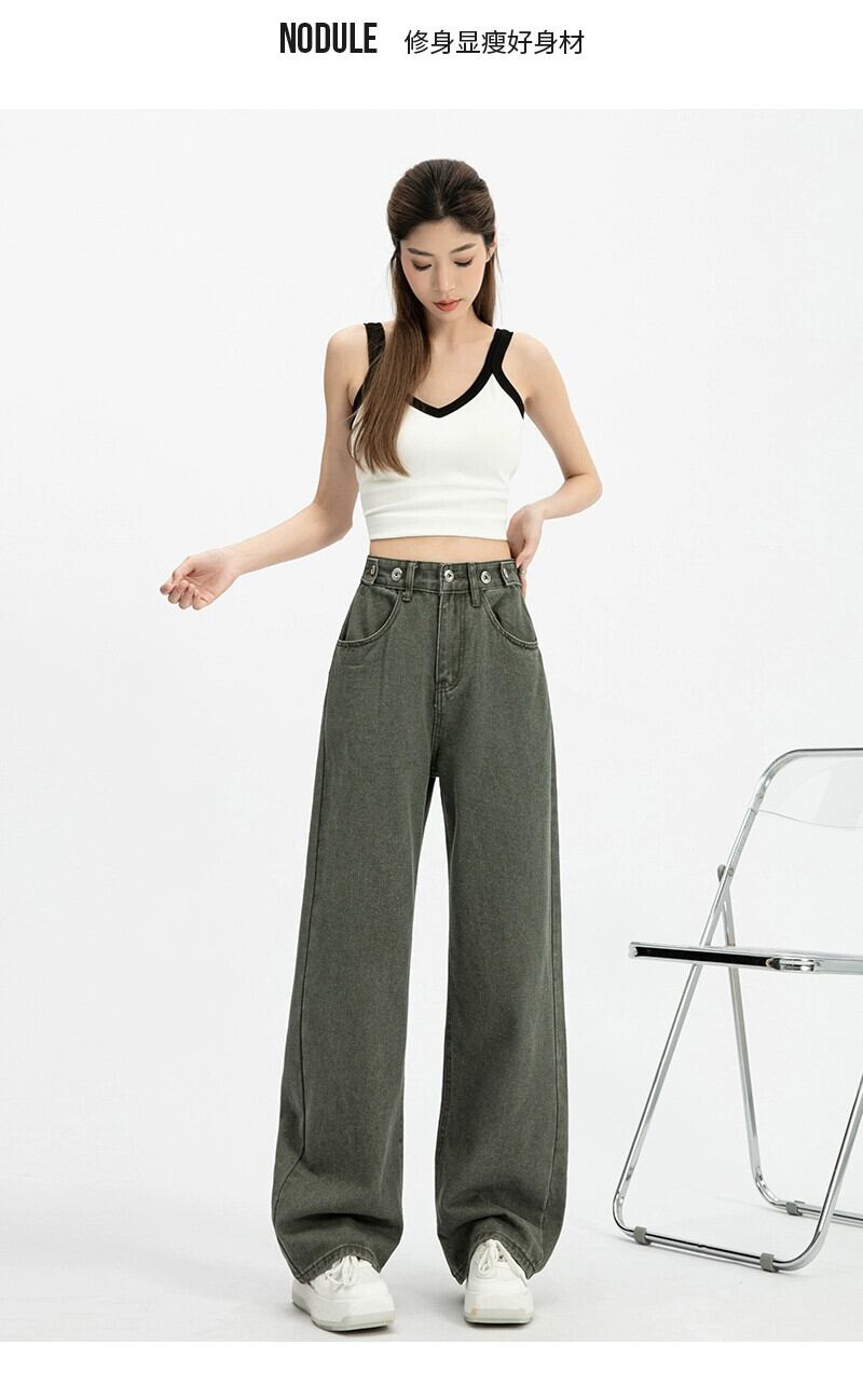 アメリカンレトロウォッシュストレートジーンズ女性春と秋2024新しいルーズスリミングハイウエストドレープワイドレッグパンツ ハイウェスト スプリング 春物 オータム 秋物 ワイドパンツ 7460033132110629 | framboise21