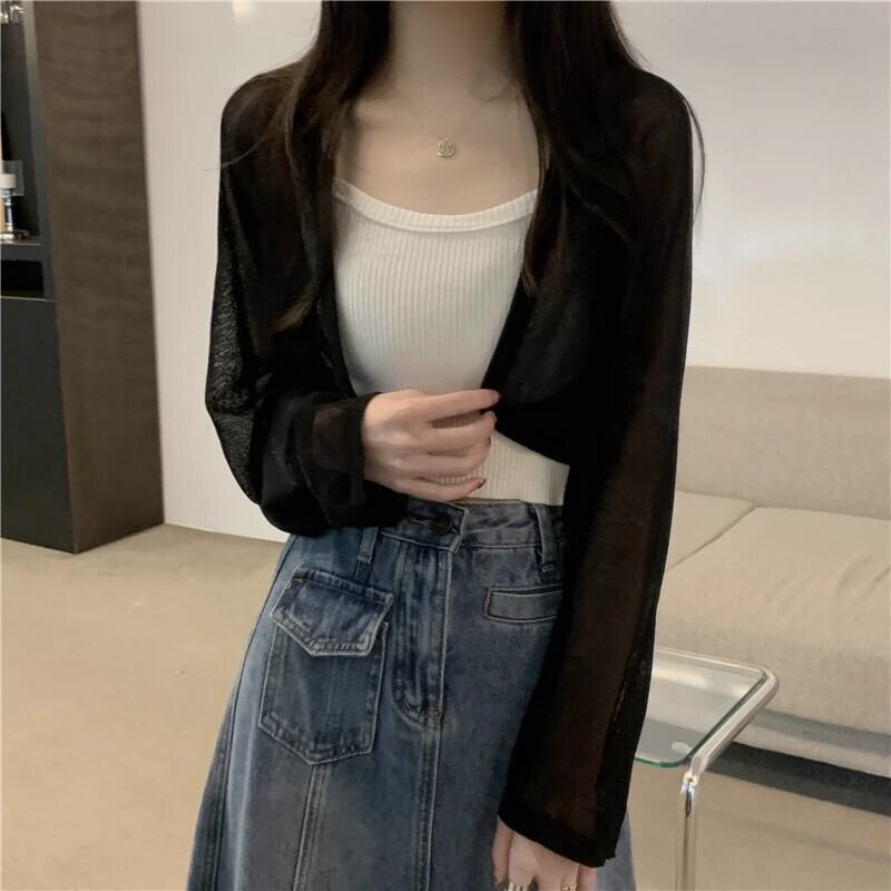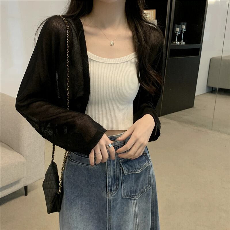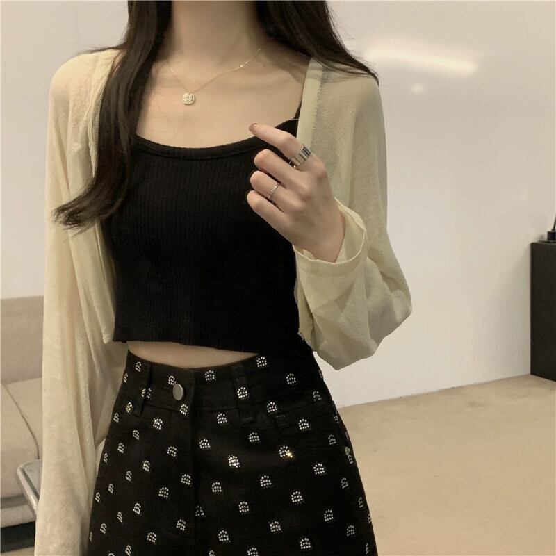 夏ニット日焼け防止カーディガンレディース、薄手、ゆったり、スリム、おしゃれなサスペンダーベルト、ハーフショール、ブラウス、ジャケット、トレンディ サマー 夏物 ハーネス 7460028368414180 | framboise21