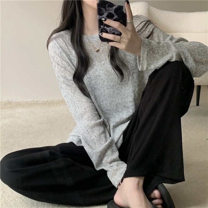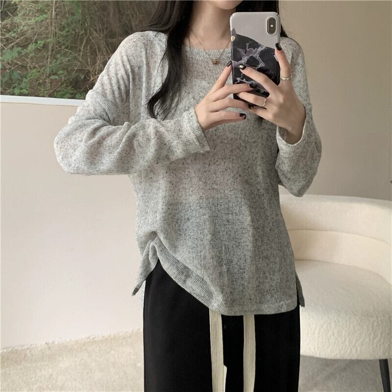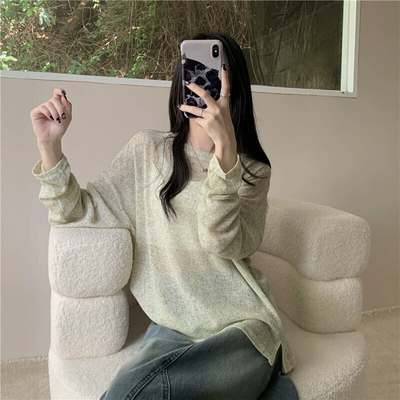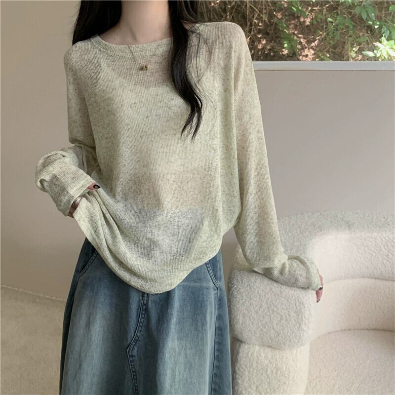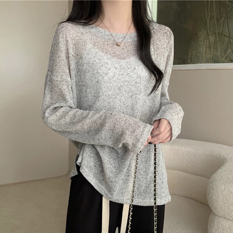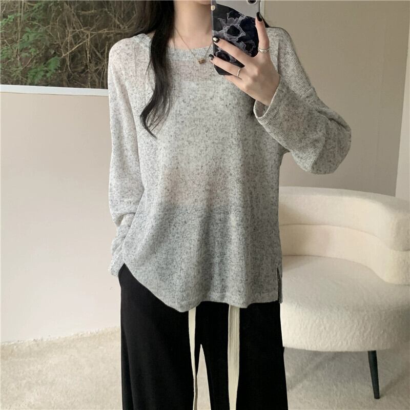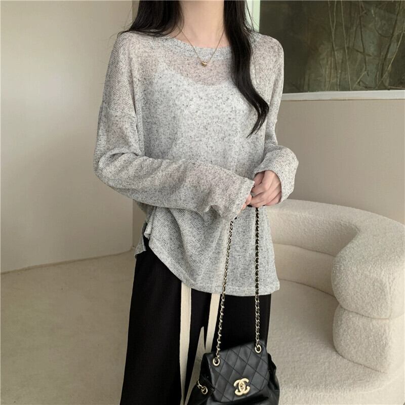 夏 薄手 やや透け感 日焼け止め トップス レディース 高級デザイン ゆったり スリム おしゃれ グレー 長袖Tシャツ ロング サマー 夏物 7460038882135443 | framboise21